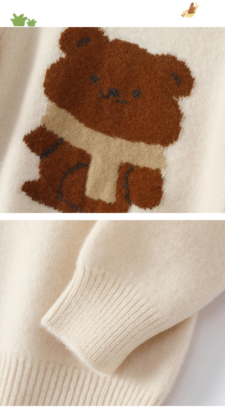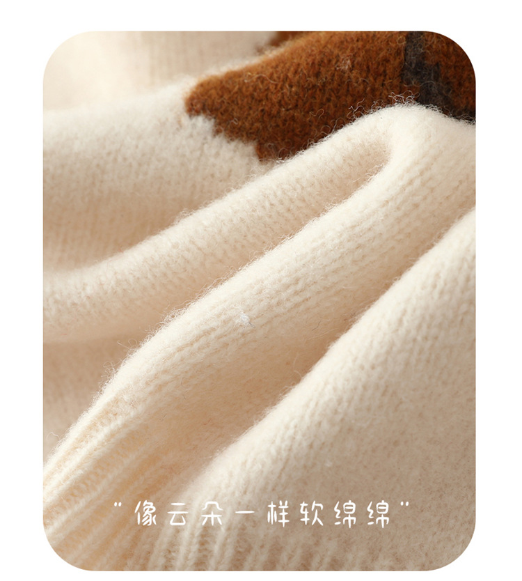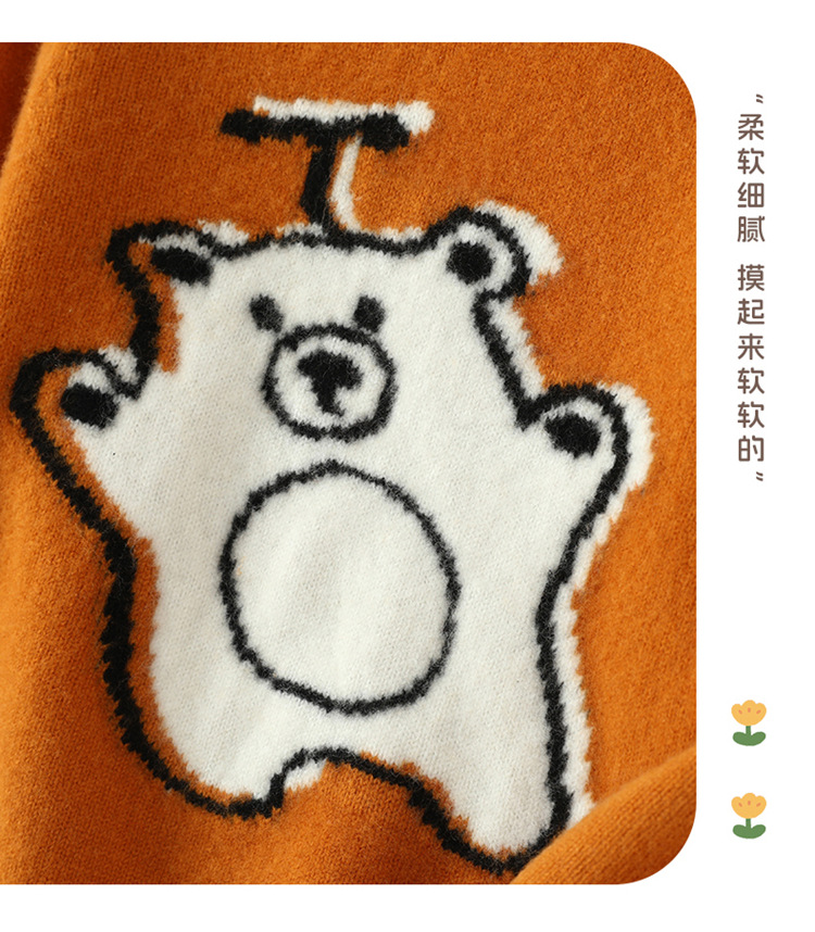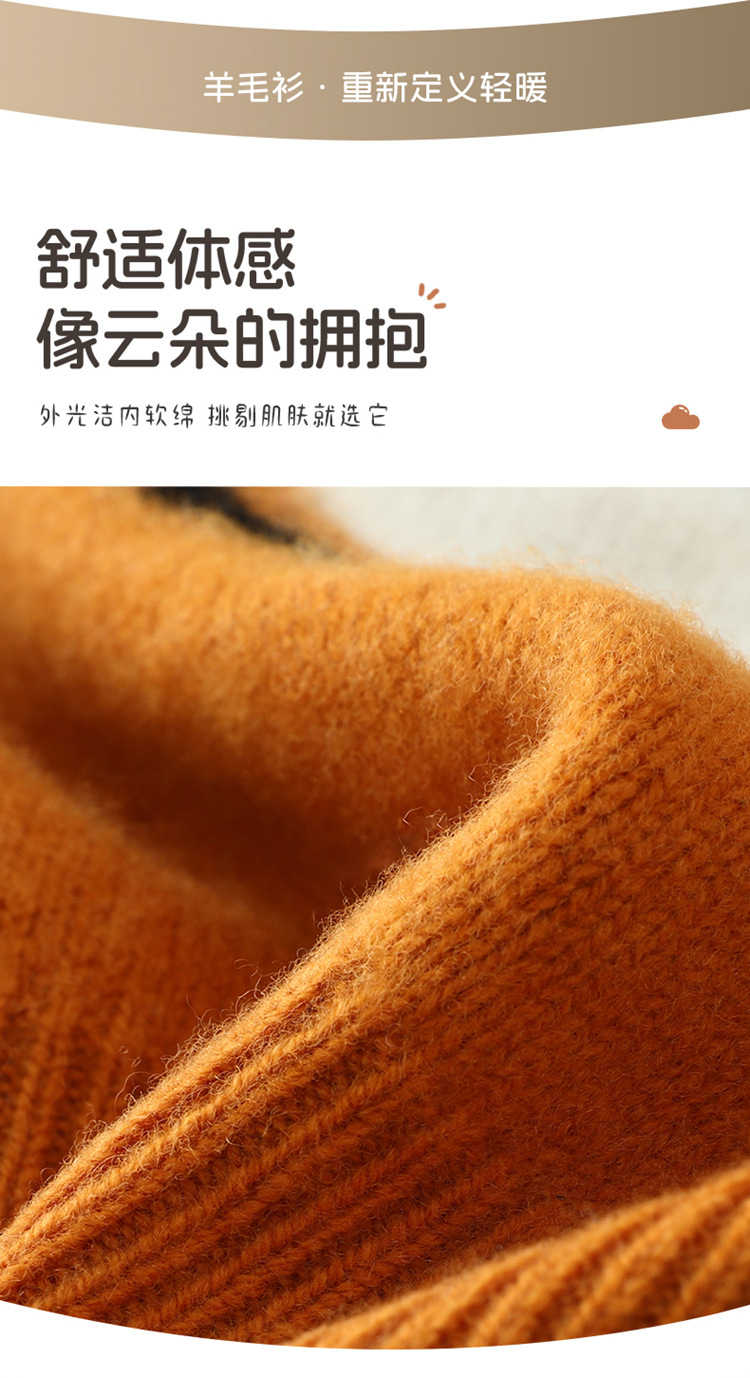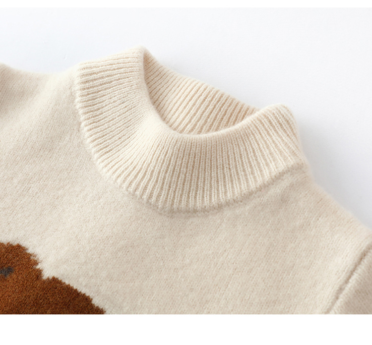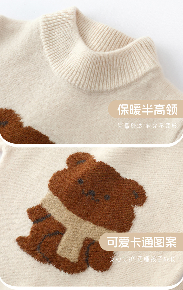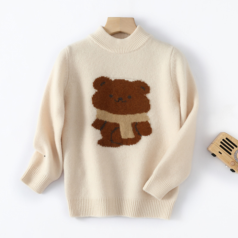 儿童100%纯羊毛衫秋冬中大童圆领毛衣男童女童棕色卡通宝宝针织衫