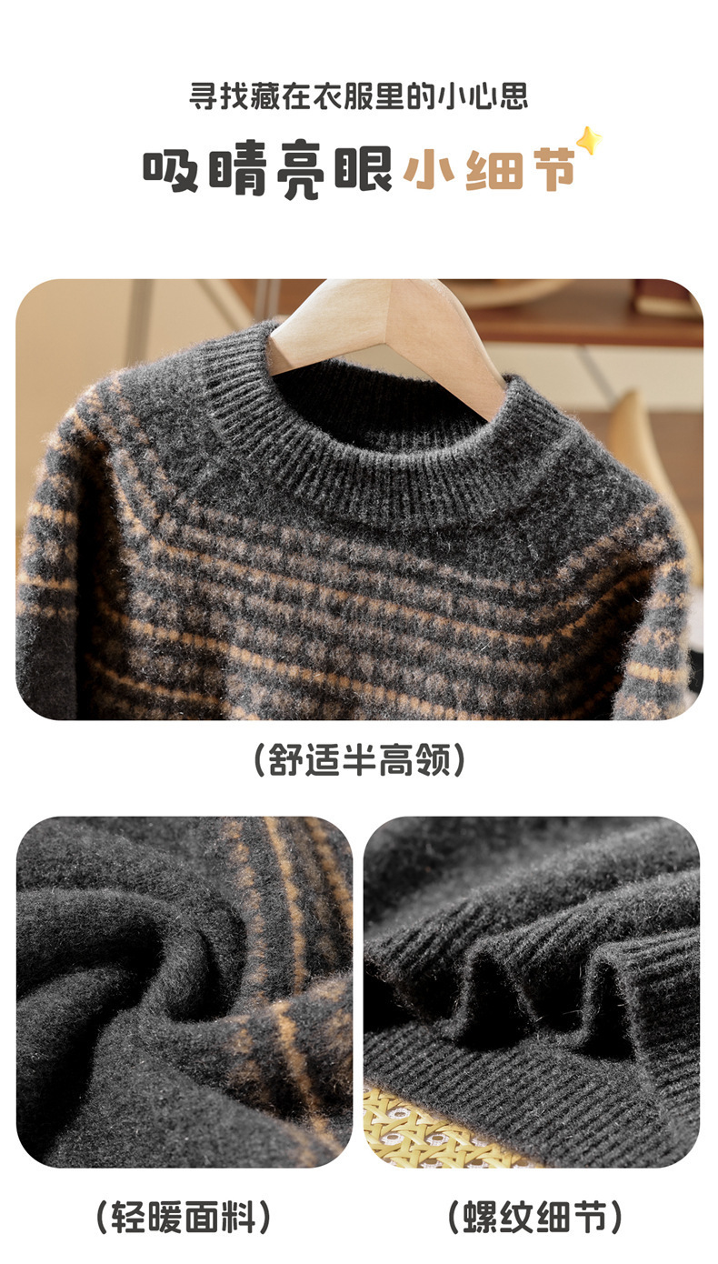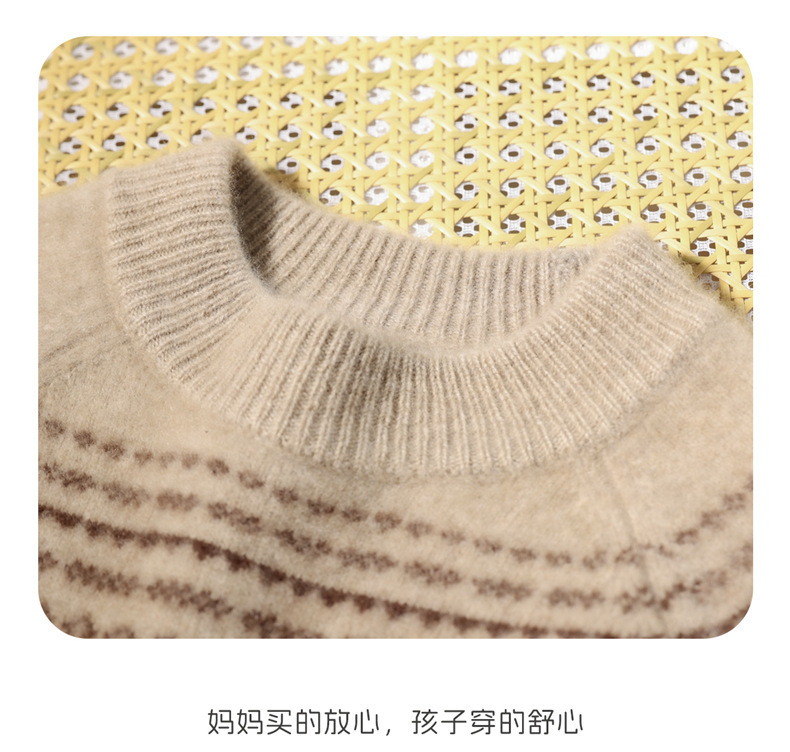 新款秋冬加厚100羊毛衫儿童圆领套头毛衣中大童休闲羊绒打底毛衣