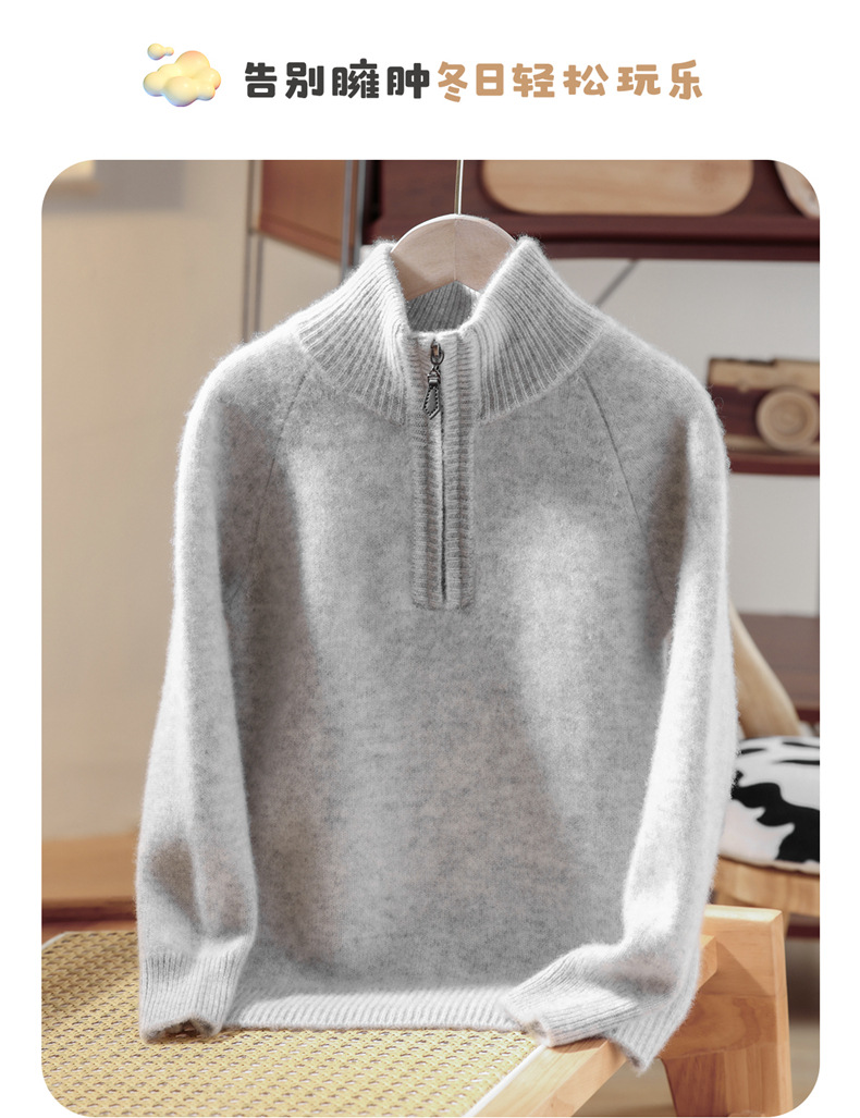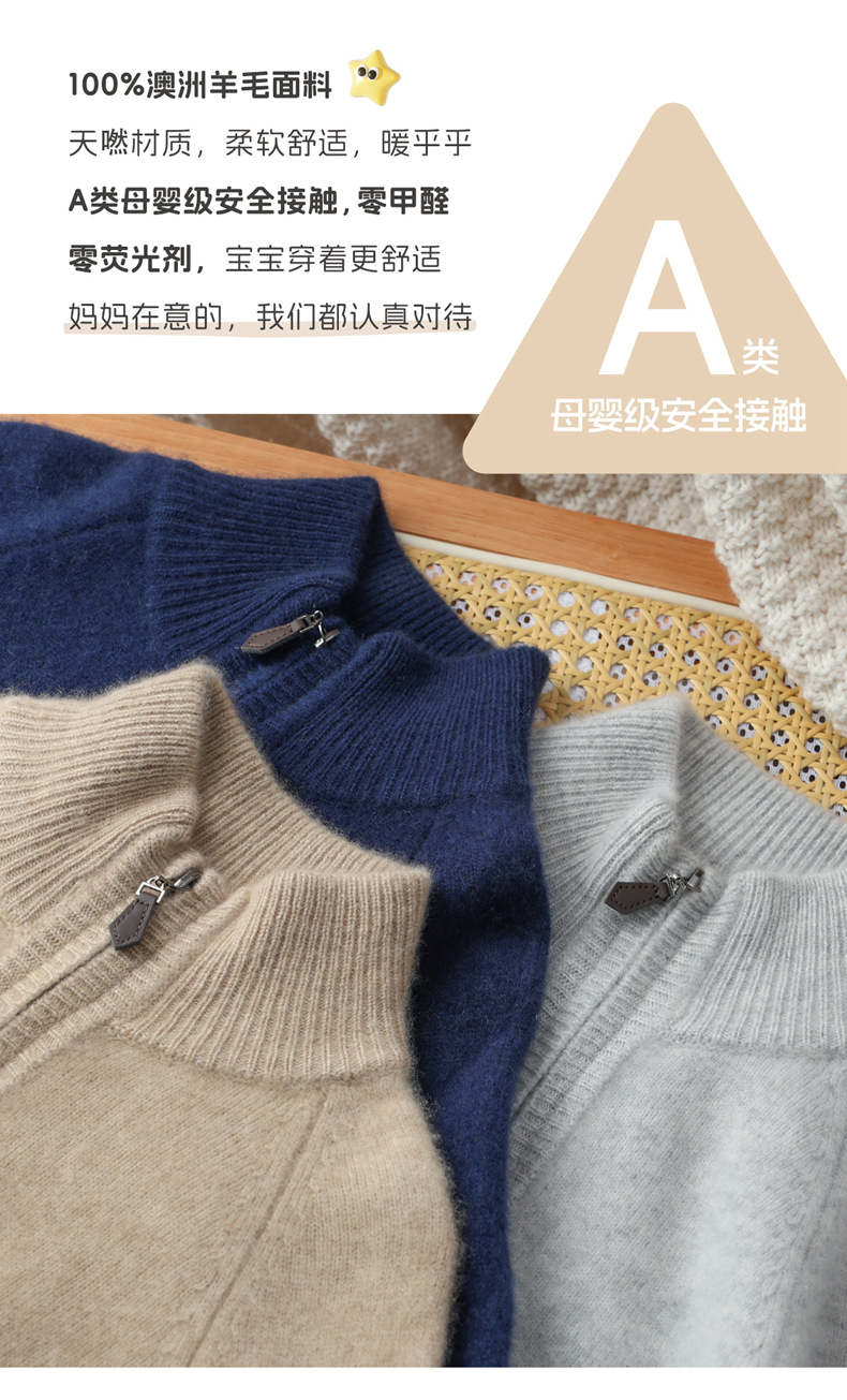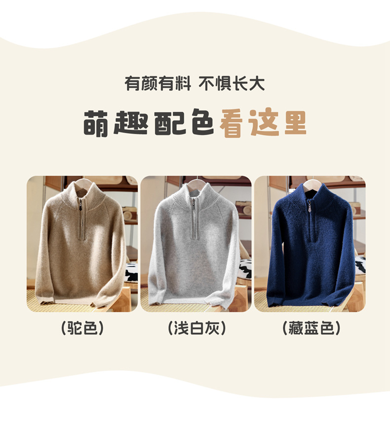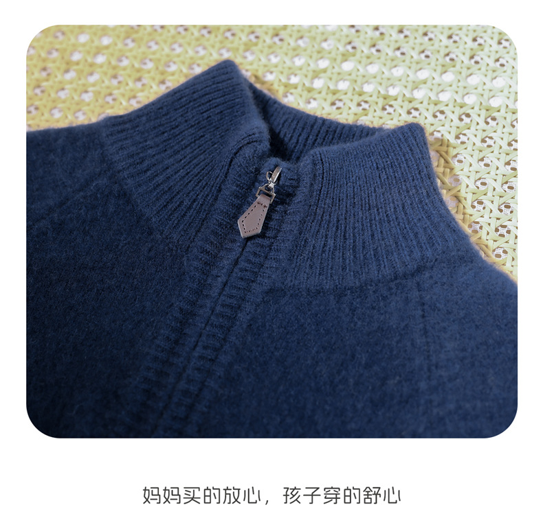 儿童羊毛衫半高领半拉链加厚打底毛衣男女童秋冬羊绒针织打底上衣