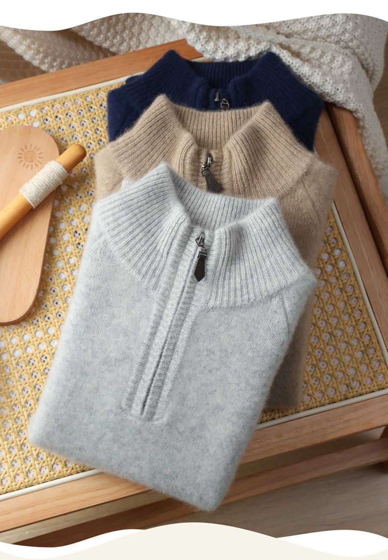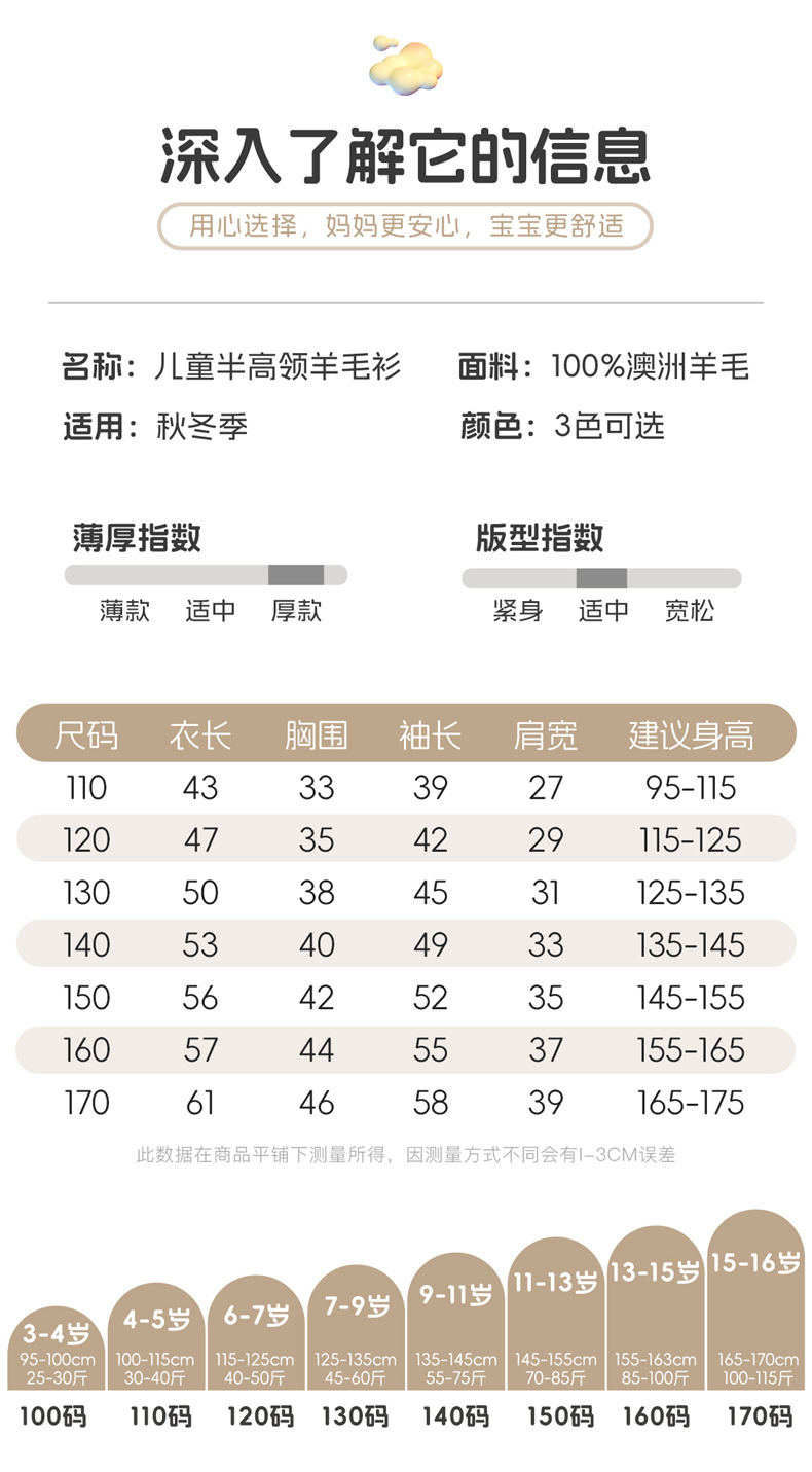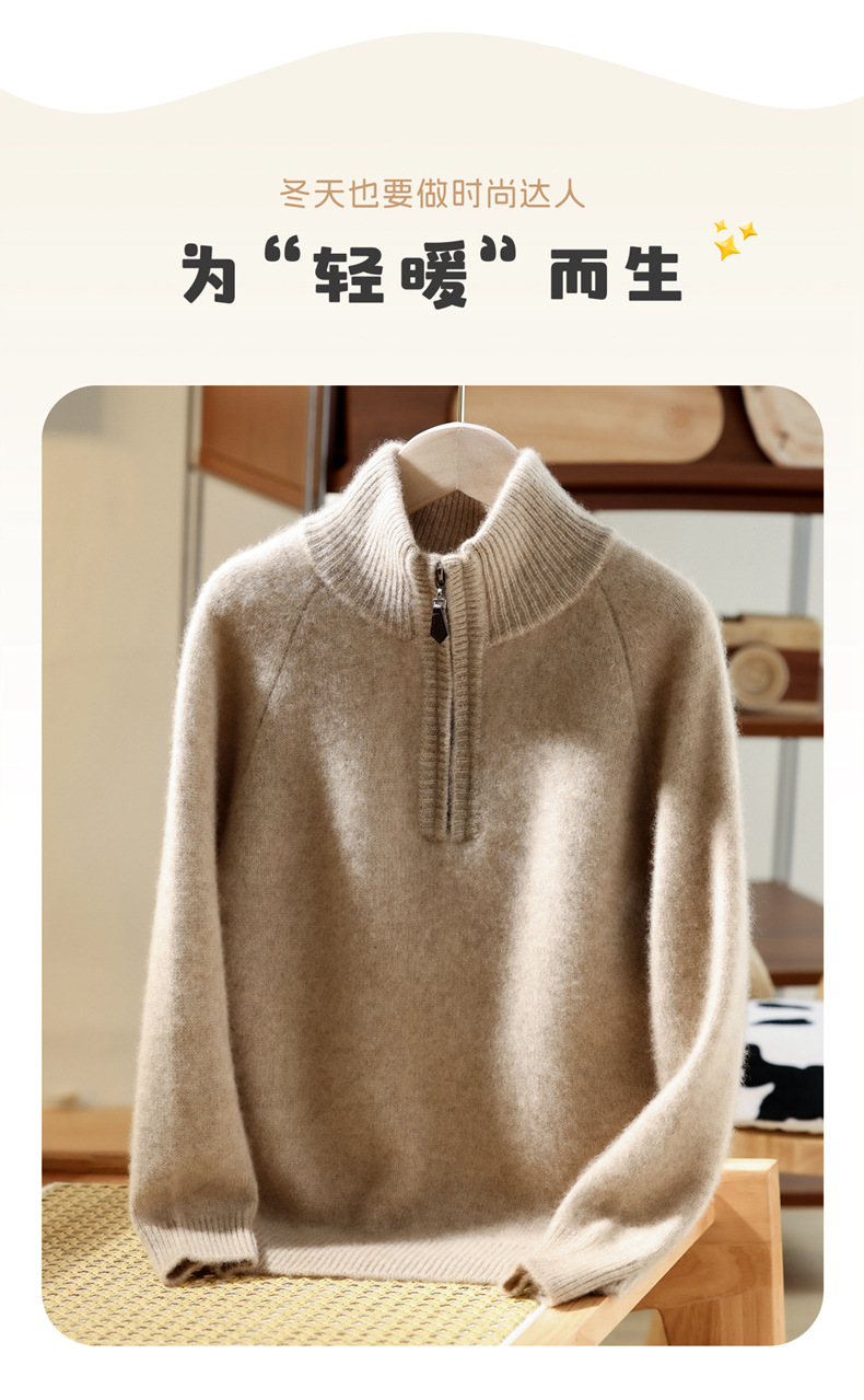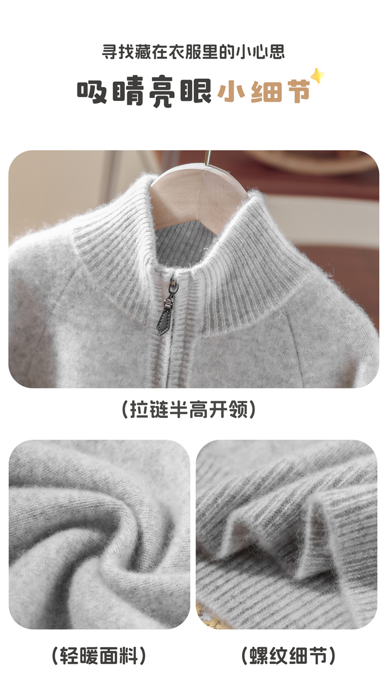 儿童羊毛衫半高领半拉链加厚打底毛衣男女童秋冬羊绒针织打底上衣