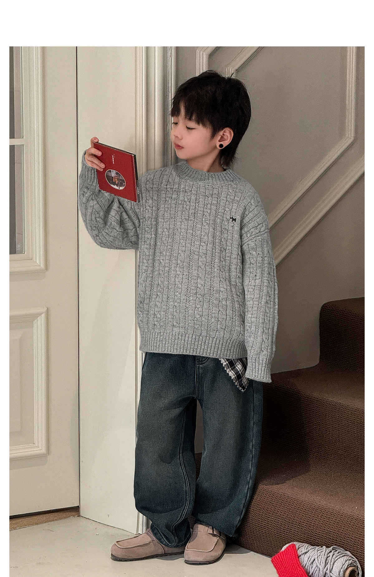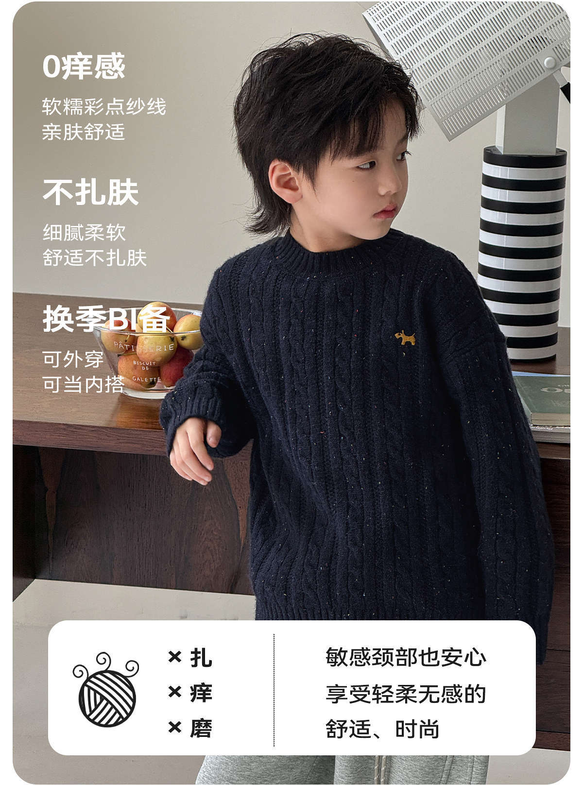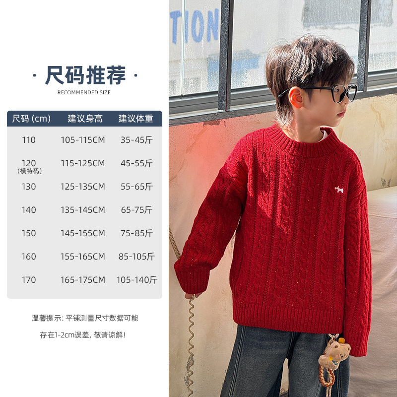 童装男童冬装加厚毛衣儿童冬季红色上衣大童男童秋冬保暖拜年衣服