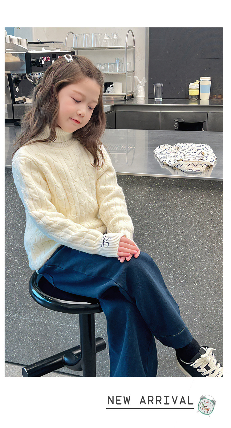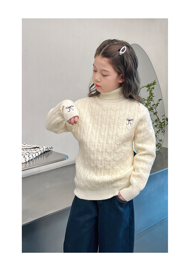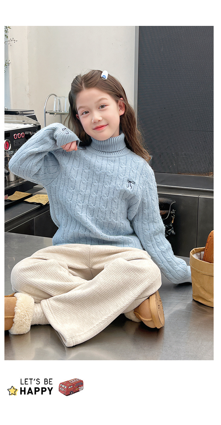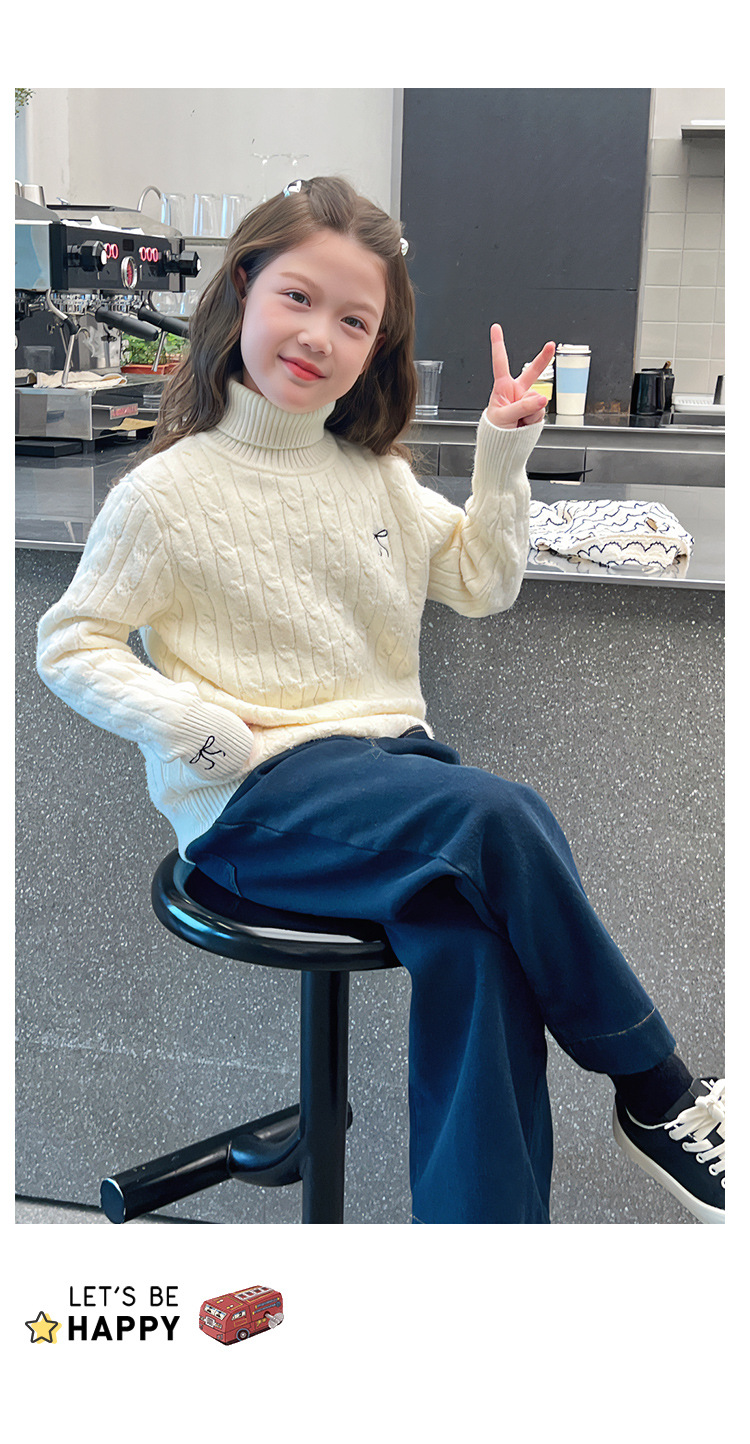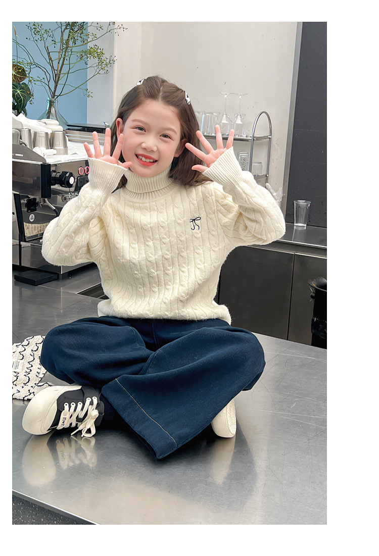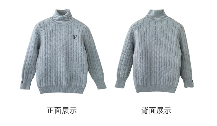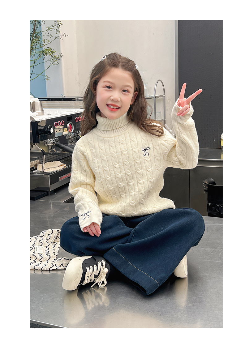 一体绒女童高领毛衣儿童翻领针织衫大童装绞花上衣2025冬装新款