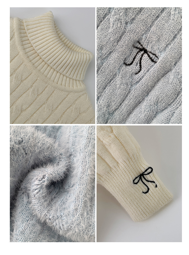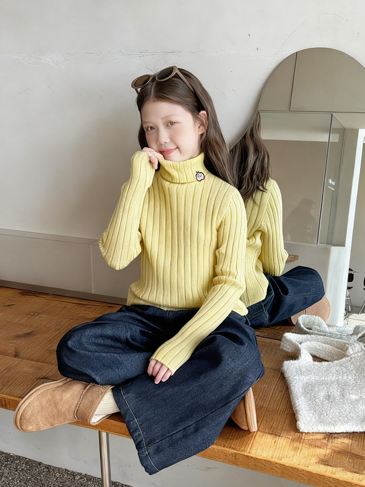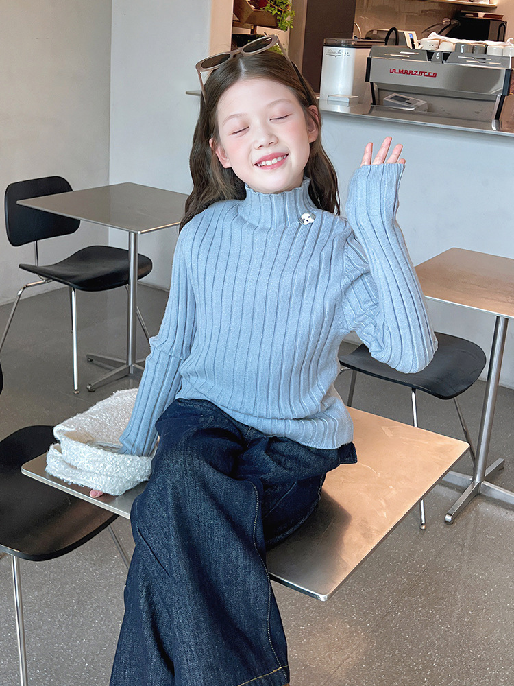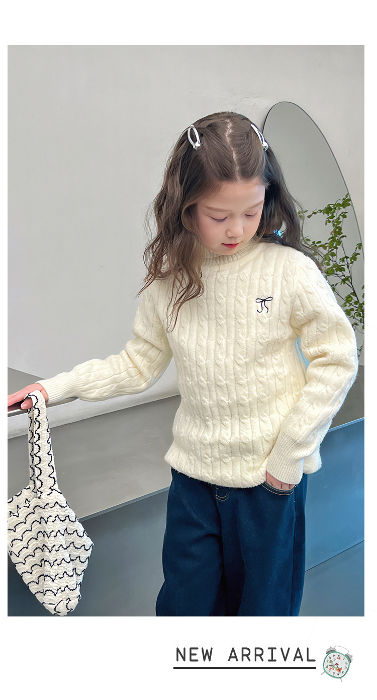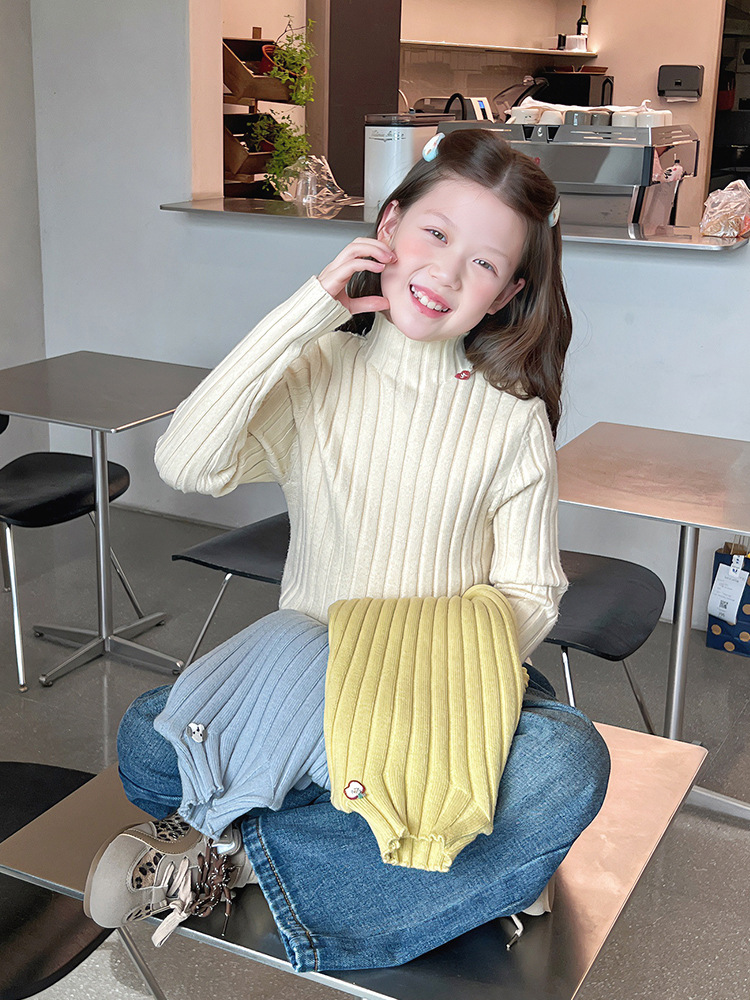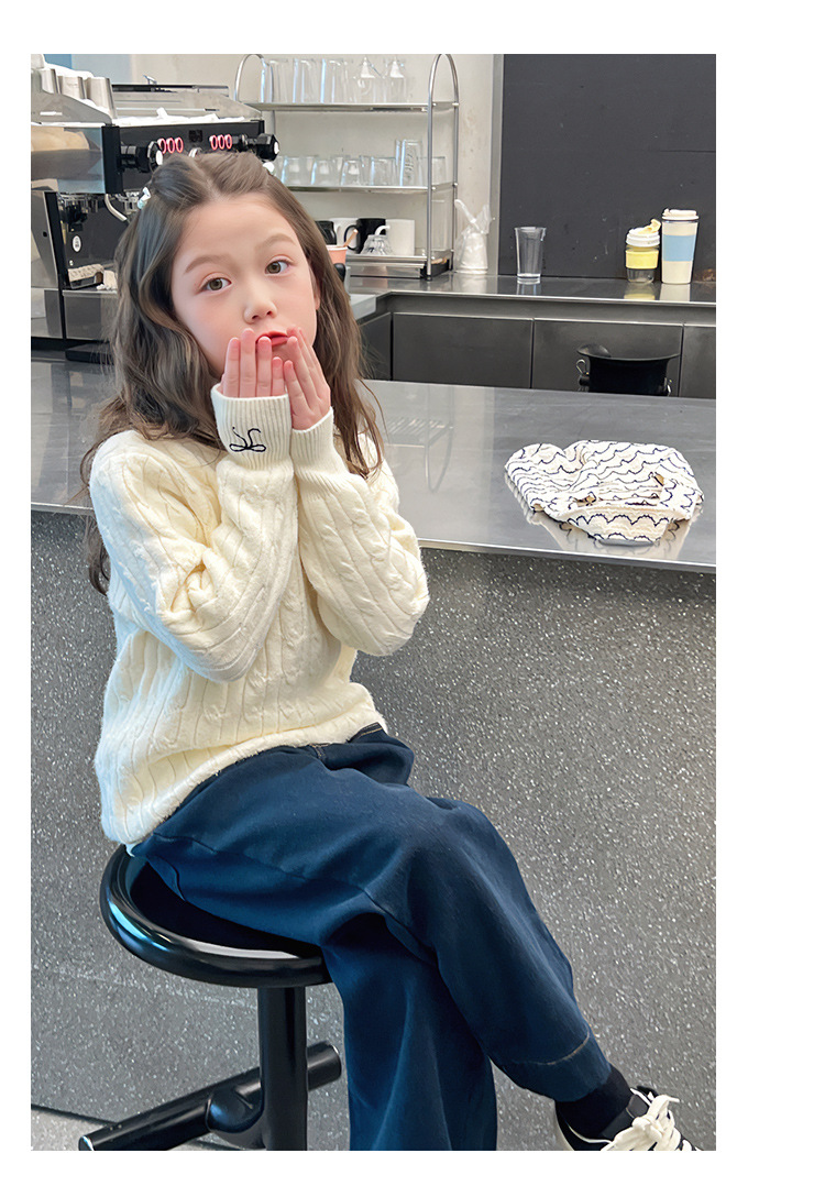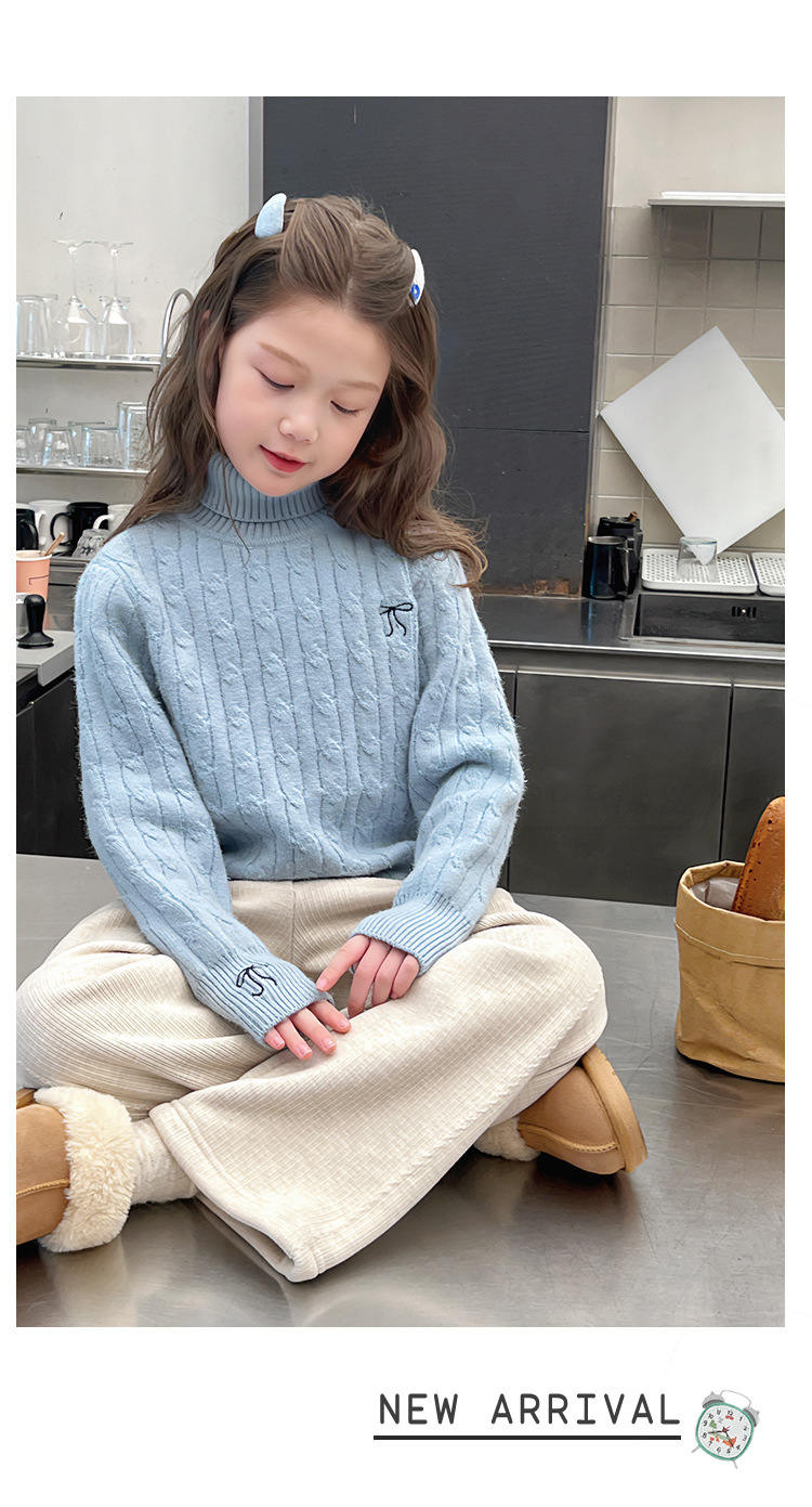 一体绒女童高领毛衣儿童翻领针织衫大童装绞花上衣2025冬装新款