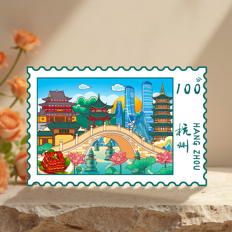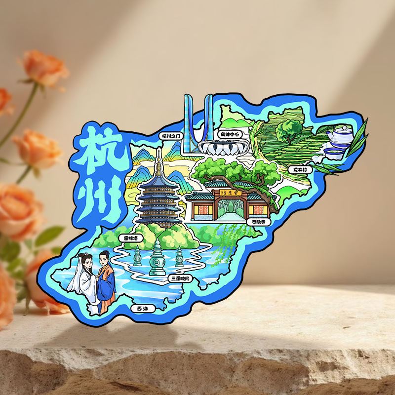 中国风杭州冰箱贴浙江城市旅行文创纪念品木质绍兴景点磁吸贴批发
