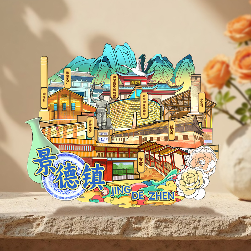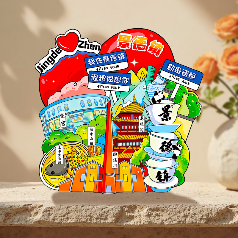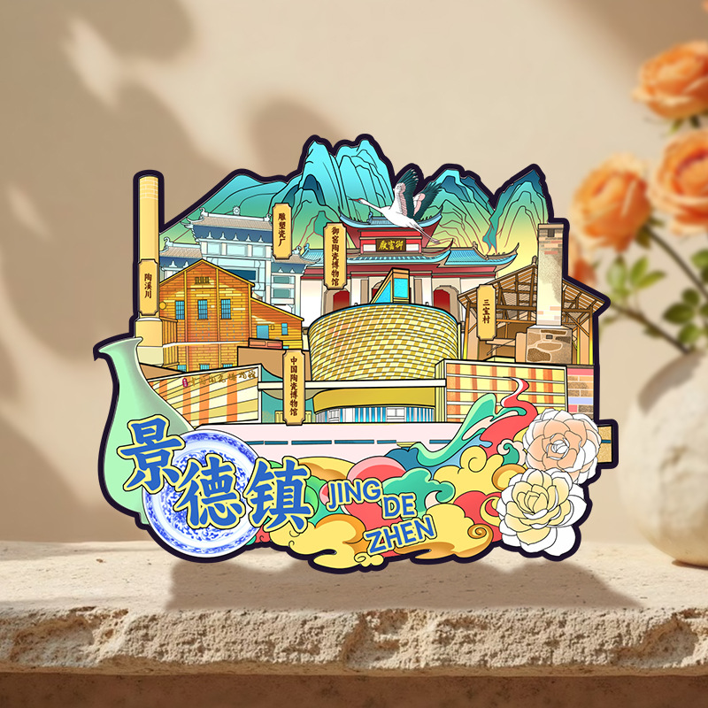 景德镇冰箱贴木质磁吸贴江西省旅游纪念品木制文创装饰文创礼品