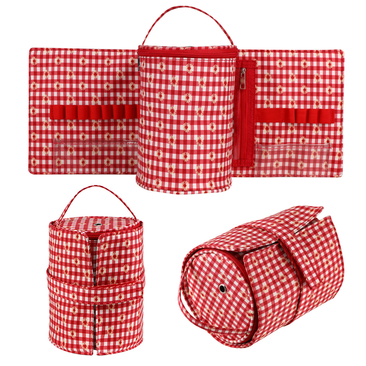 跨境毛线编织钩针配件收纳包便携式可拆卸卷筒包手提包尺子卷包