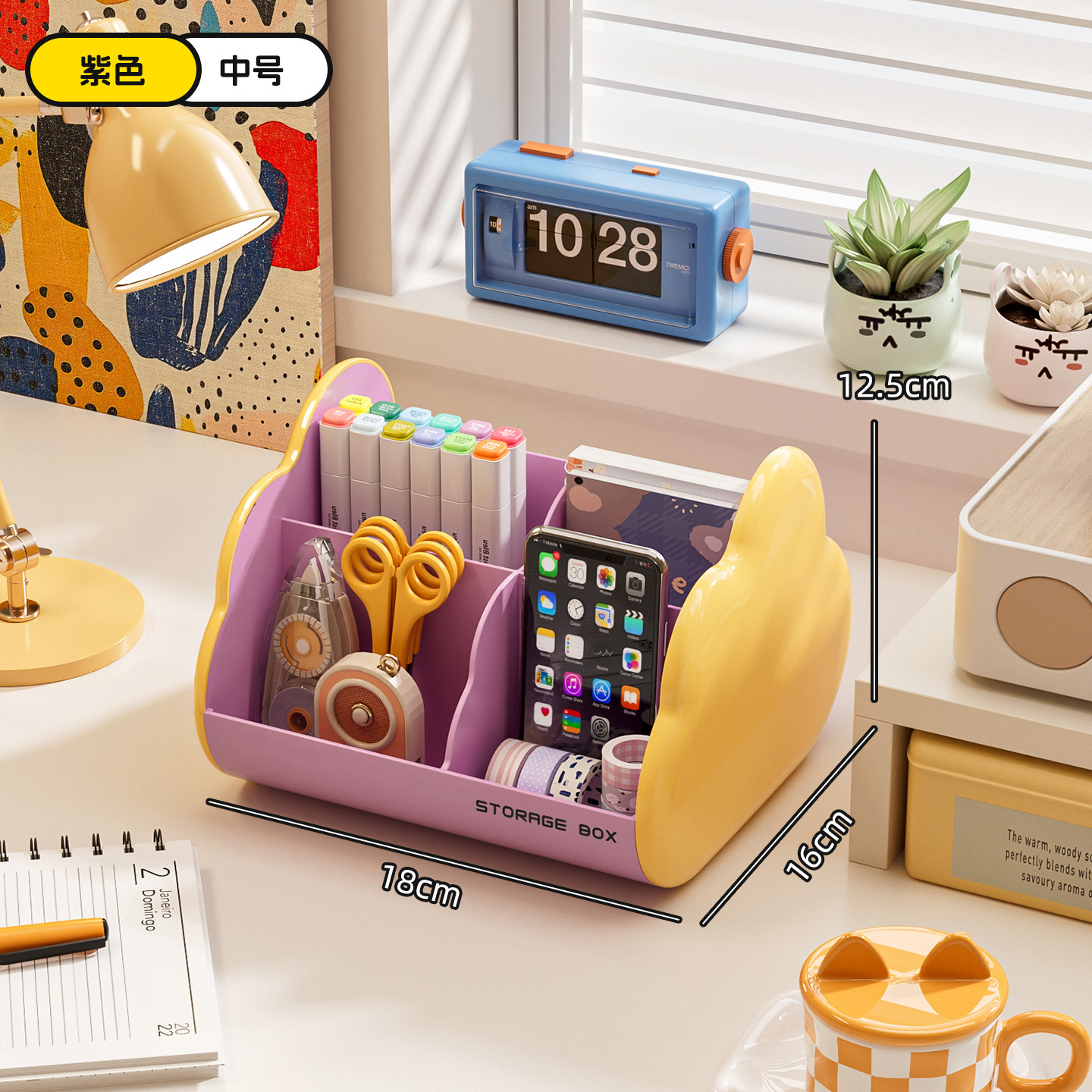 桌面收纳盒办公桌杂物置物架口红化妆品收纳盒学生文具分格整理盒
