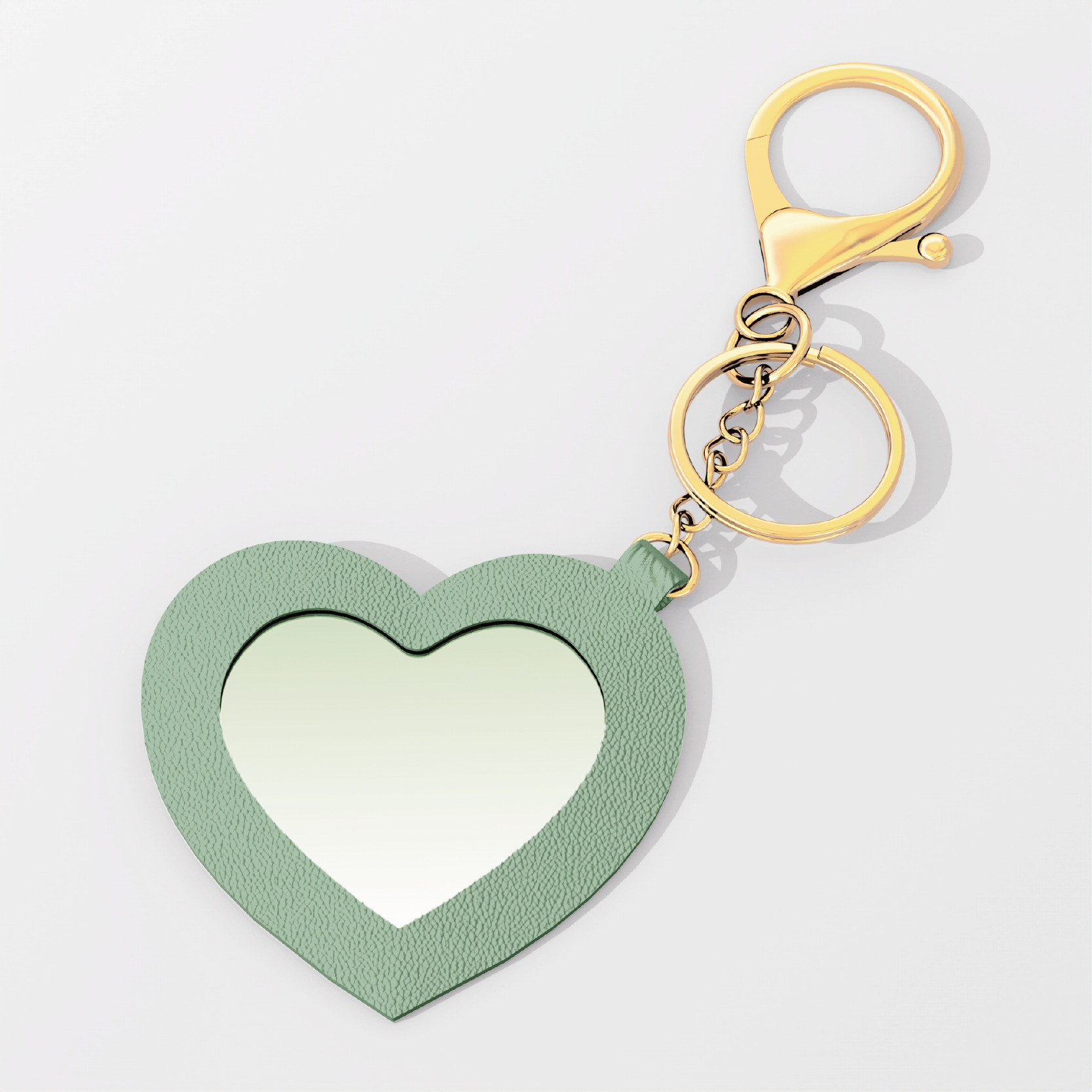 可爱小桃心便携镜子钥匙扣PU皮革爱心化妆镜钥匙包包挂饰跨境代发
