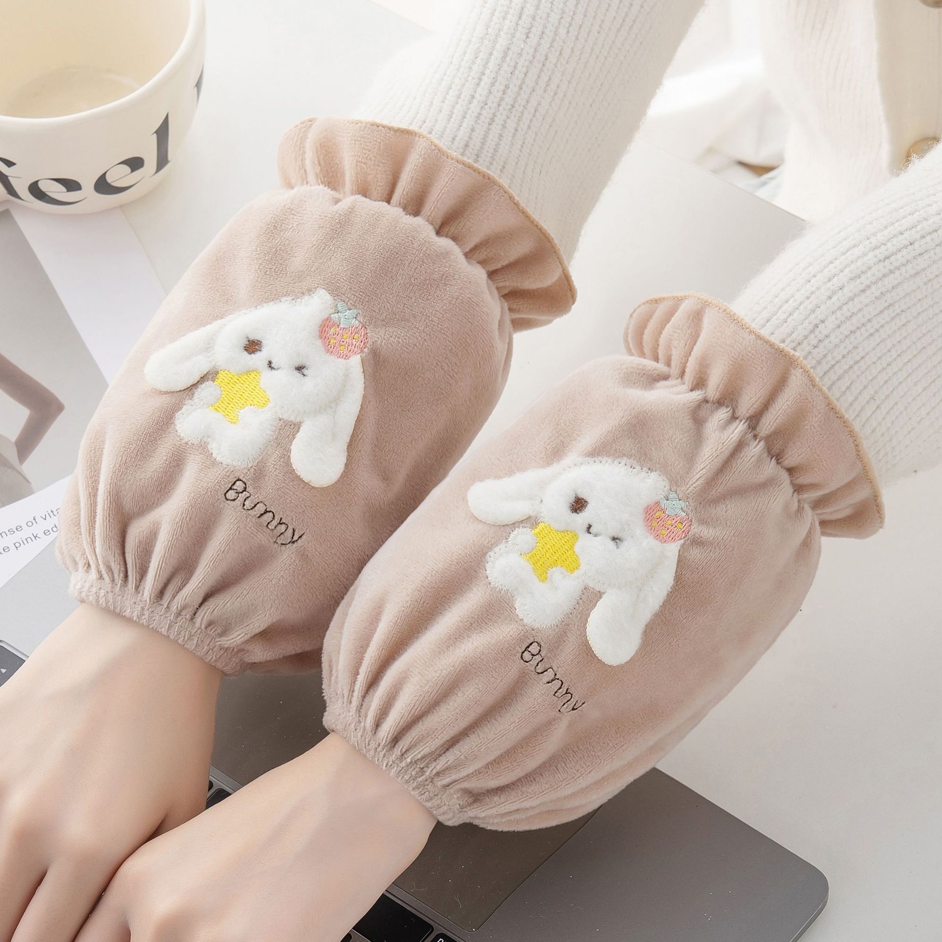 秋冬可爱卡通短款绒布保暖防污袖套成人学生小孩居家工作耐脏袖头