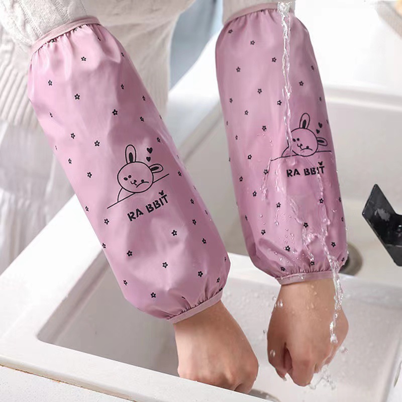 秋冬季厨房韩版袖套女式套袖防污防水防油加长款可爱工作家务手套