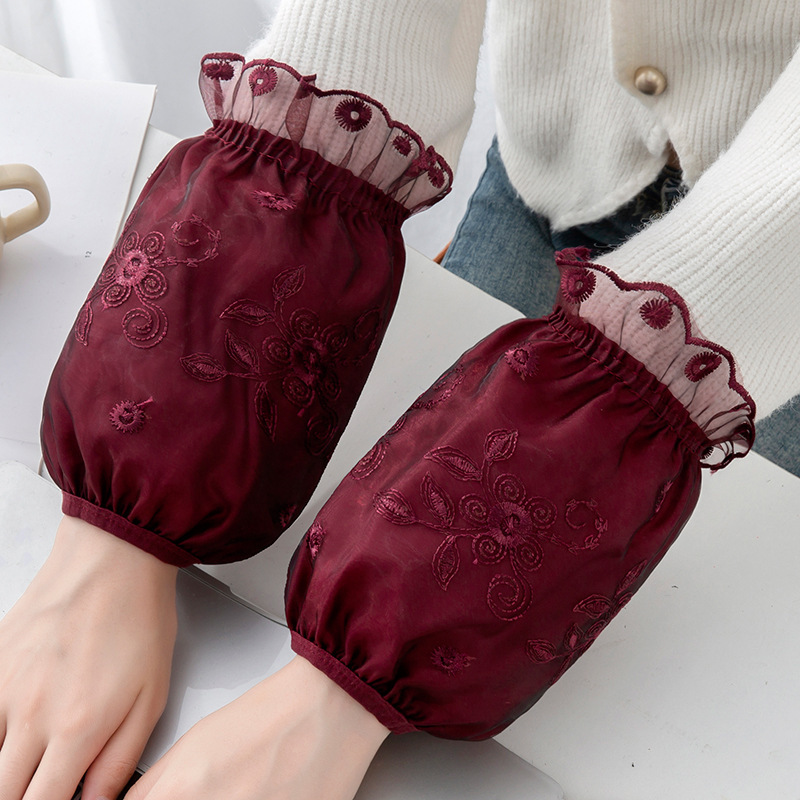新款秋冬韩版可爱短款蕾丝双层防污袖套女居家干活耐脏套袖护袖头