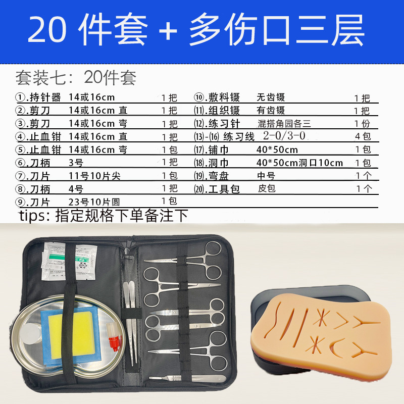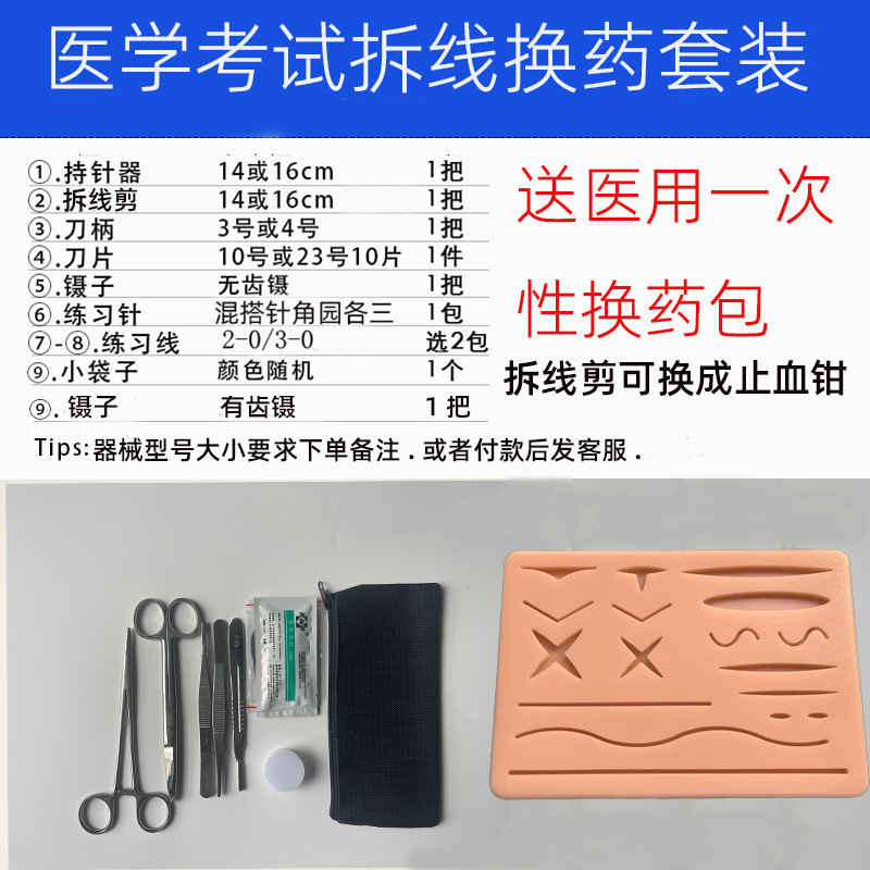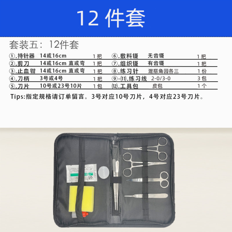 医学生外科练习缝合器械包手术工具口腔清创套装持针器线皮肤模型