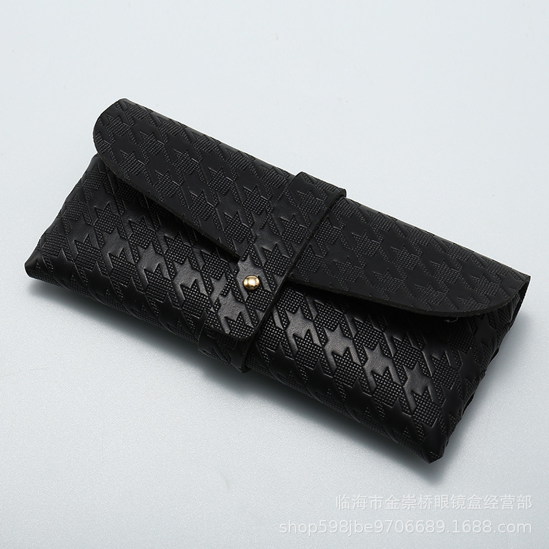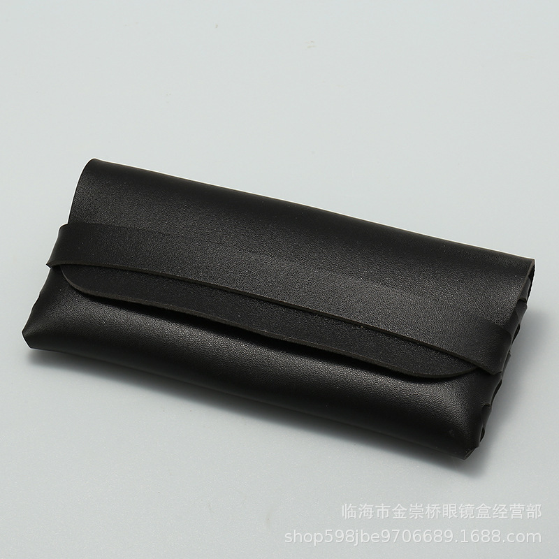 厂批单钉眼镜盒现货黑色皮质眼镜包便携眼镜袋墨镜收纳盒可印