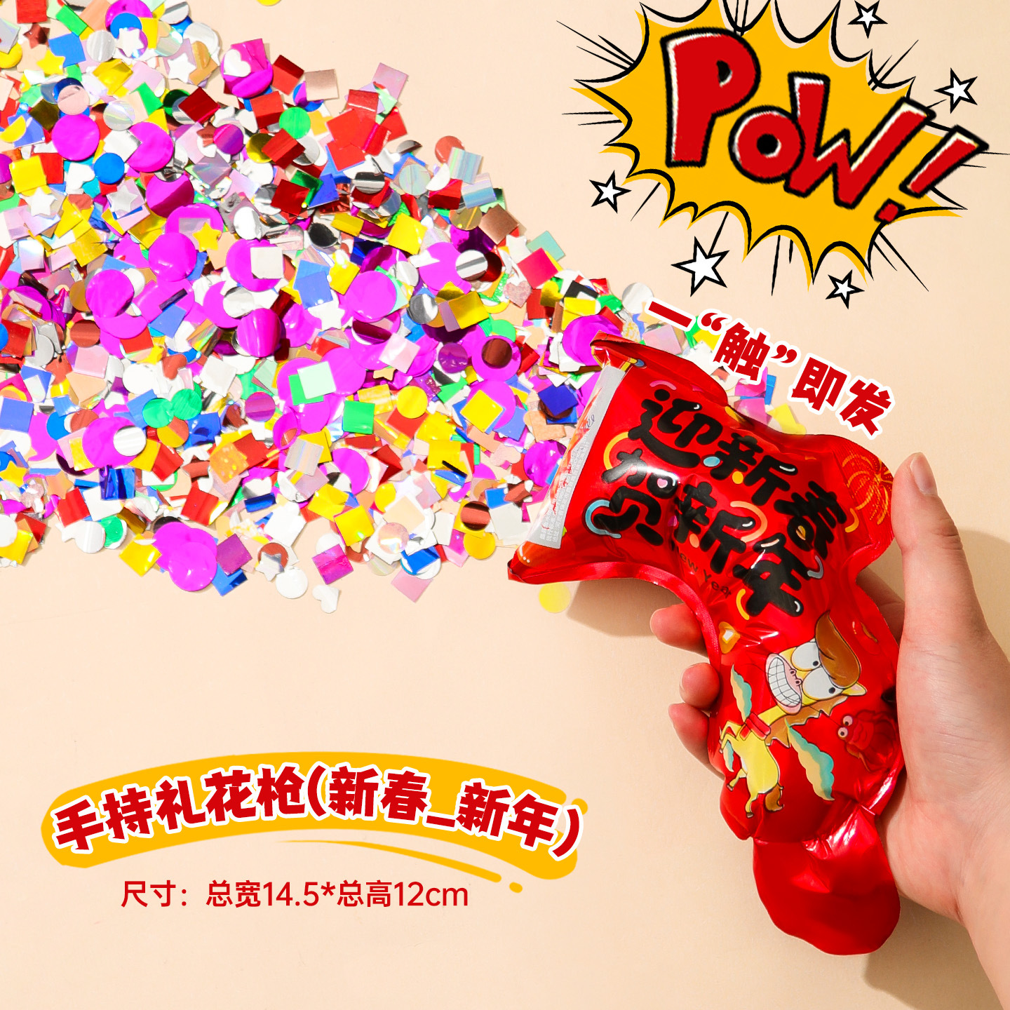 2026新年小礼炮充气手持礼花手枪马年春节装饰过年氛围感拍照道具