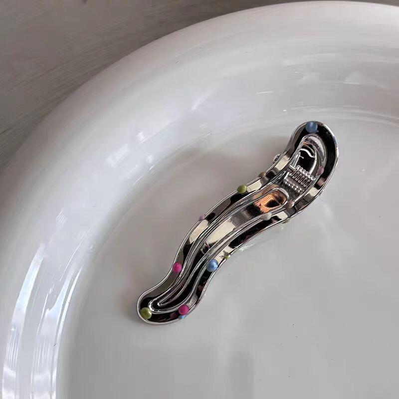 冷淡风金属银色波浪线条发夹侧边几何长方形水滴鸭嘴夹刘海夹发卡