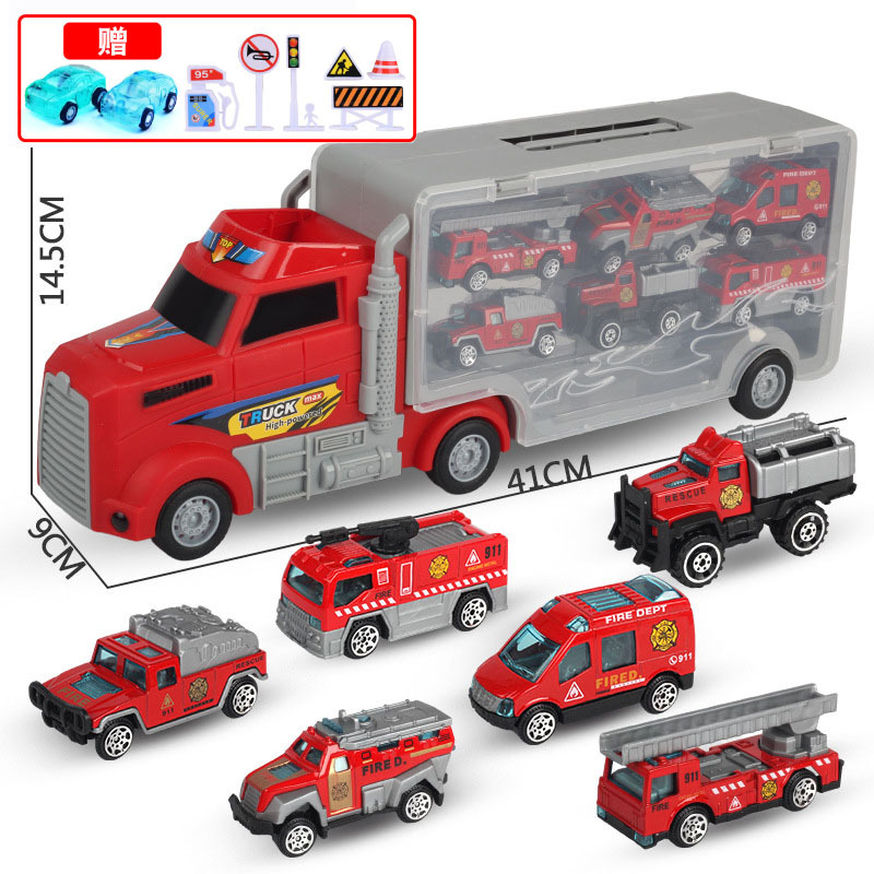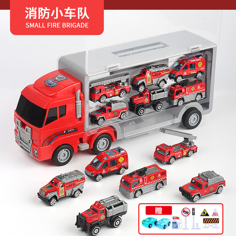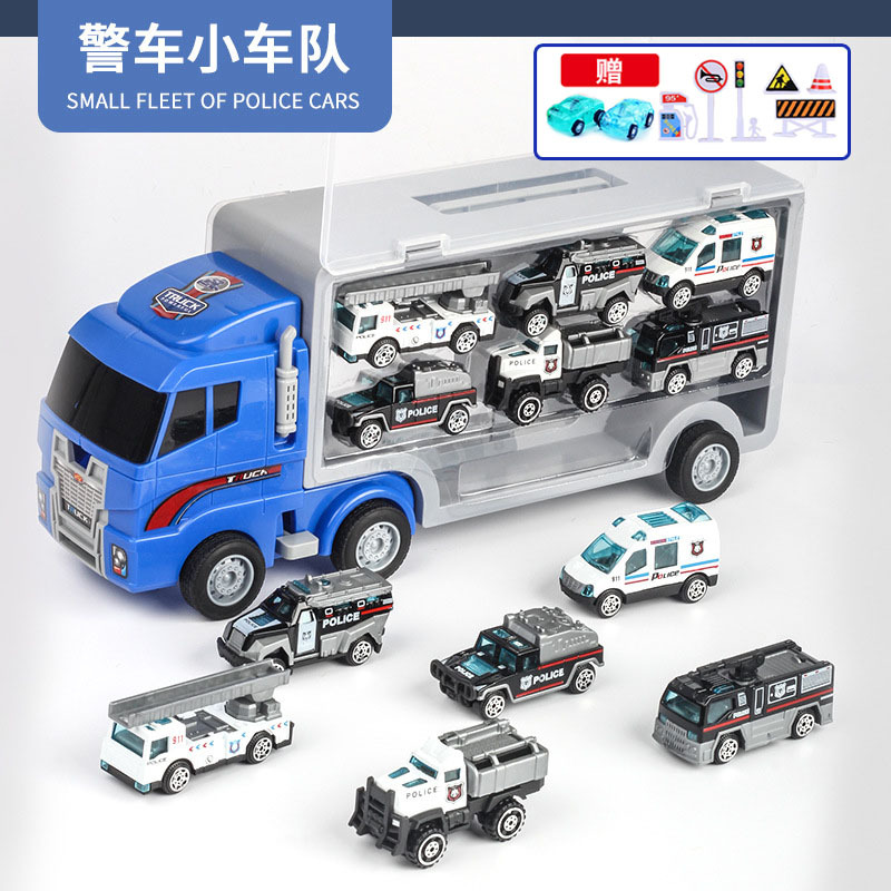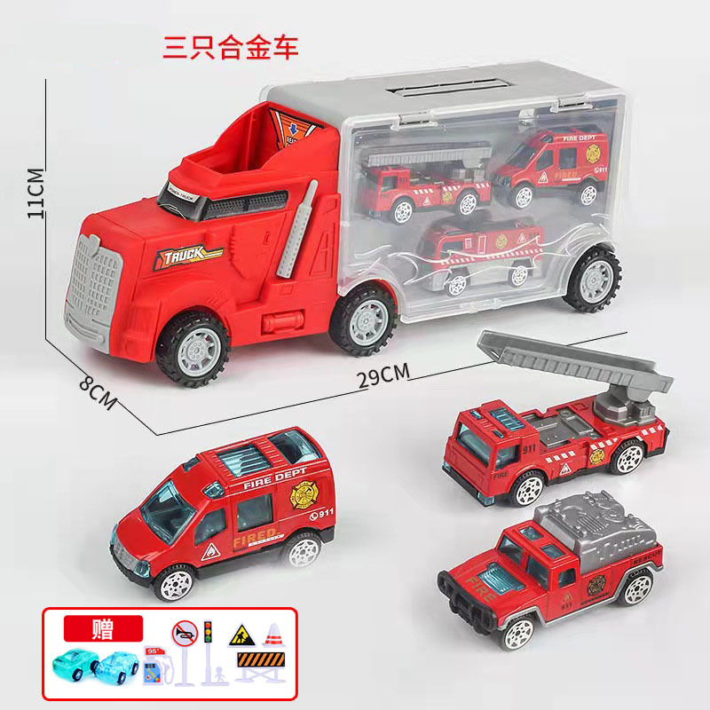 【包邮一件代发】儿童滑行货柜收纳玩具车内含惯性合金小车队军事