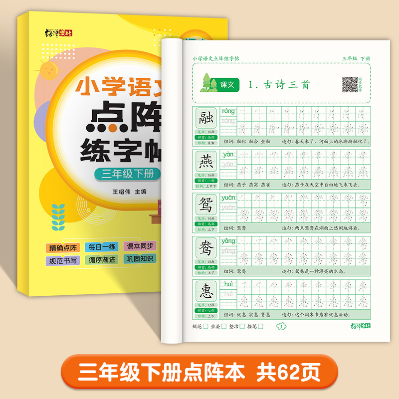 小学生点阵1-6年级小学语文同步生字练字帖上下册人教版同步训练