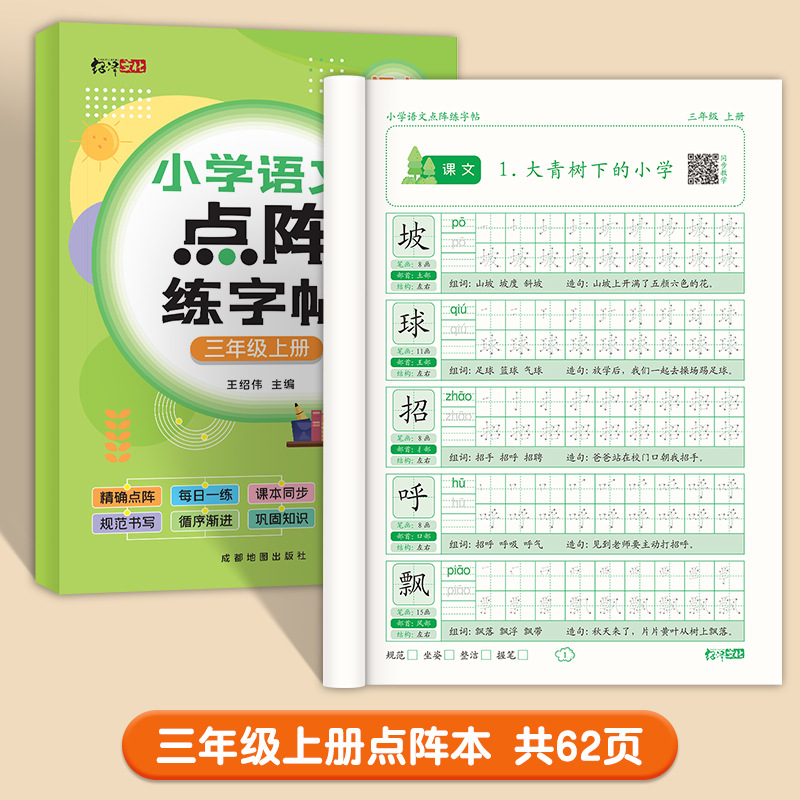 小学语文同步练字帖1-3年级上下册人教版一年级点阵生字描红本册