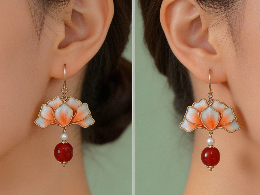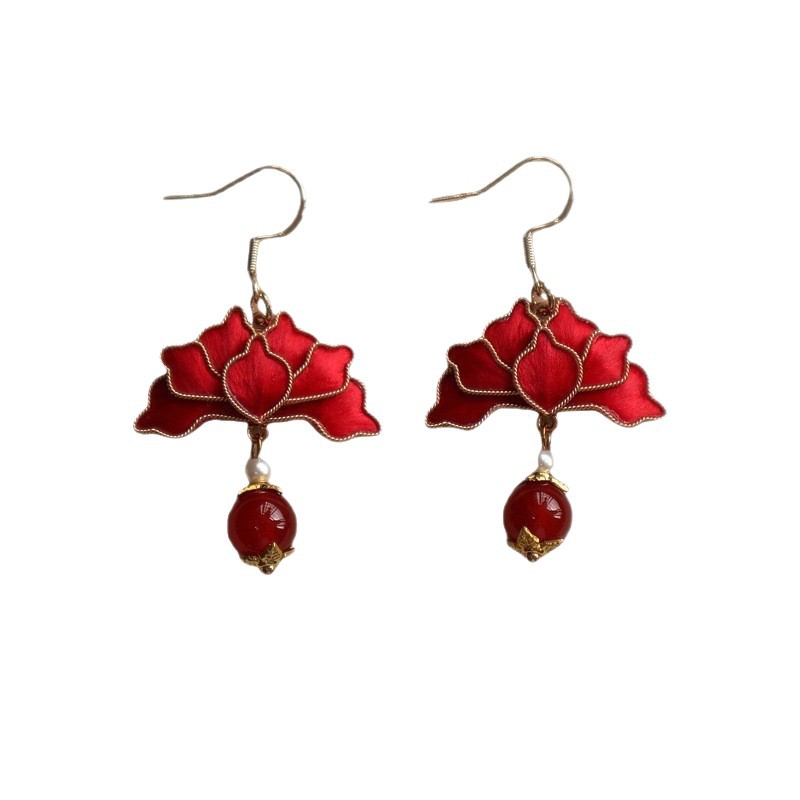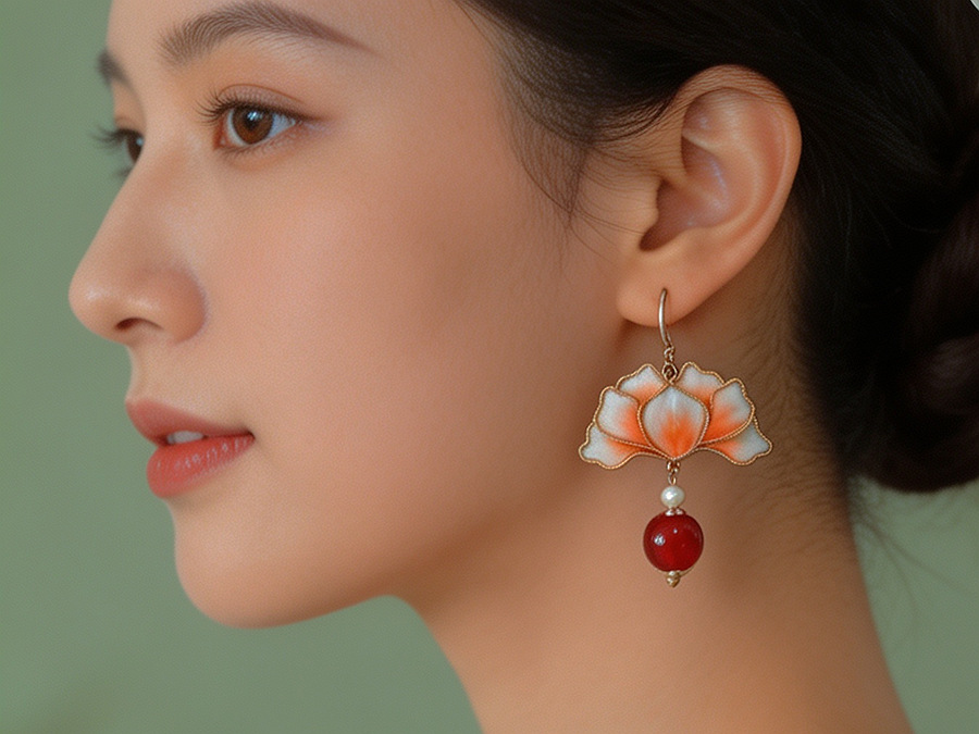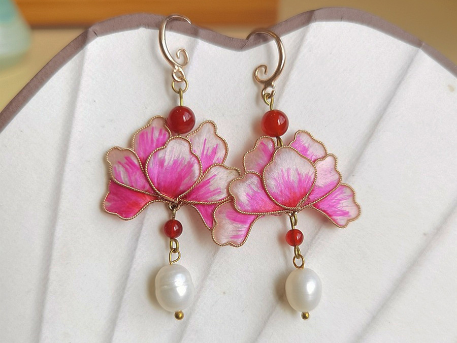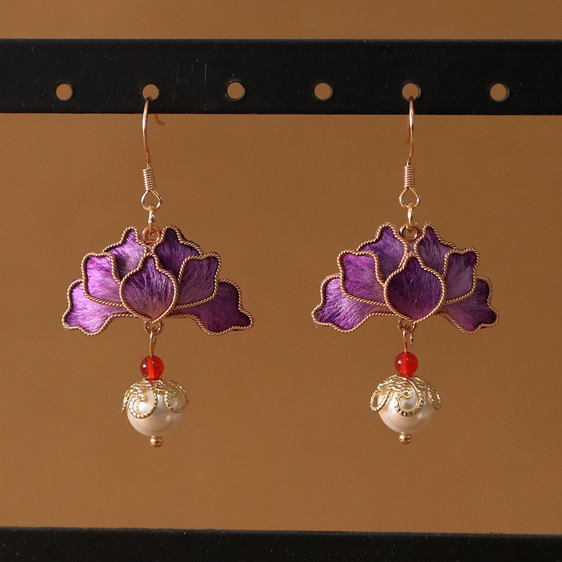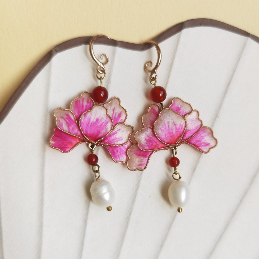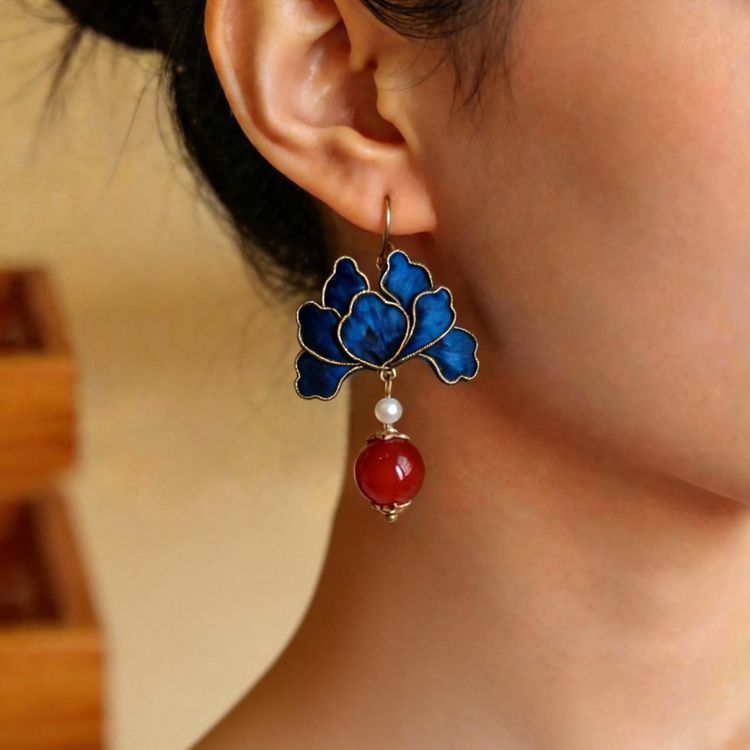 原创手工非遗掐丝绒花蚕丝仿点翠耳环复古气质感中式古典风耳饰品