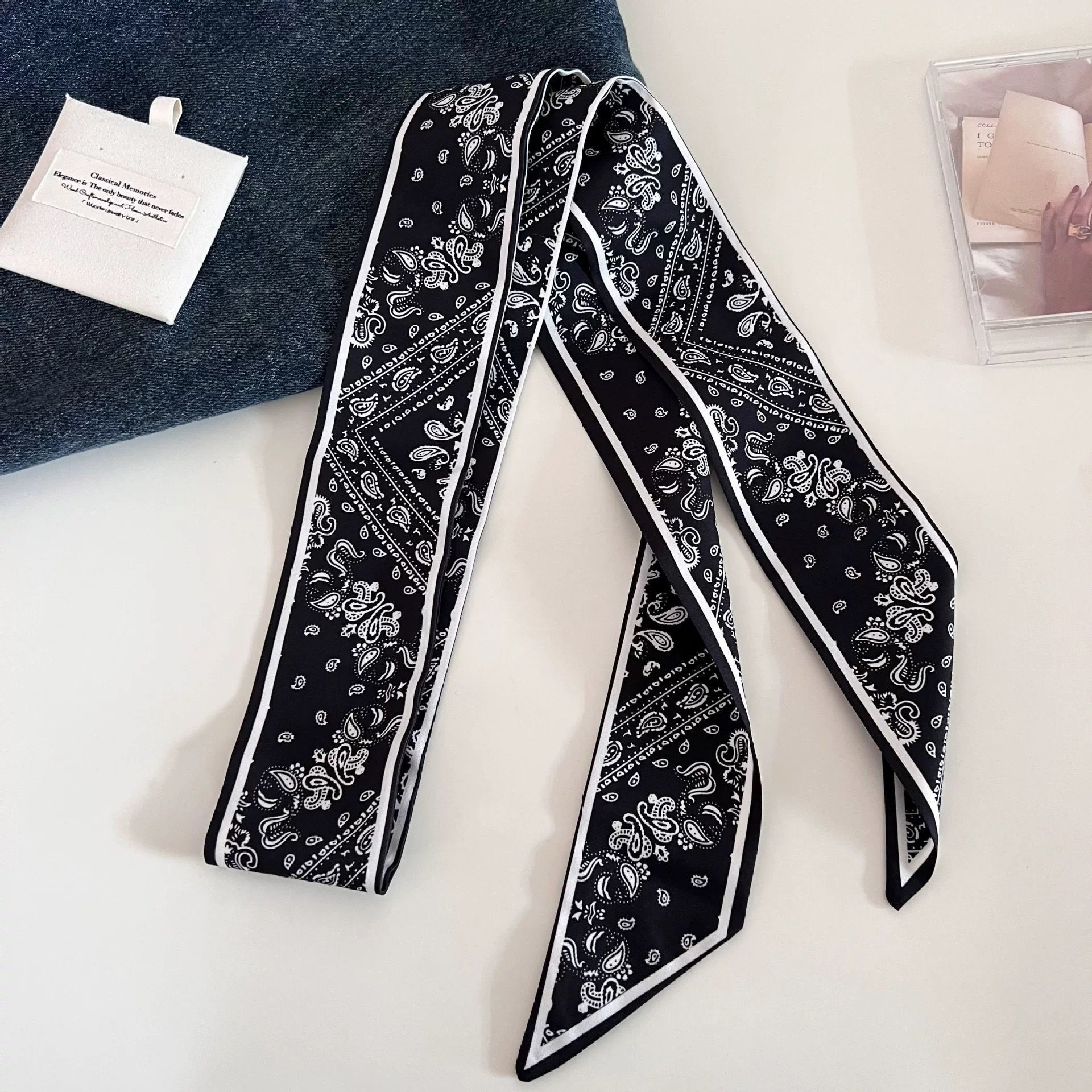 春夏新款腰果法式长条丝巾时尚简约百搭腰带发带叠穿绑包飘带配饰