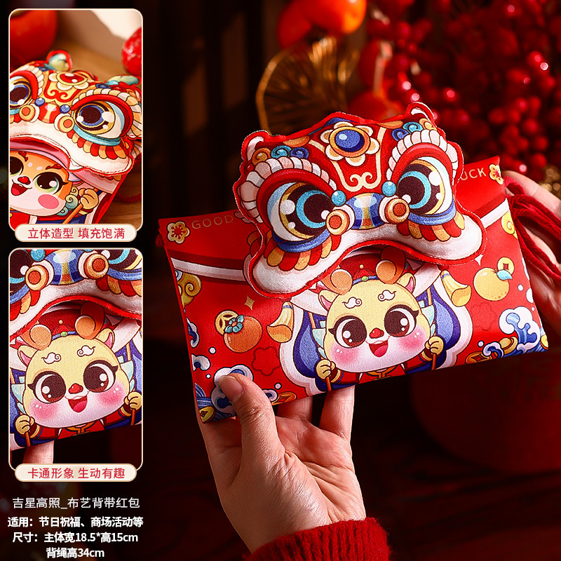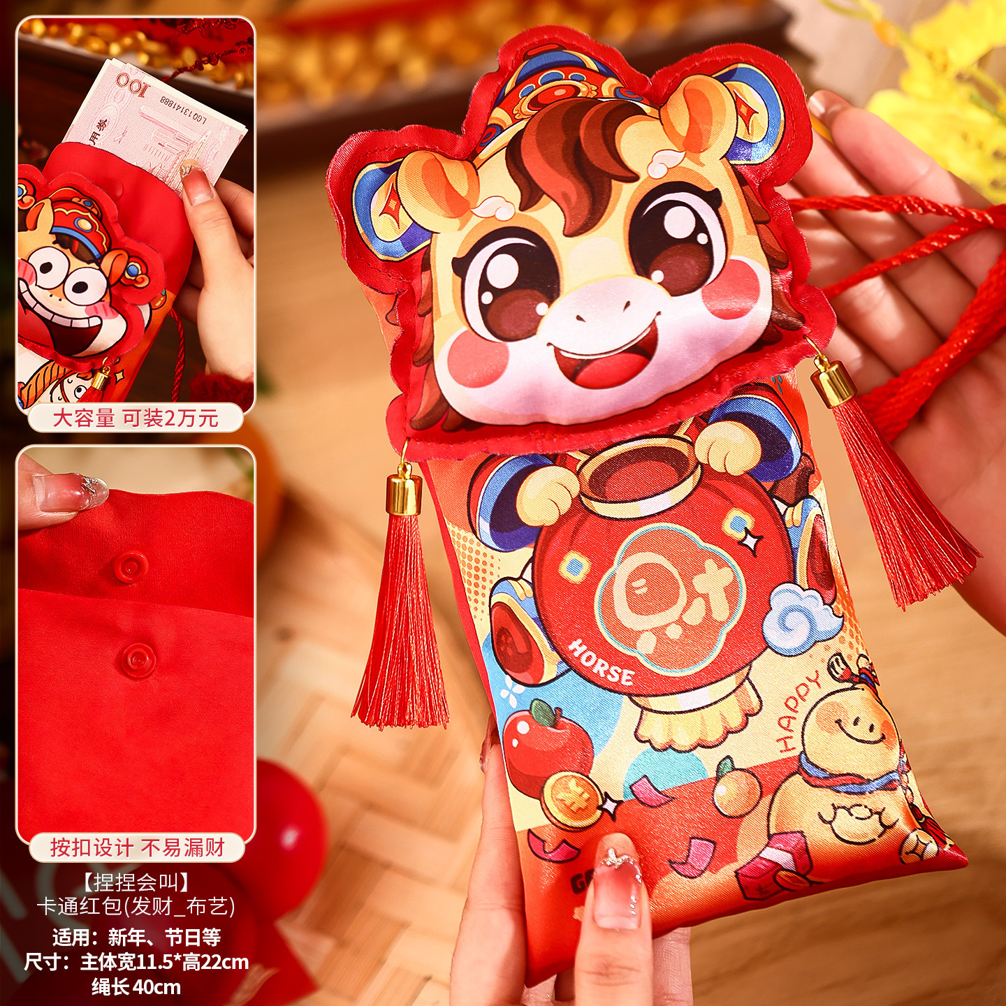 马年红包袋背带2026新年卡通利是封春节过年儿童拜年万元压岁钱包