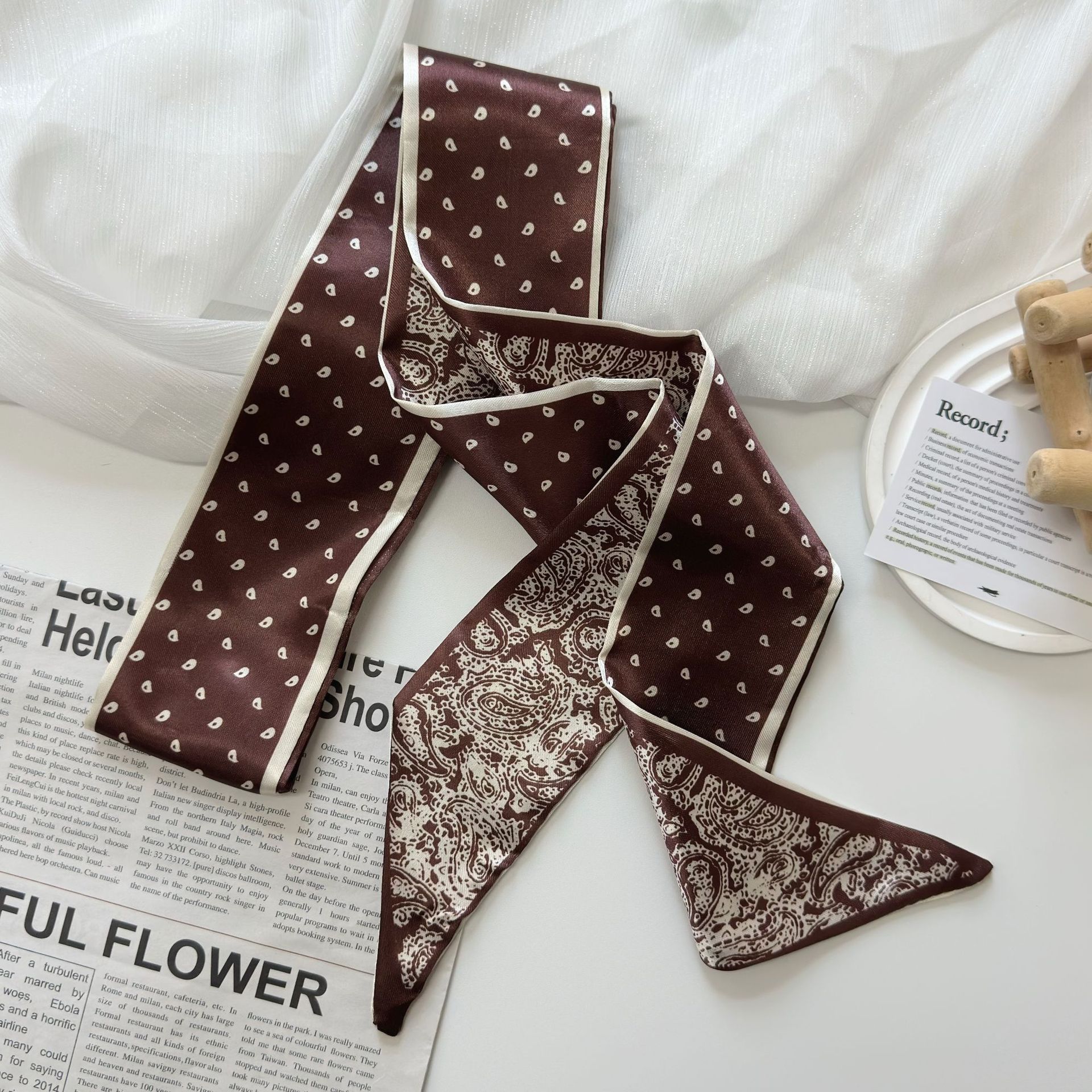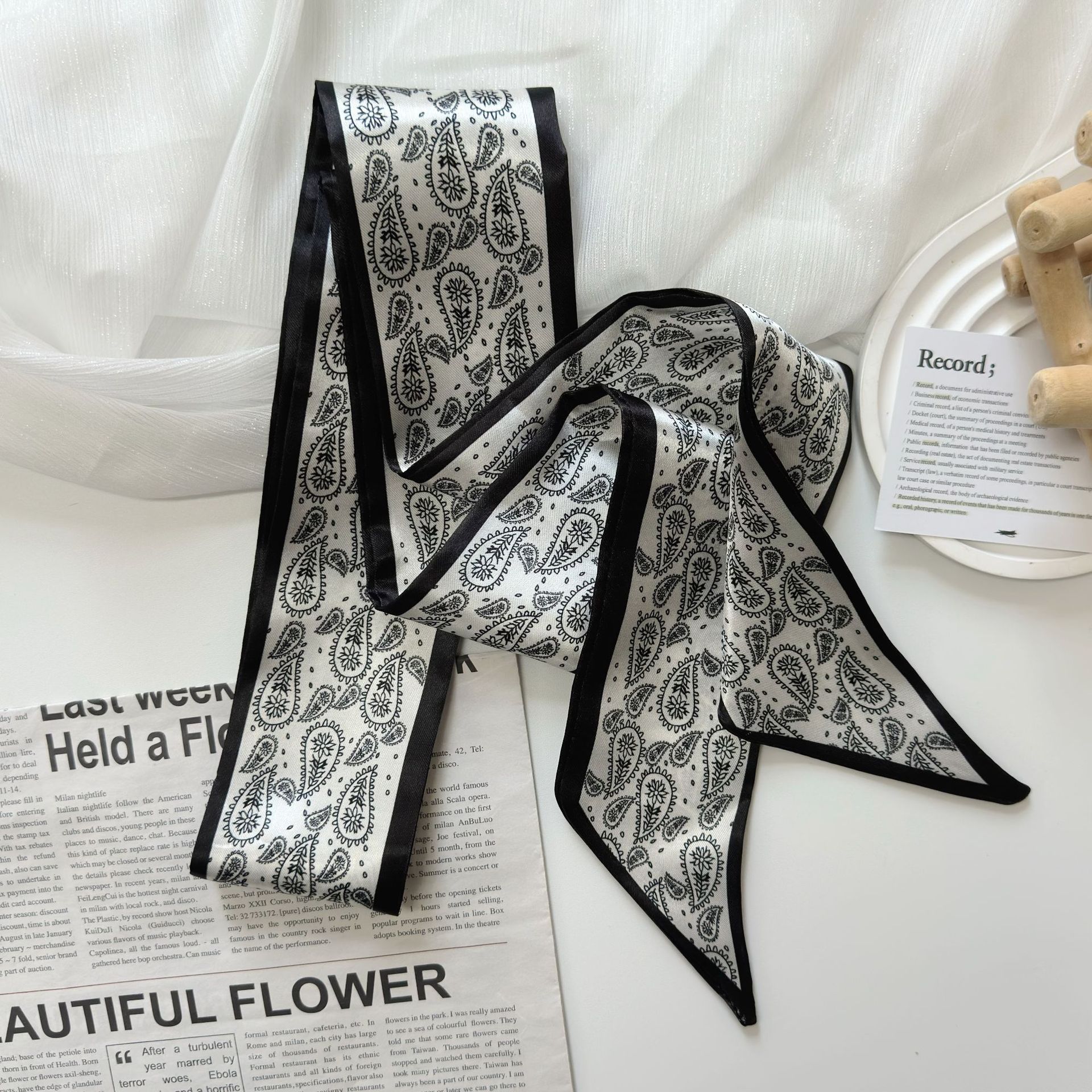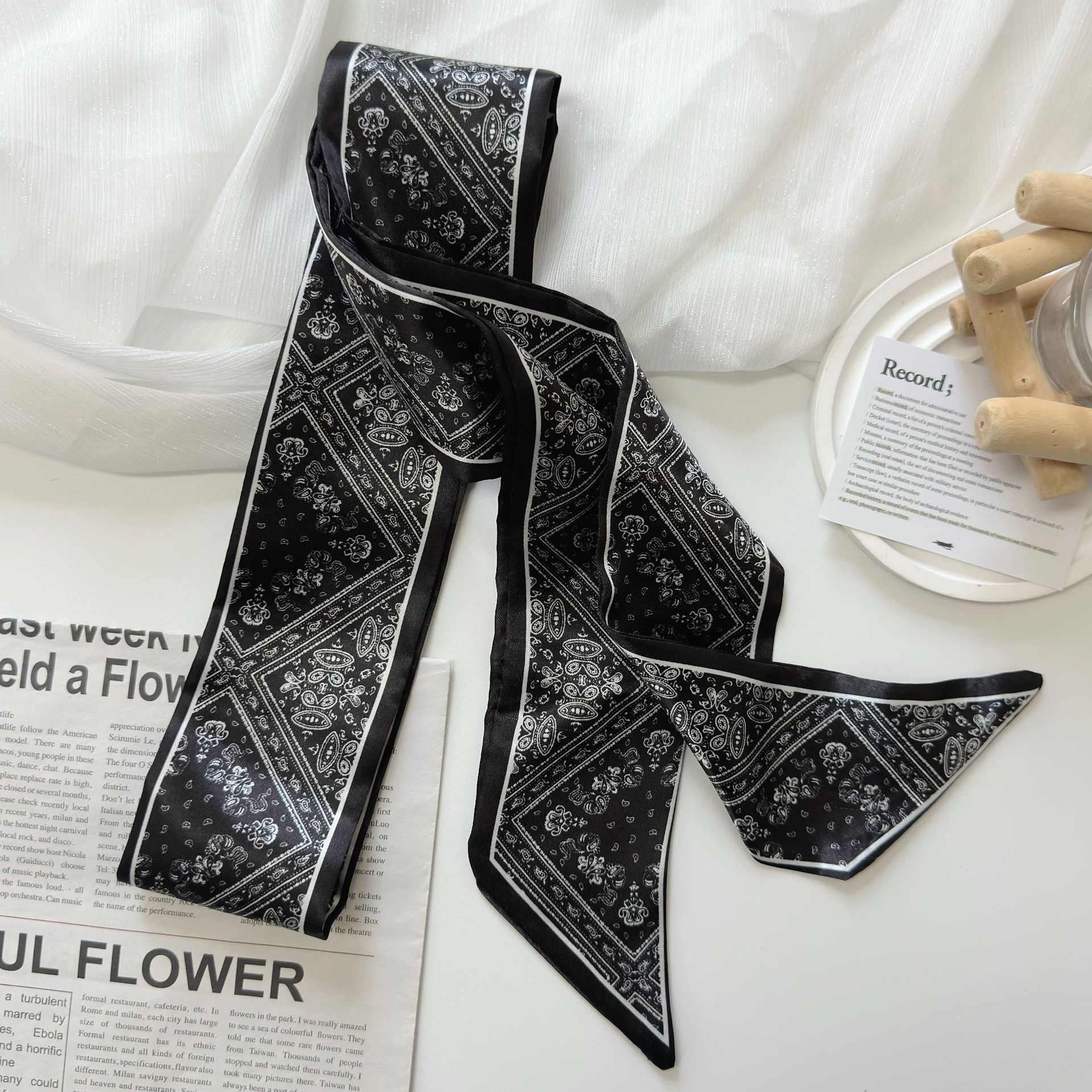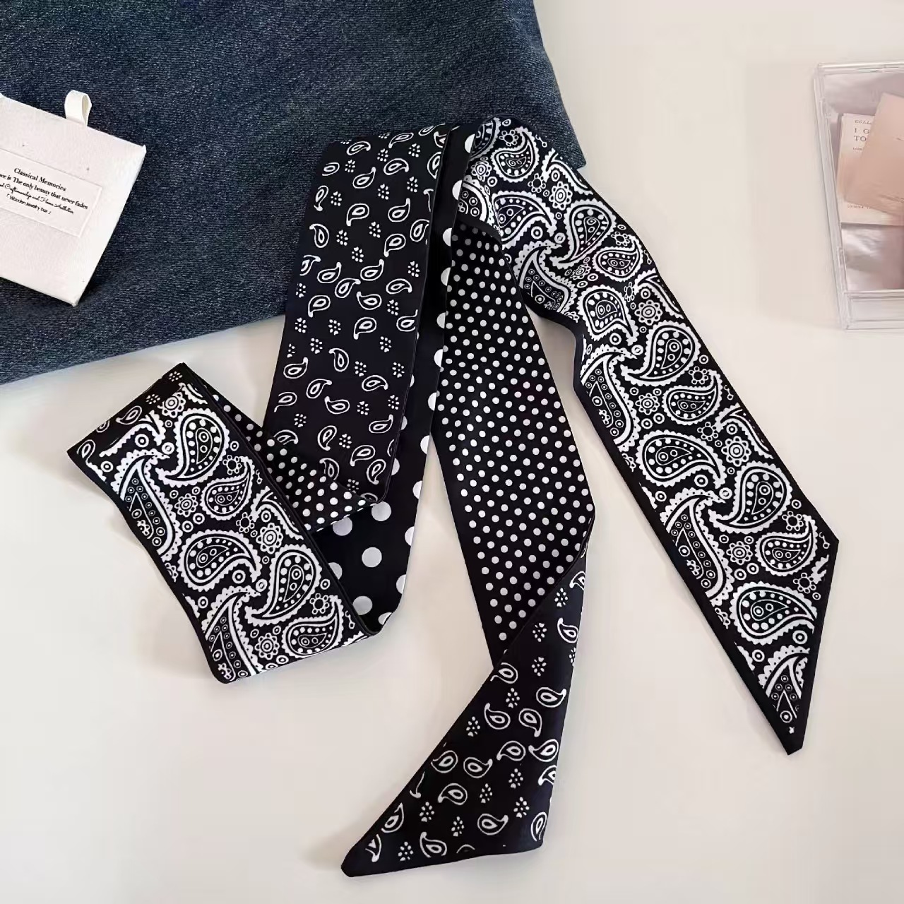 色丁缎面腰果花丝巾发带多功能扎发绑包飘带装饰百搭腰带衬衫领巾