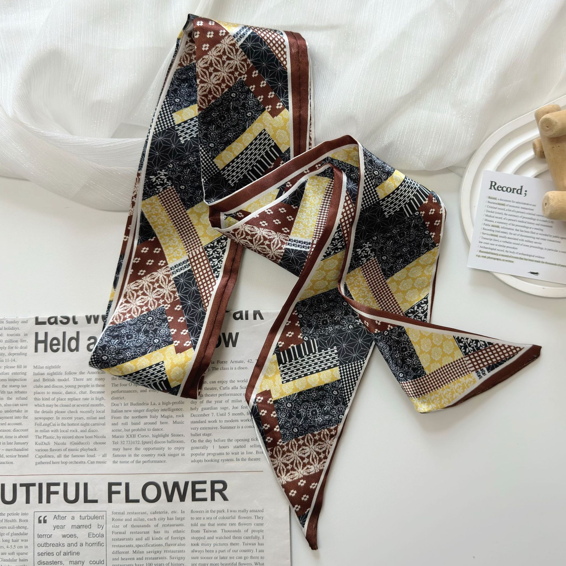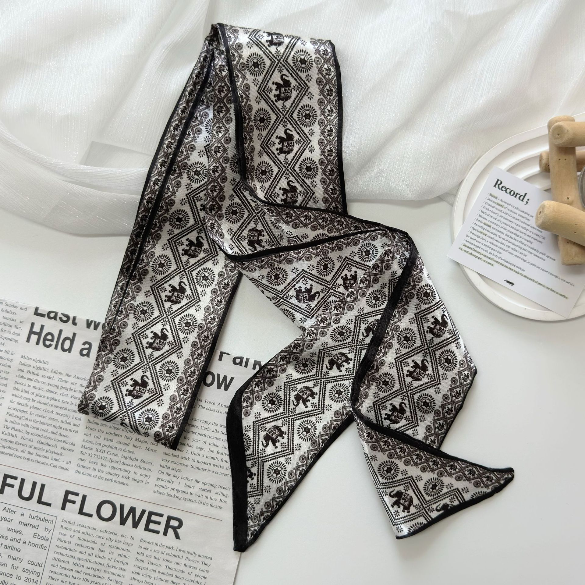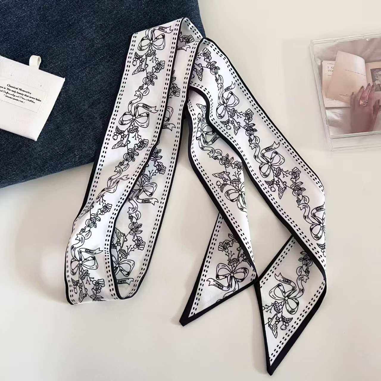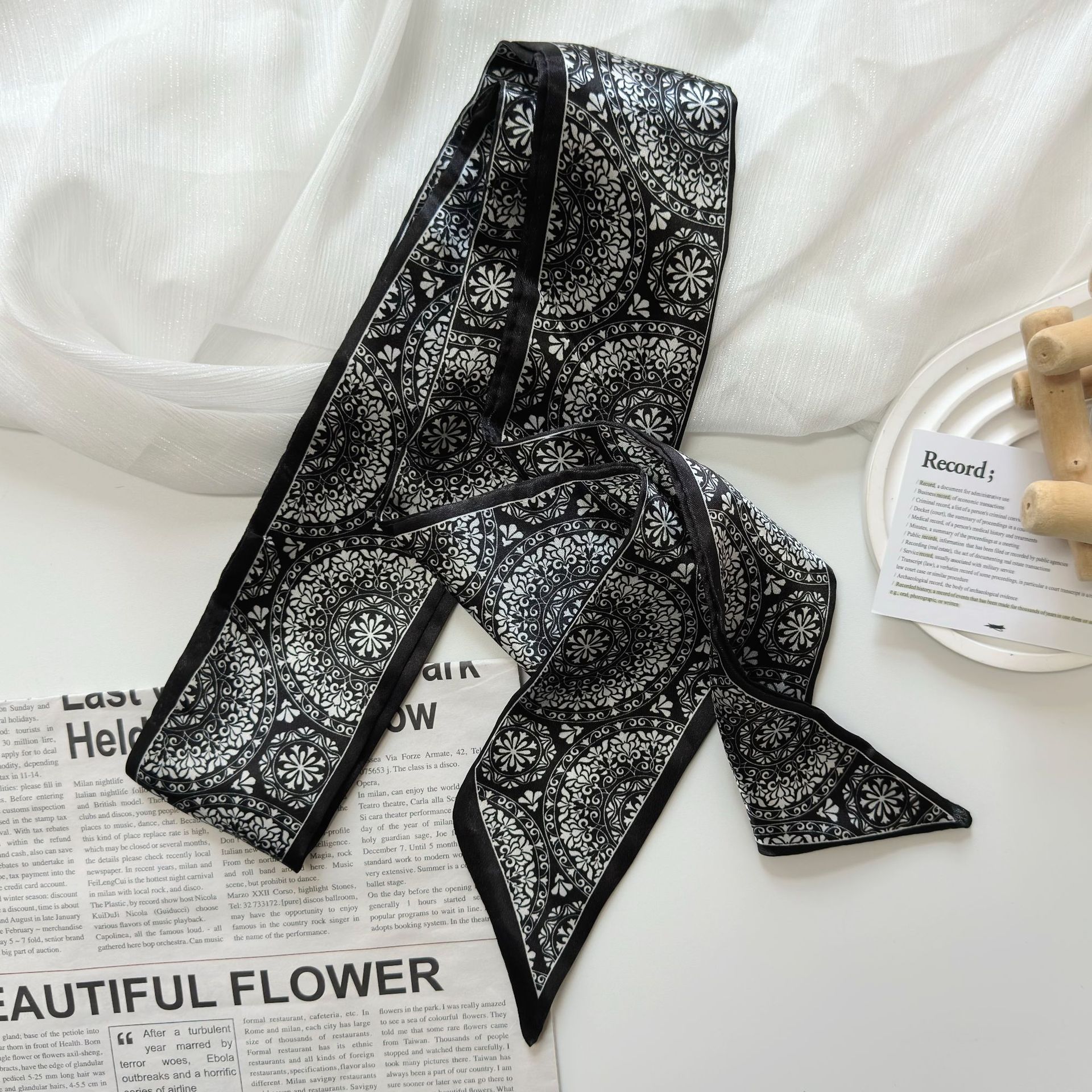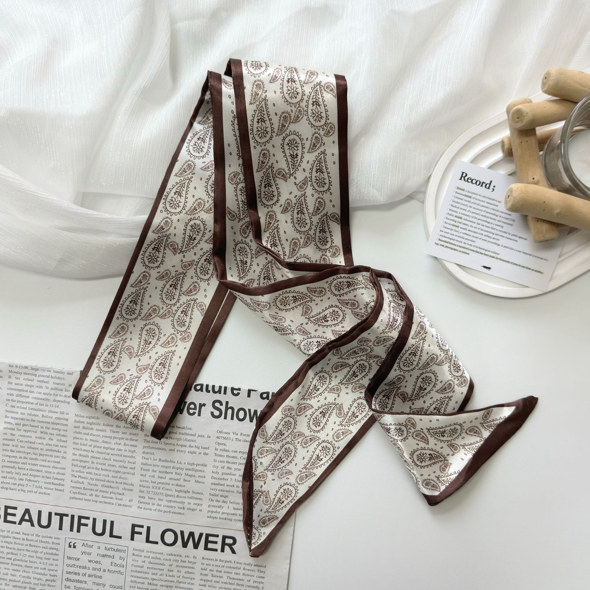色丁缎面腰果花丝巾发带多功能扎发绑包飘带装饰百搭腰带衬衫领巾