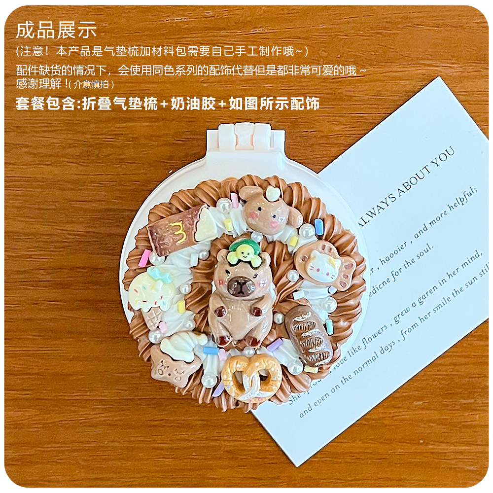 儿童手工diy奶油胶气垫梳子 材料包制作折叠镜梳一体女孩益智玩具