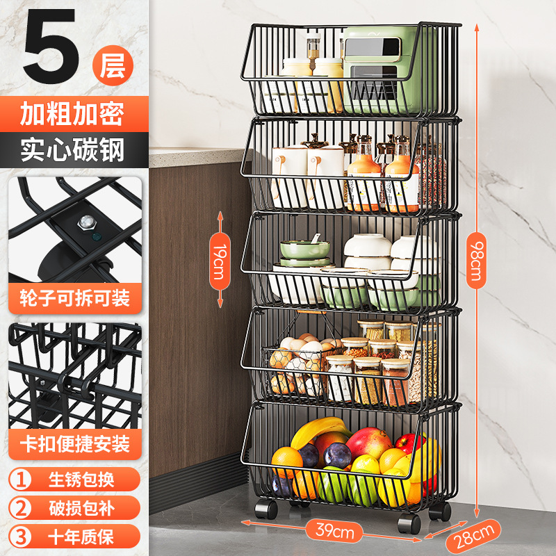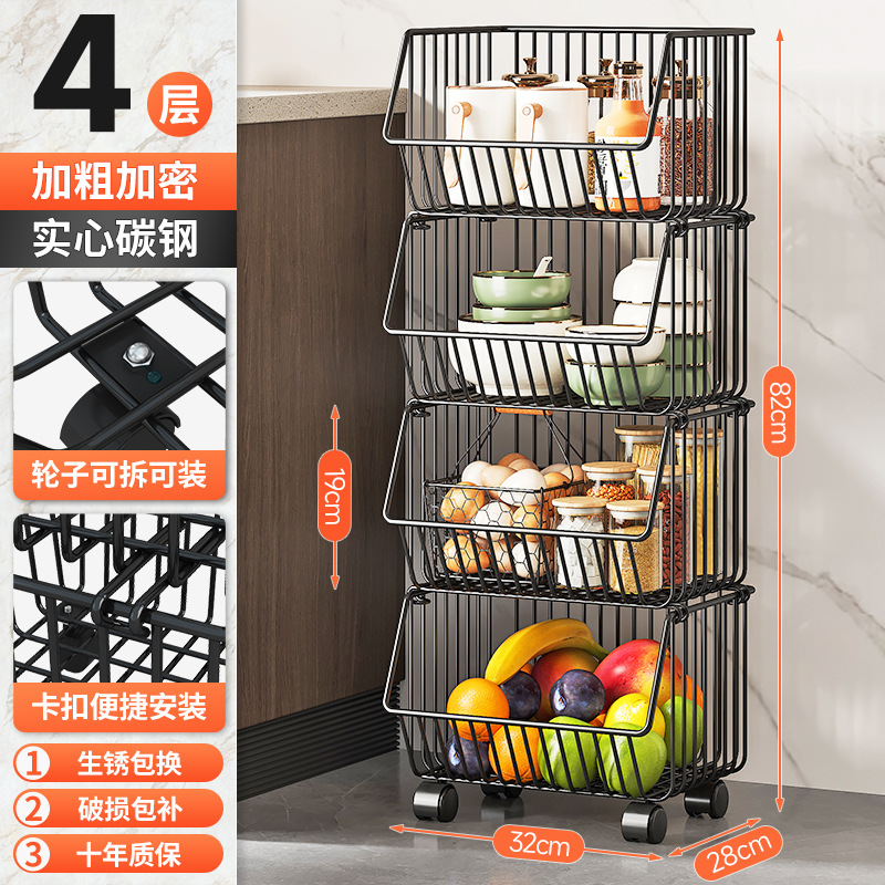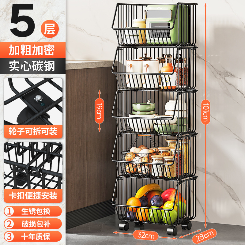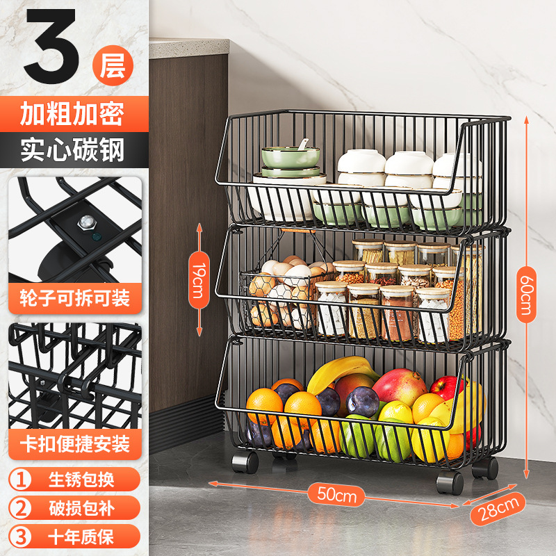 厨房蔬菜置物架水果收纳架多功能手推车多层落地储物架收纳筐篮子