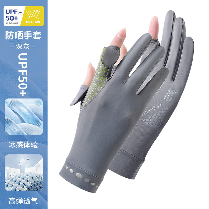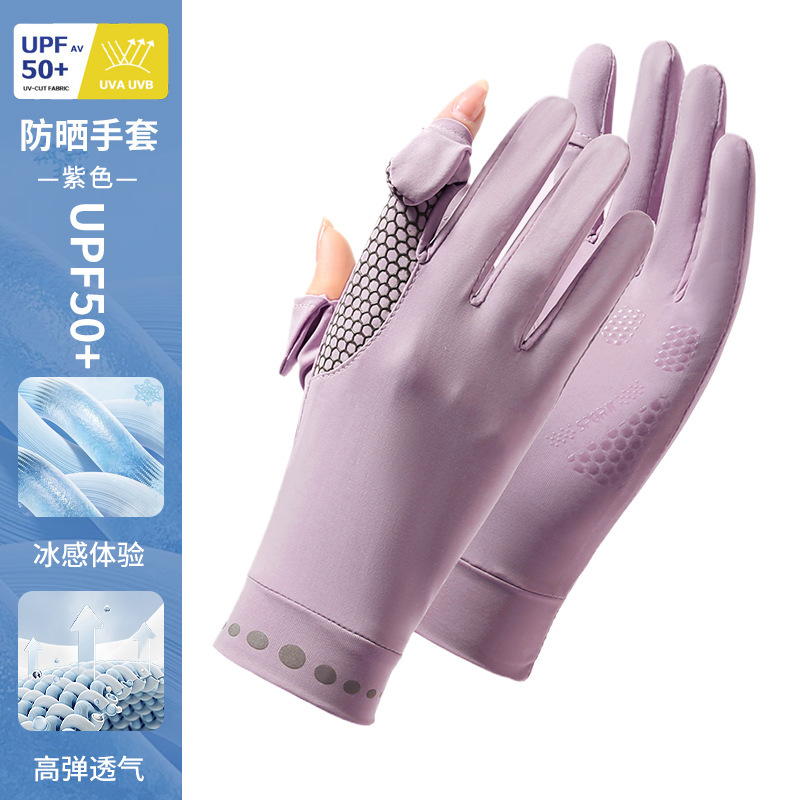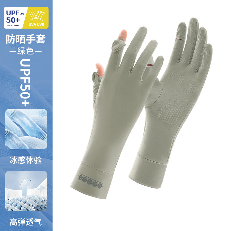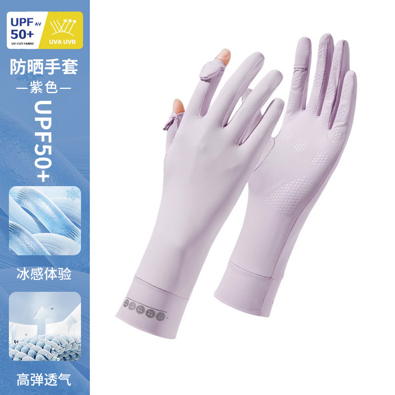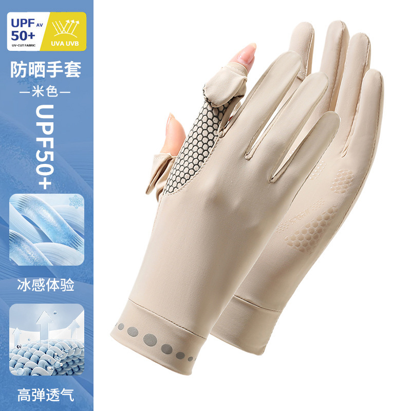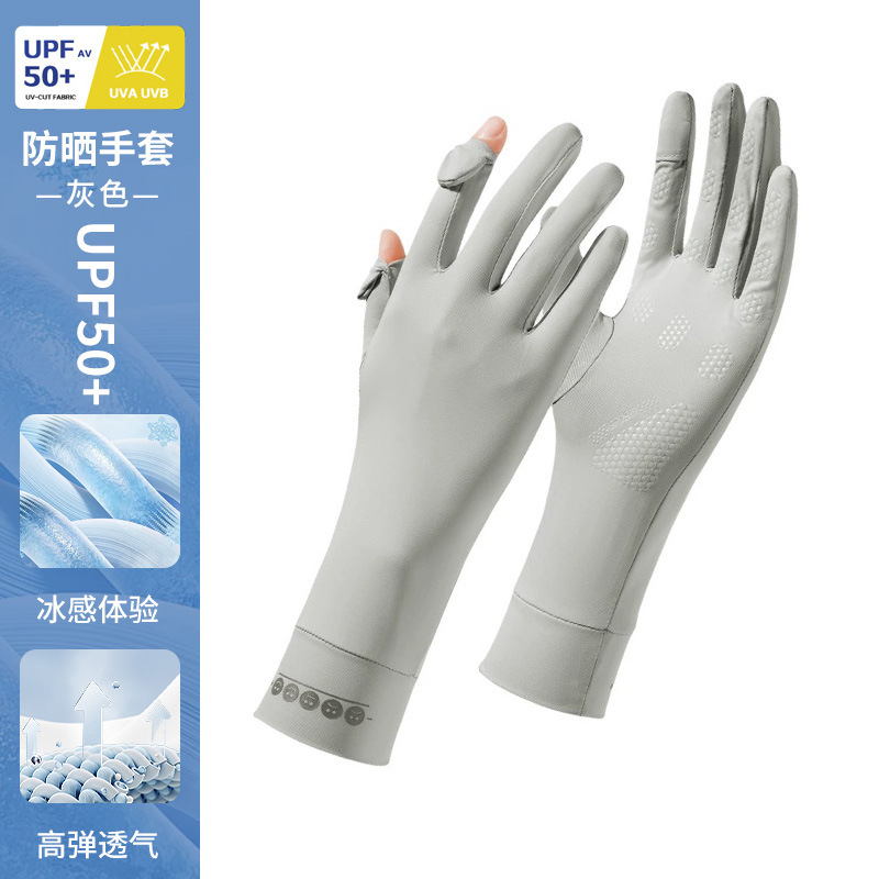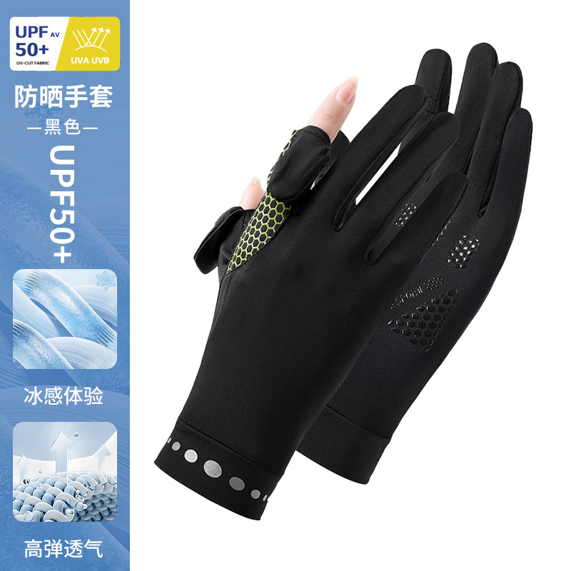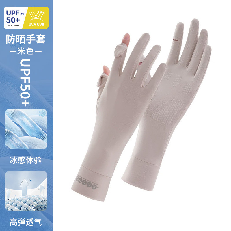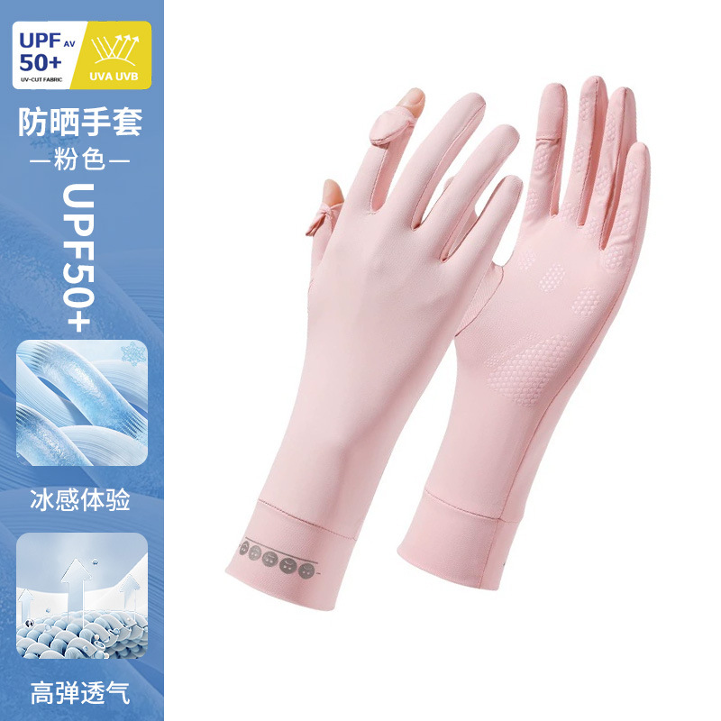 防晒手套女薄款夏季防紫外线加长骑行新款露指可触屏冰丝手套批发