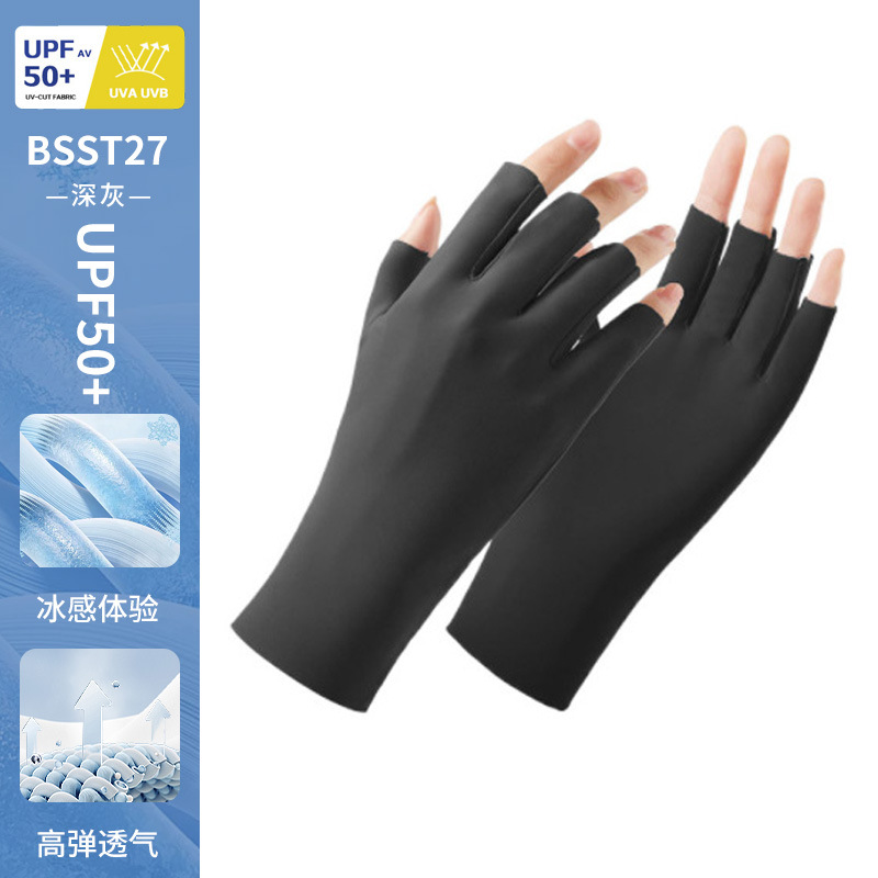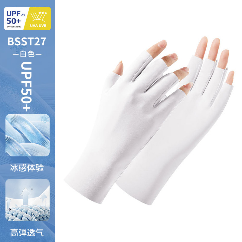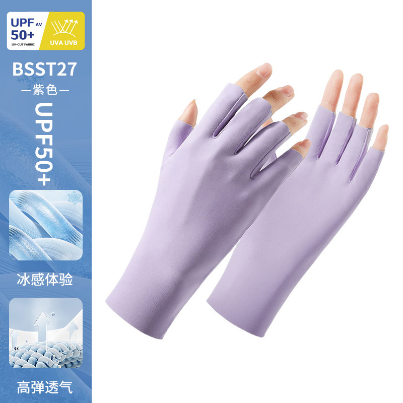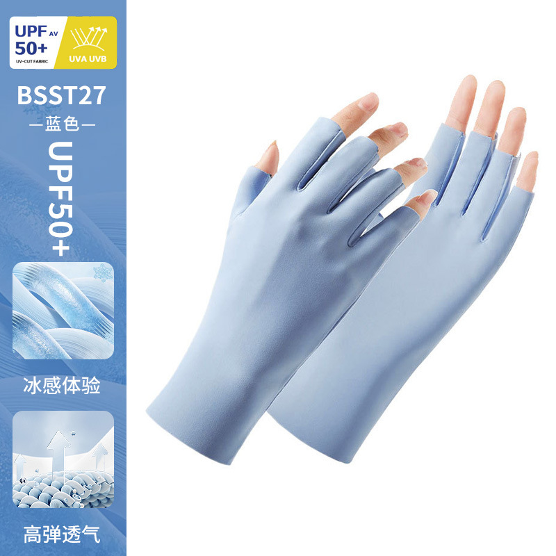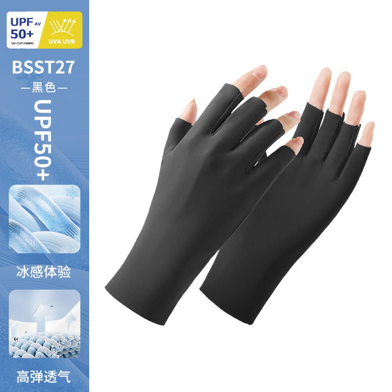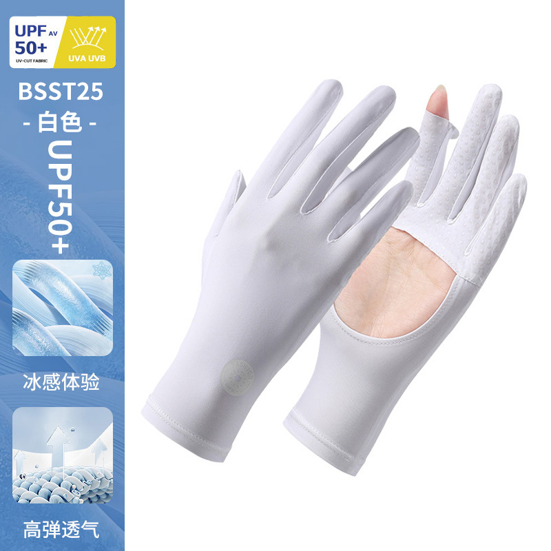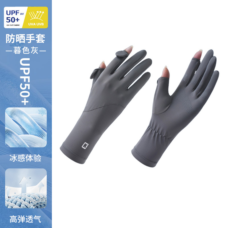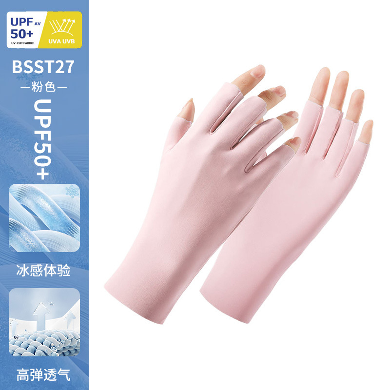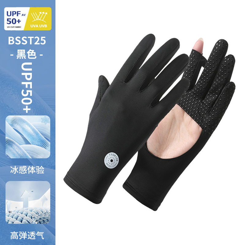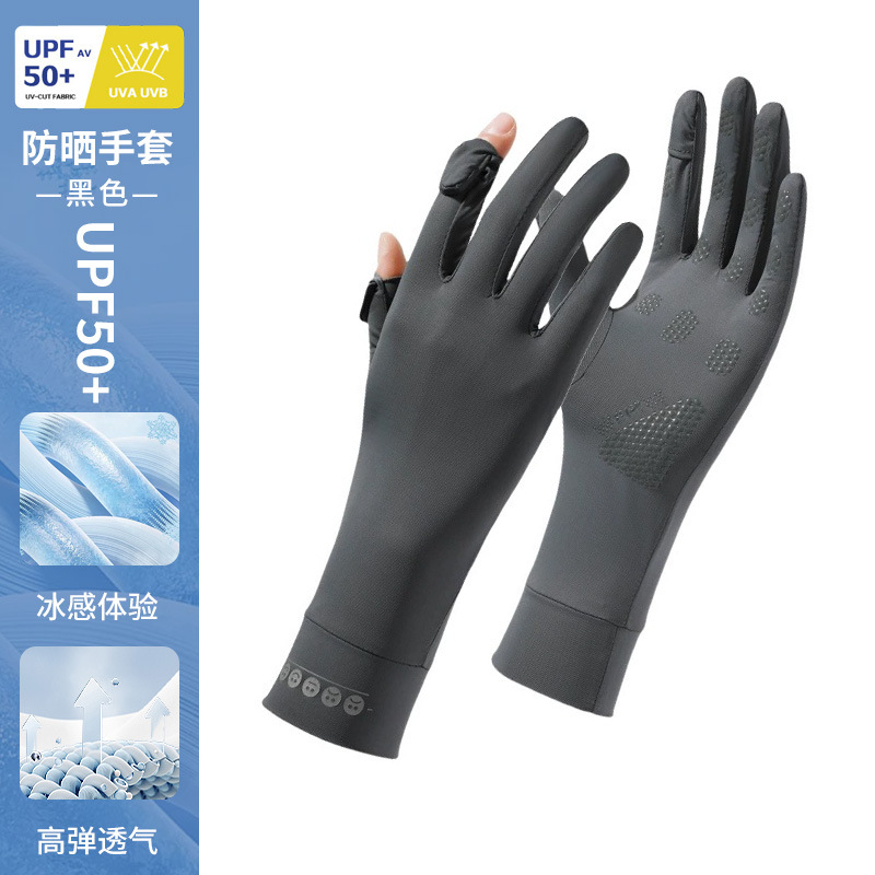防晒手套女薄款夏季防紫外线加长骑行新款露指可触屏冰丝手套批发
