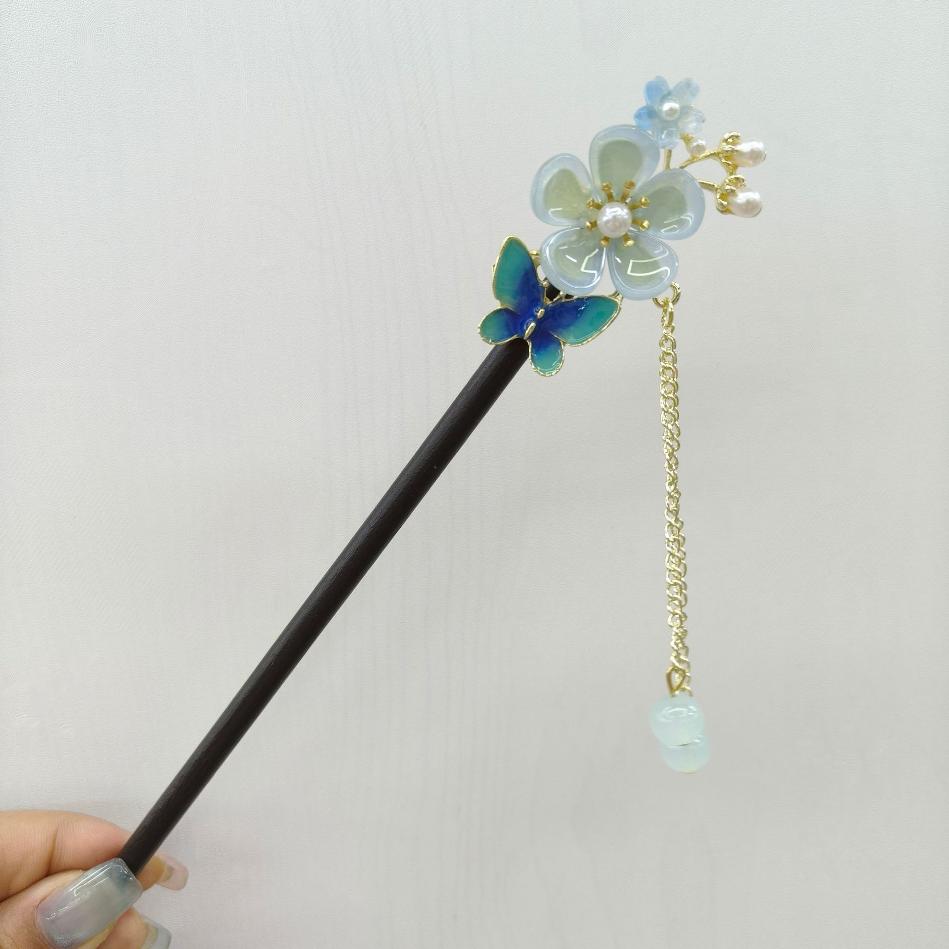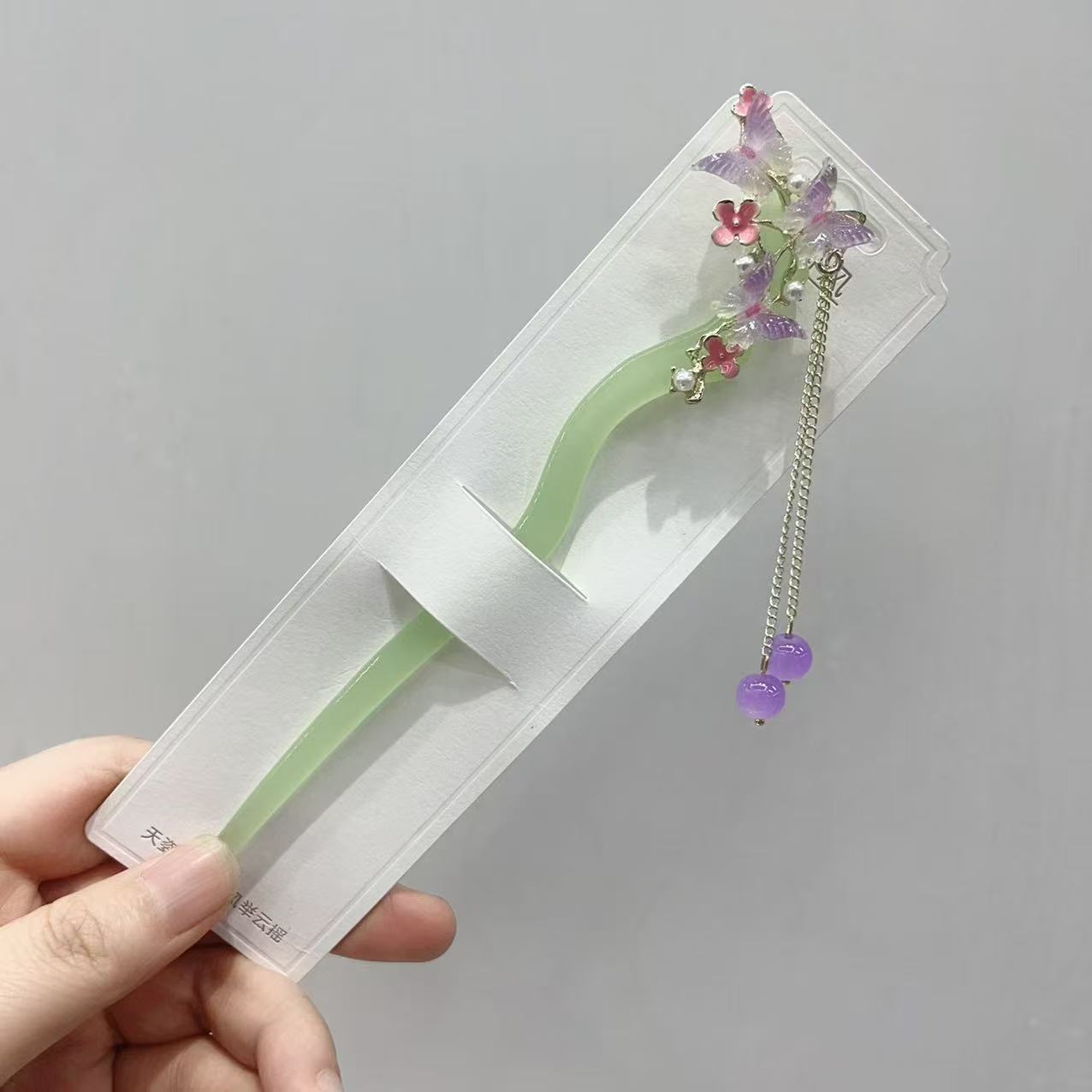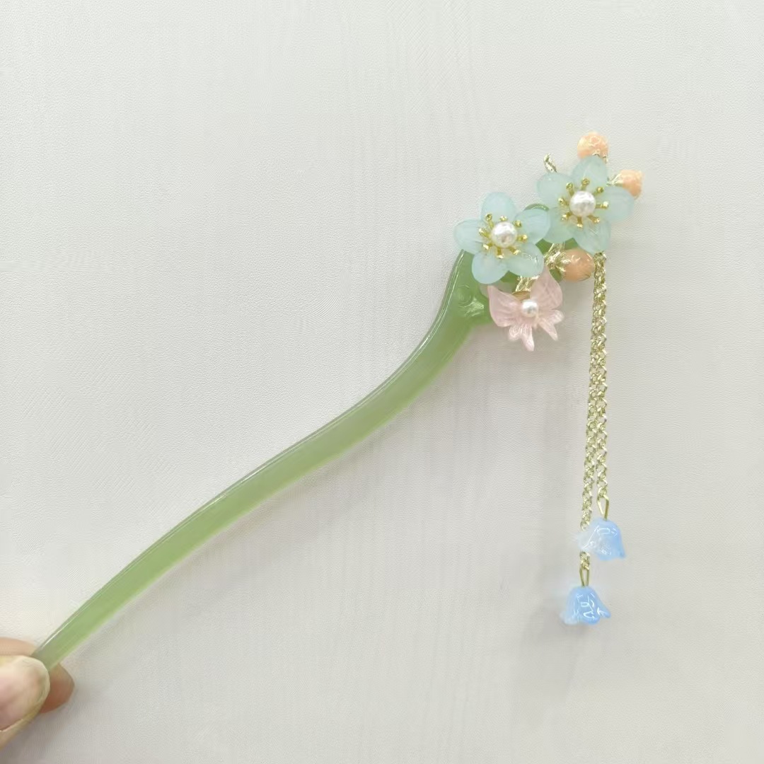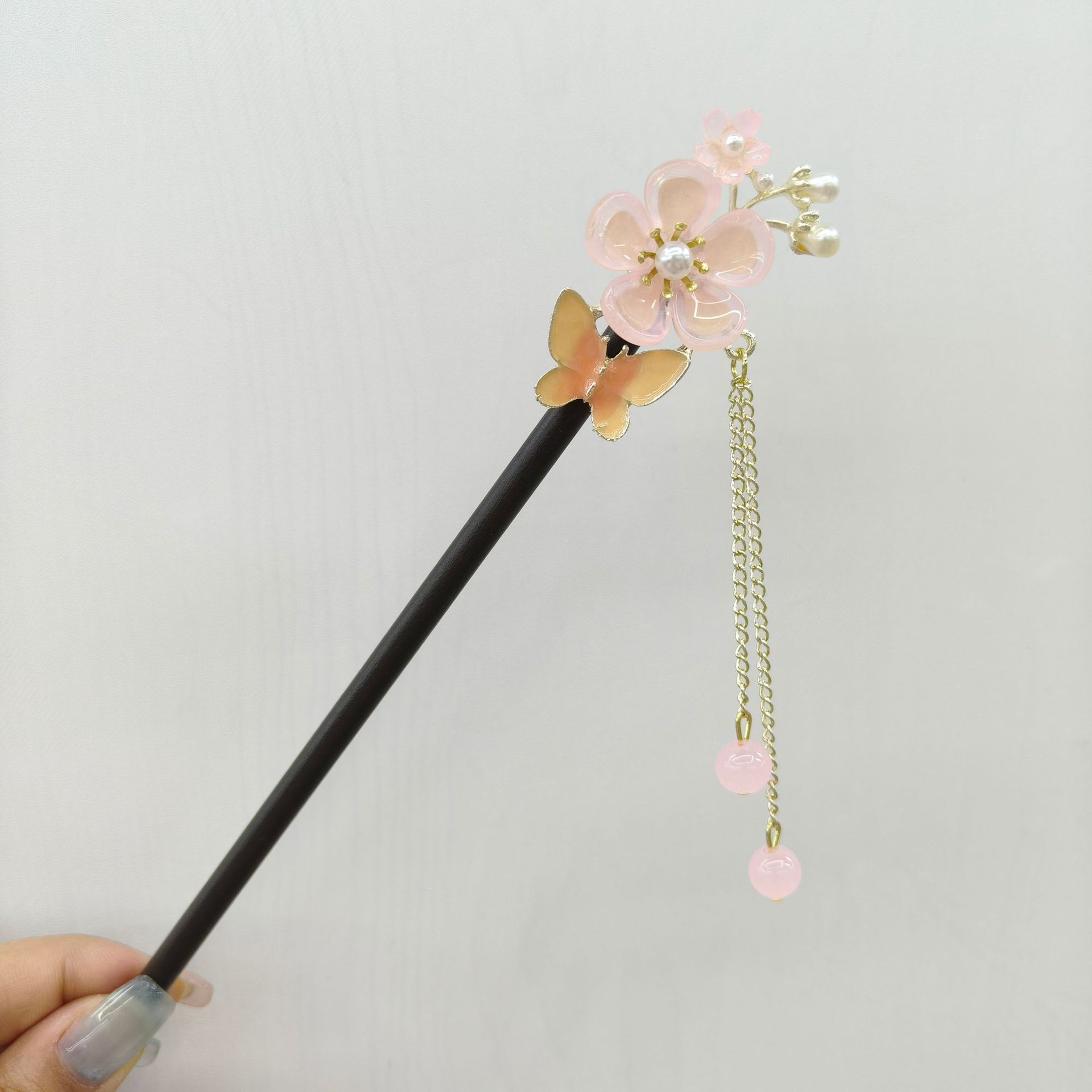 高级感古风发簪女新中式簪子盘发器粉色蝴蝶发钗汉服钗子头饰配饰