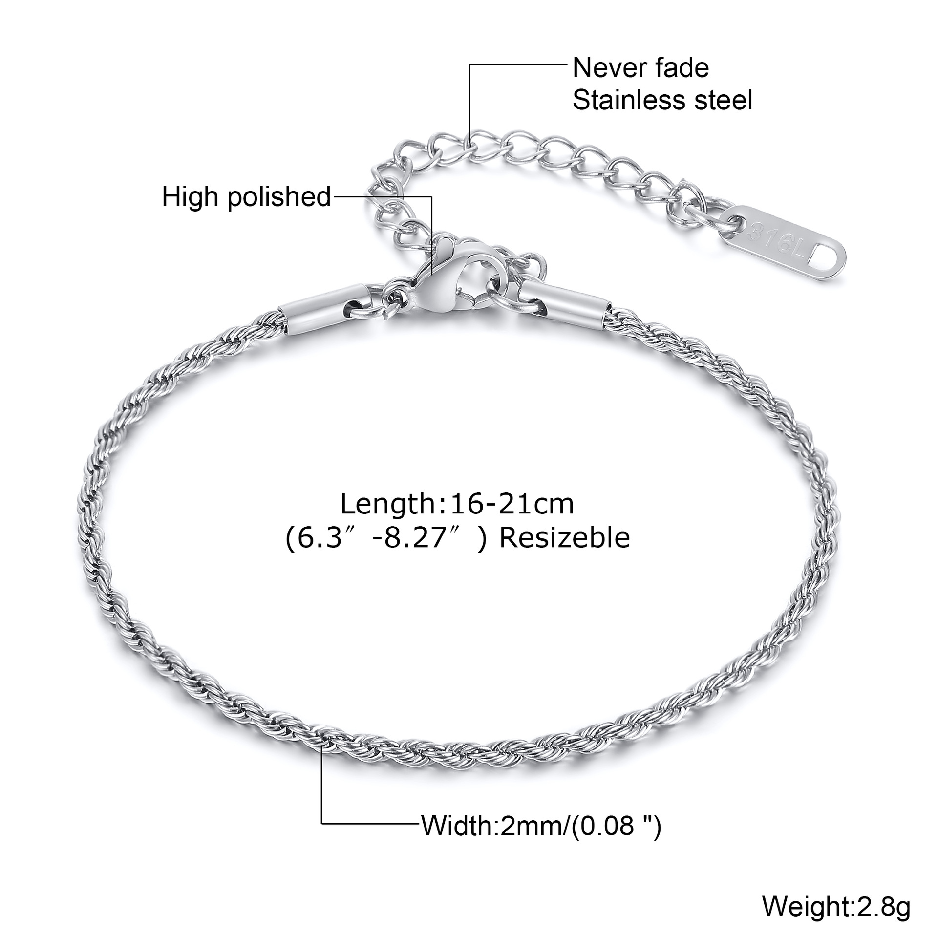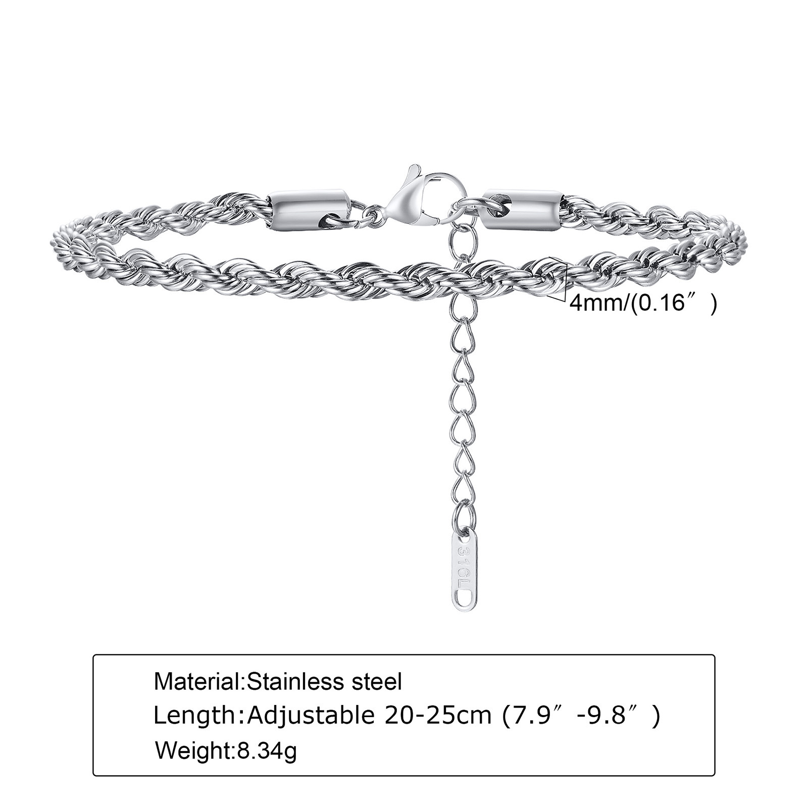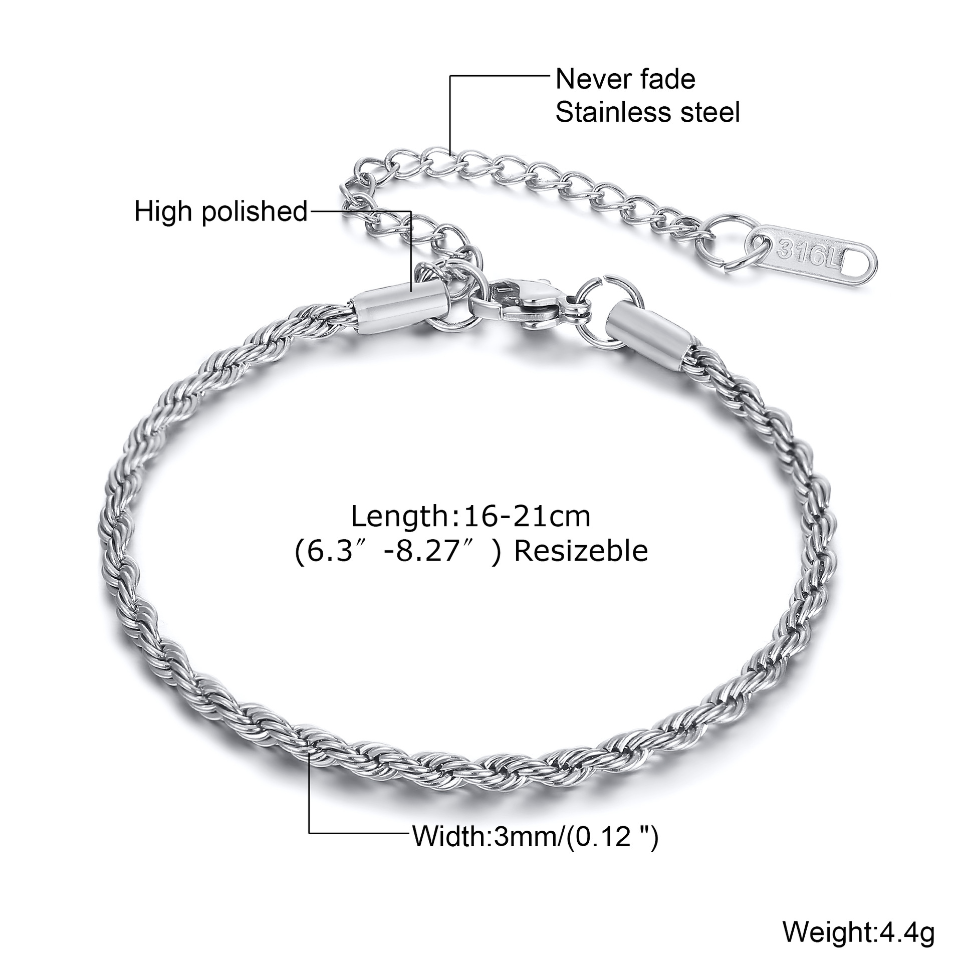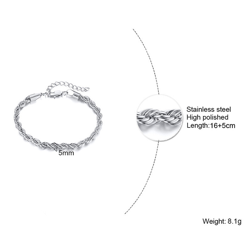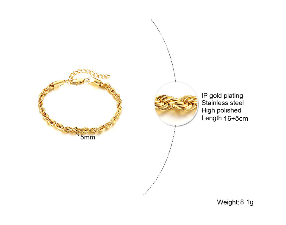 钛钢麻花手链 粗2/3/4/5/8MM 中性款女士镀金不锈钢跨境饰品批发