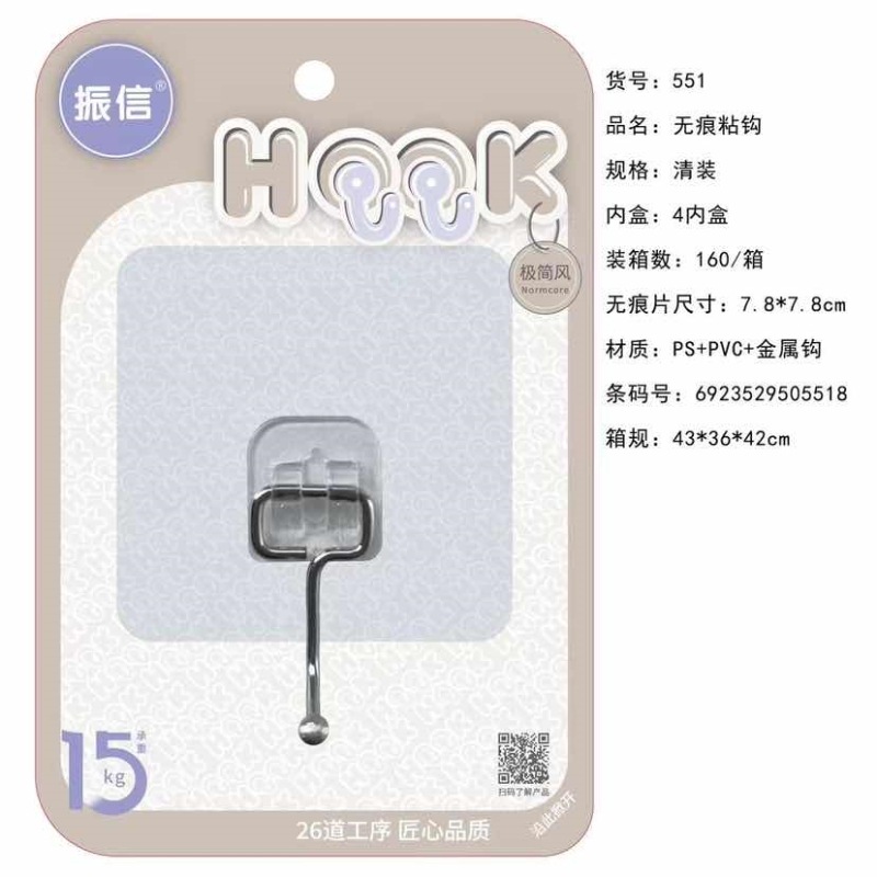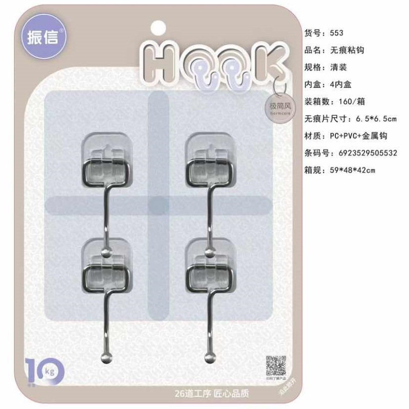 临沂百货上墙粘钩批发无痕粘钩透明装超市挂钩家用无痕挂钩