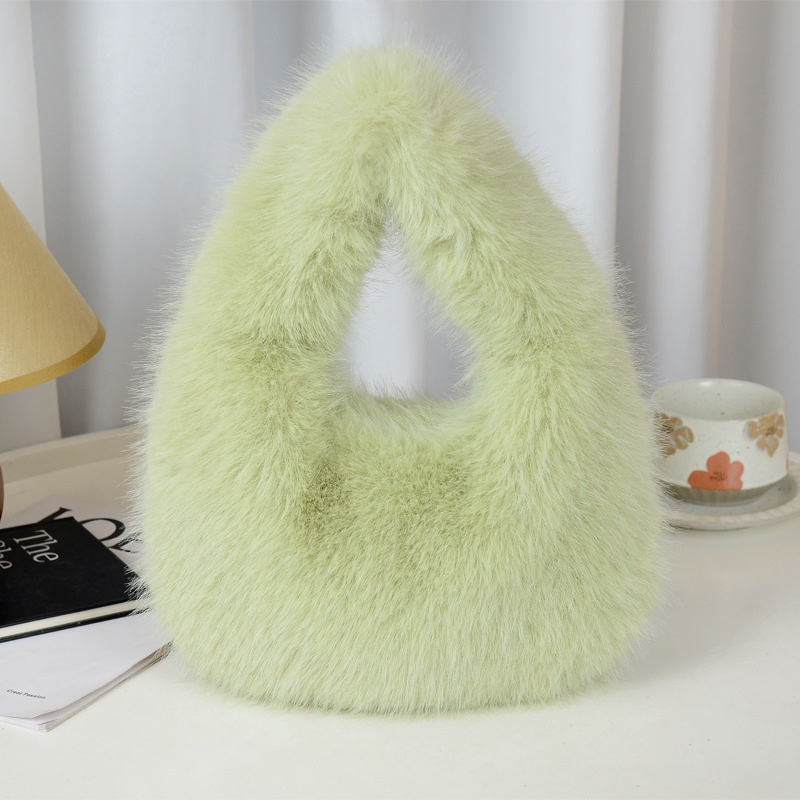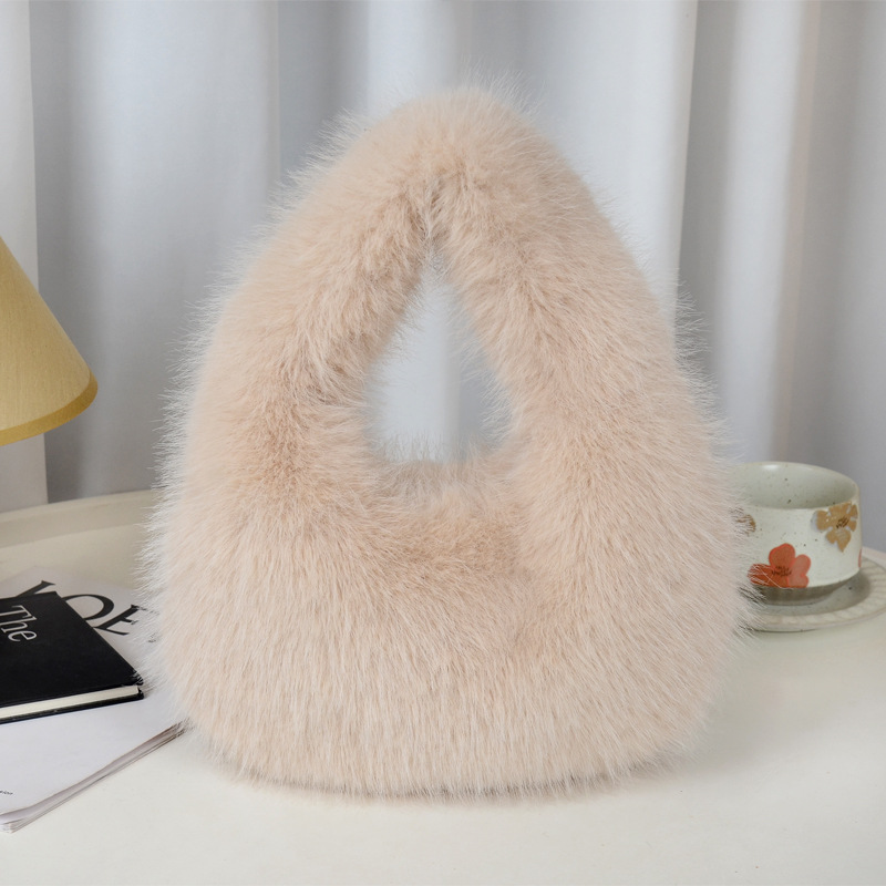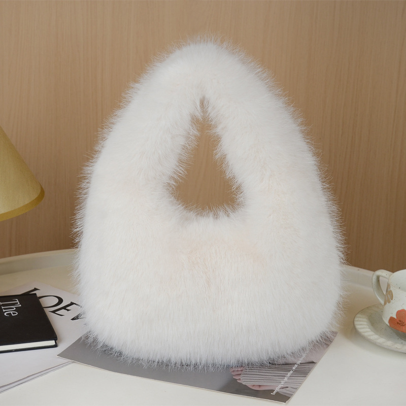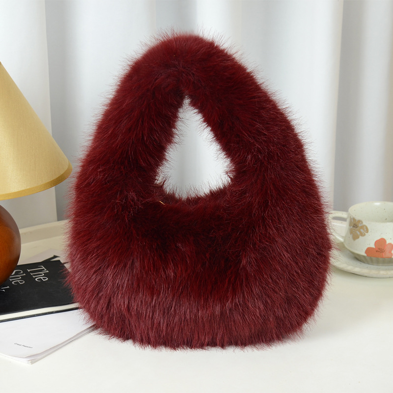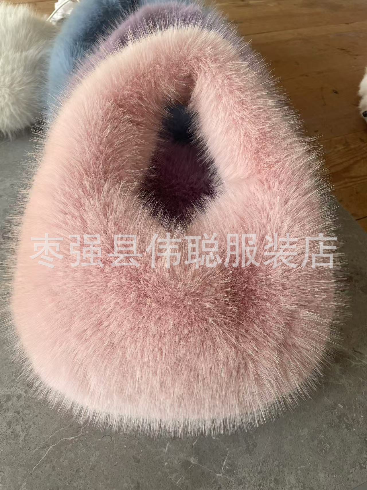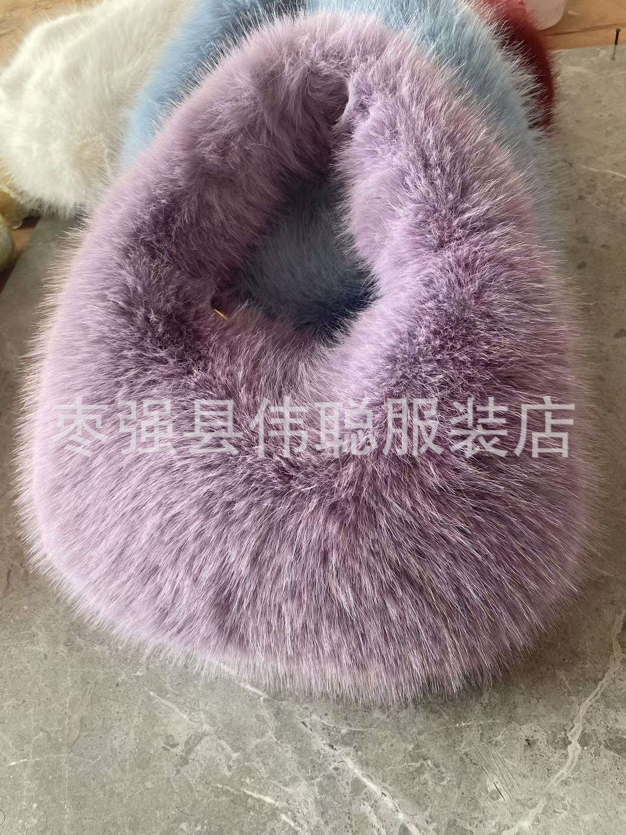 2025新款仿狐狸毛韩版可爱时尚饺子包网红款潮流手提狐狸毛包