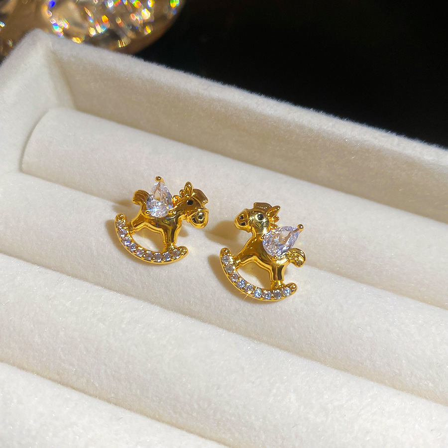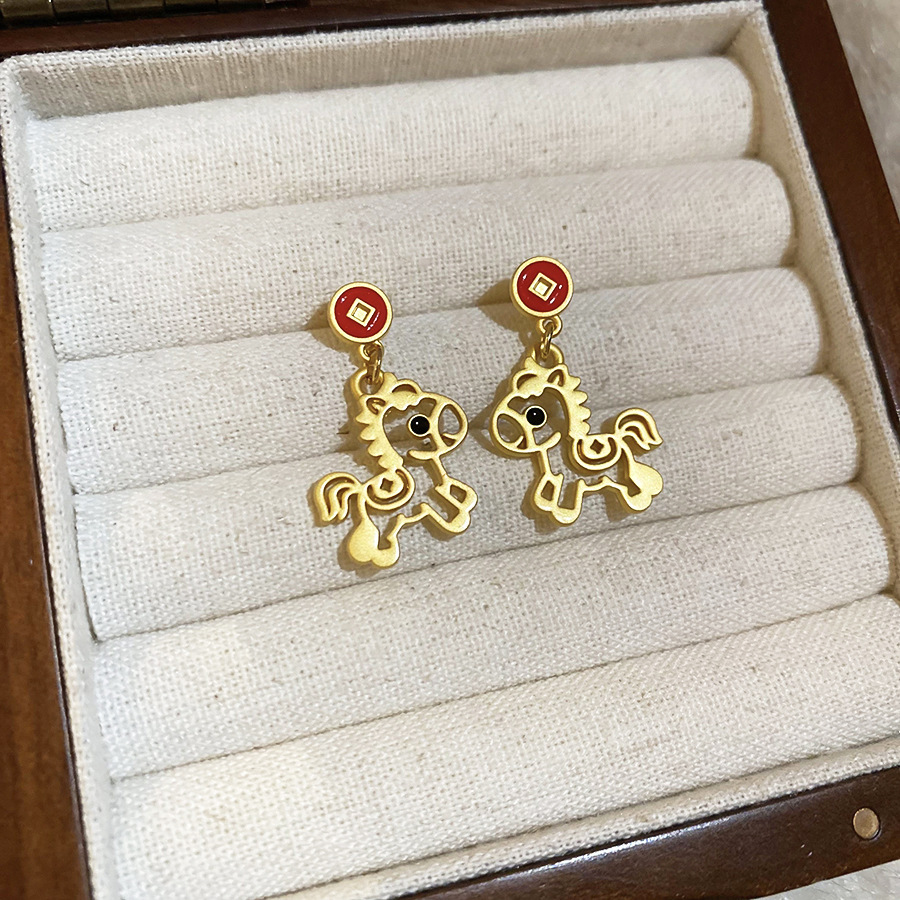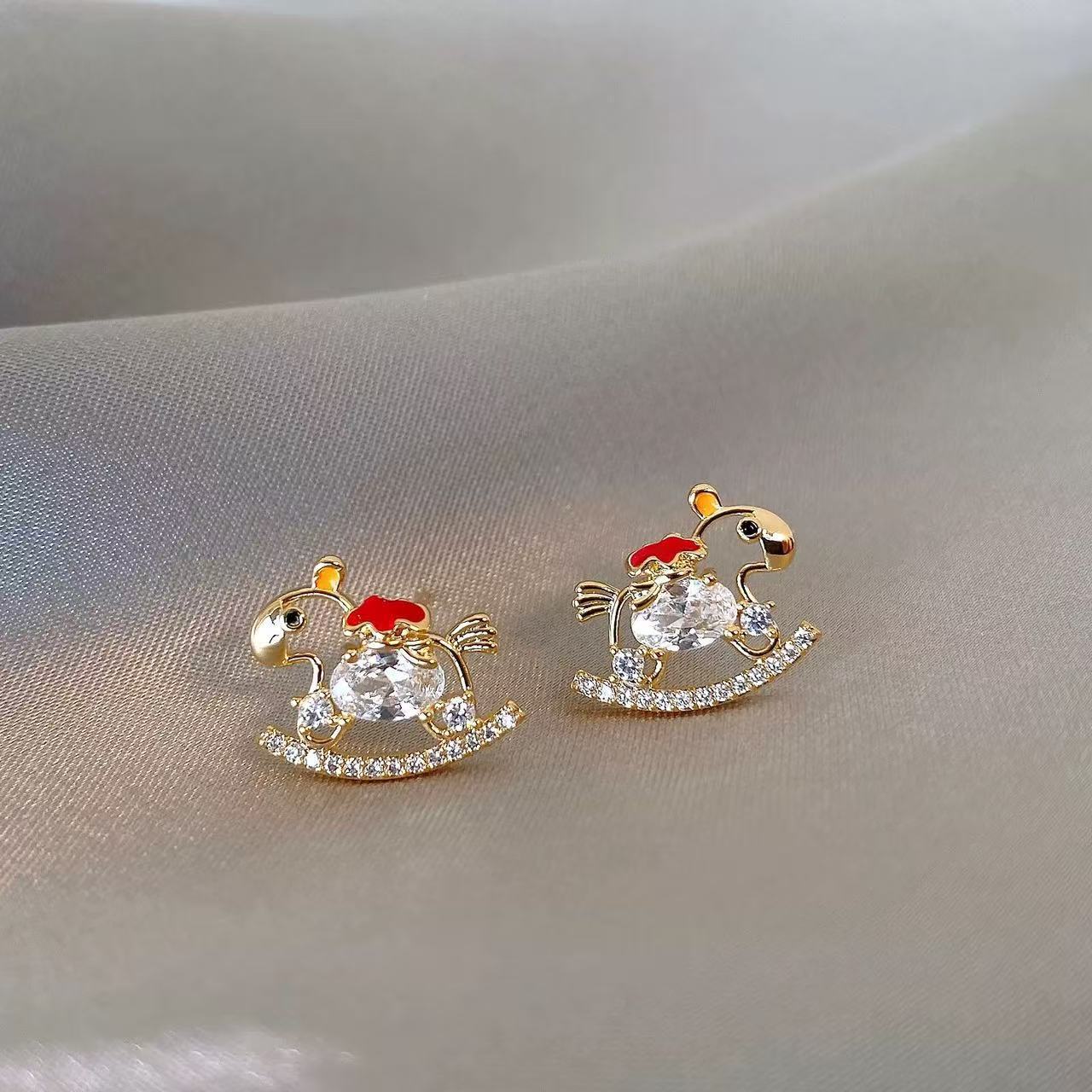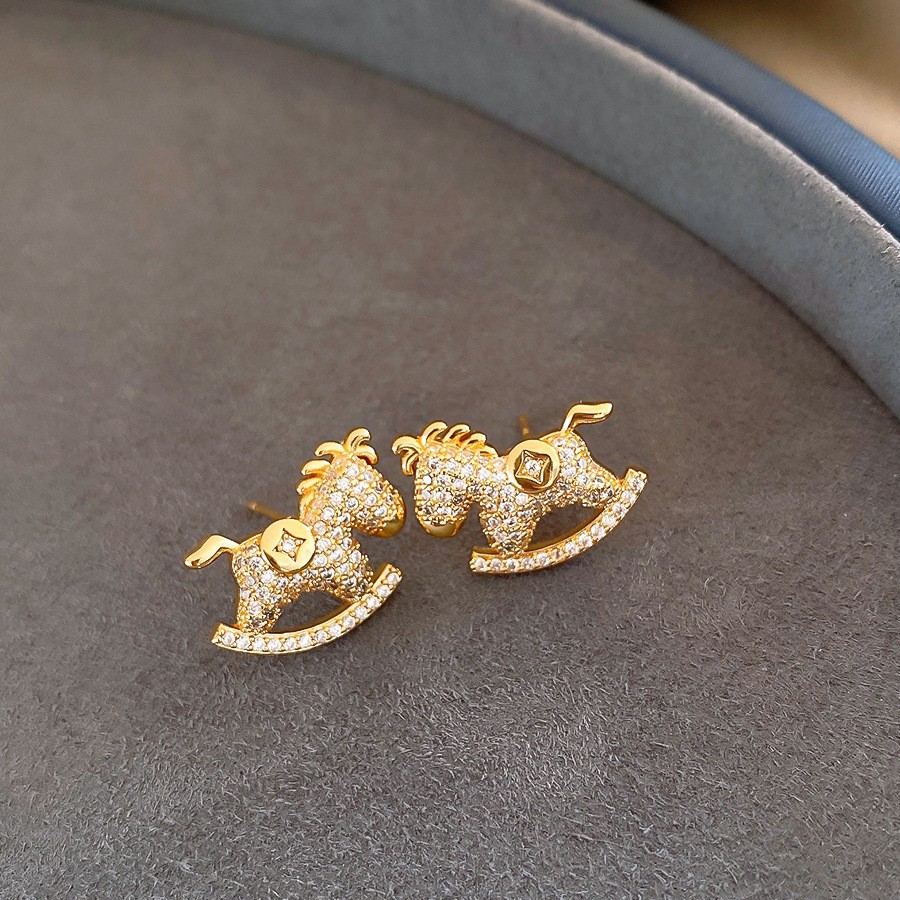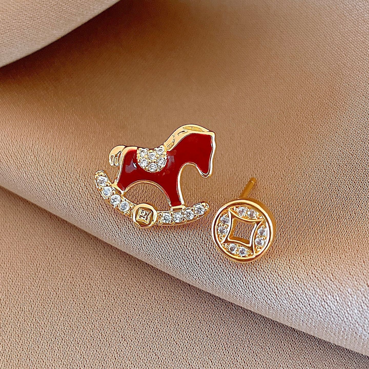 新中式复古镶钻锆石本命年小马耳环轻奢高级感耳钉时尚精致耳饰女