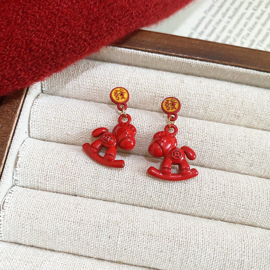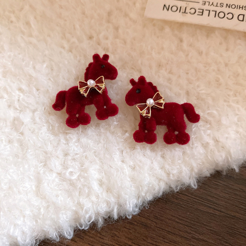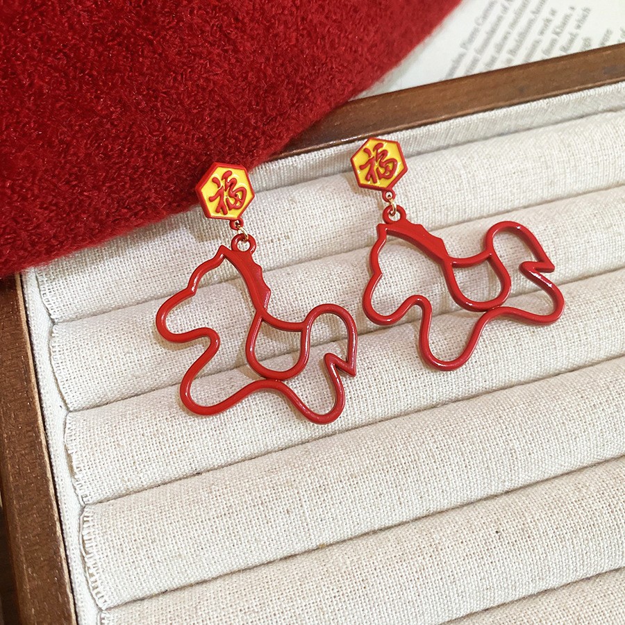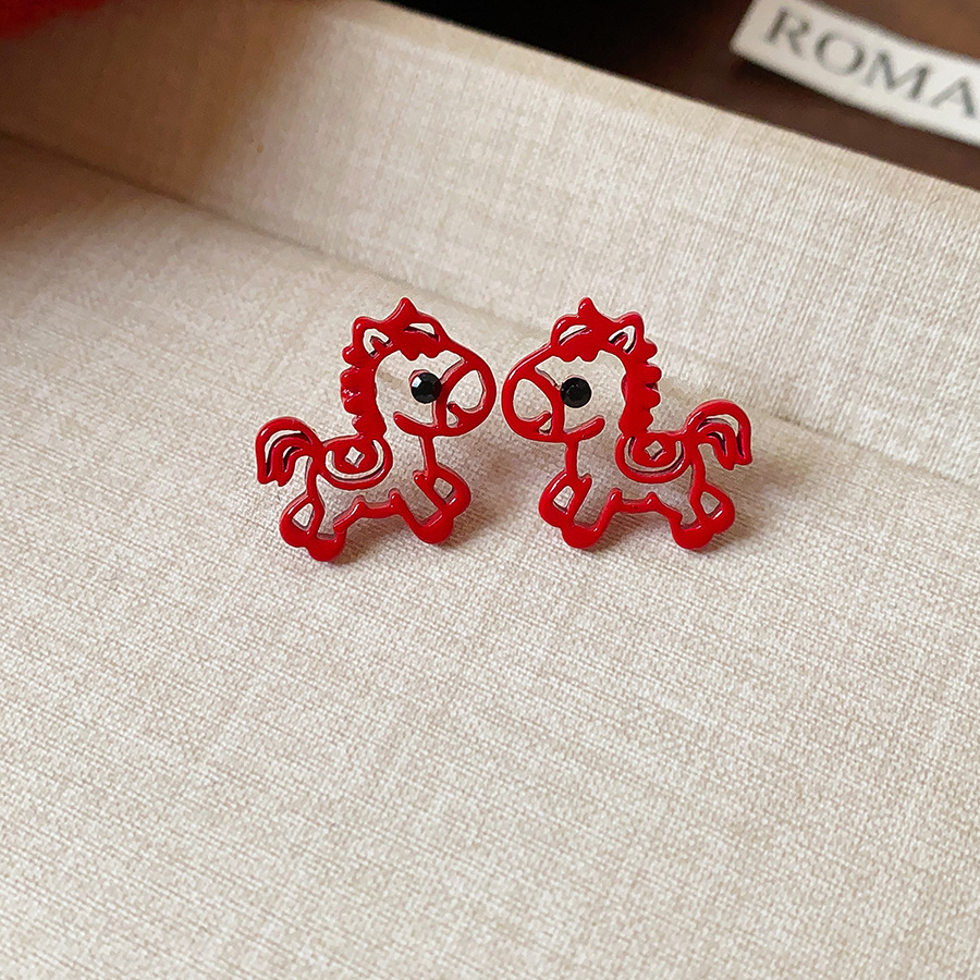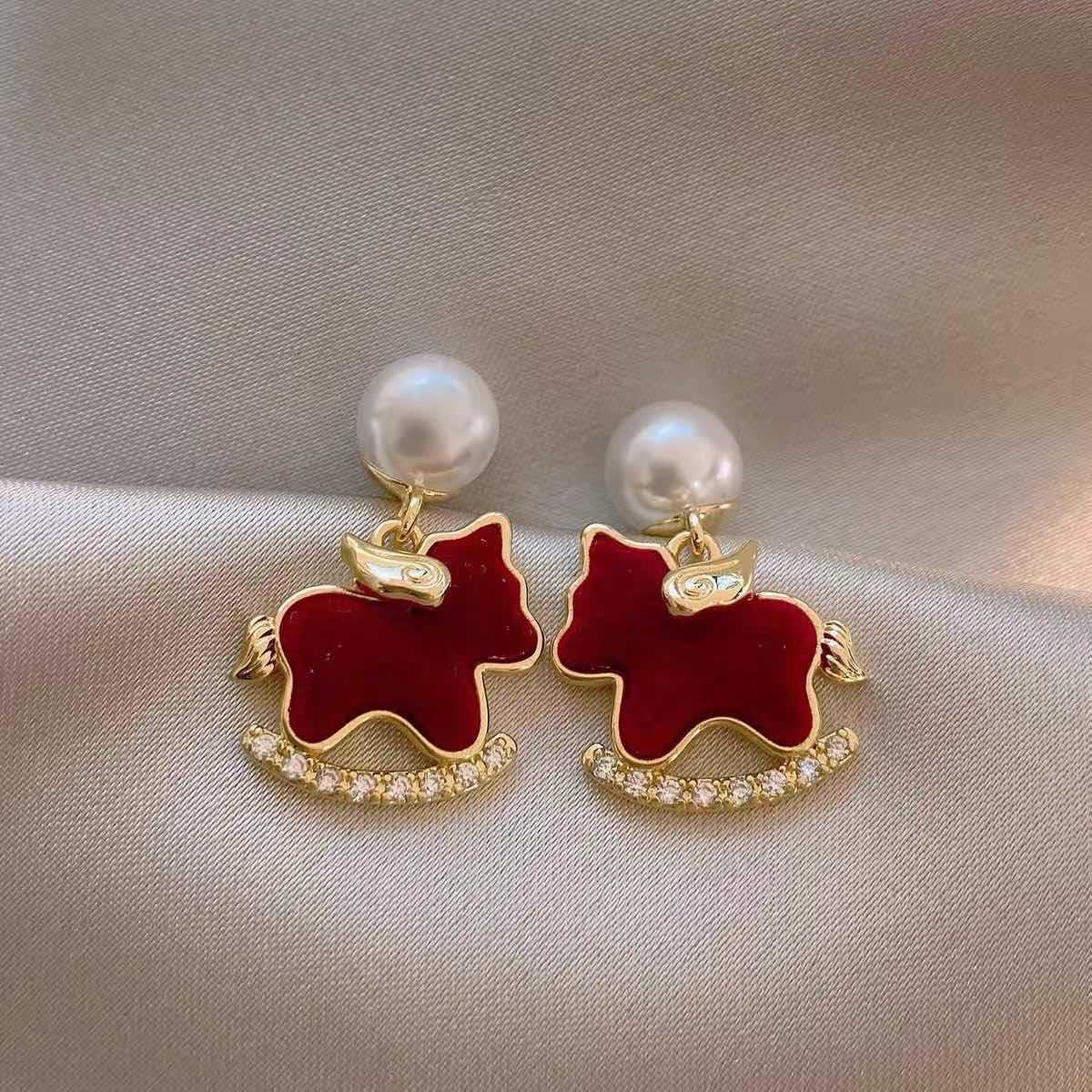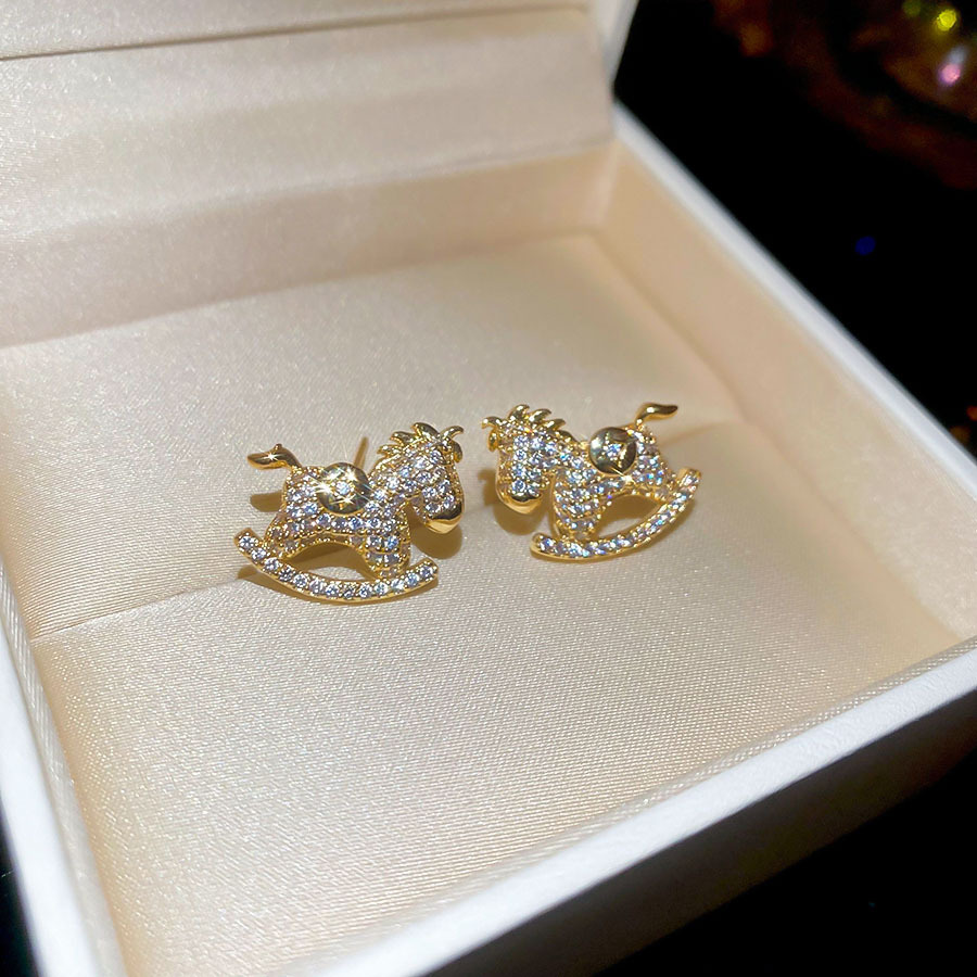 新中式复古镶钻锆石本命年小马耳环轻奢高级感耳钉时尚精致耳饰女