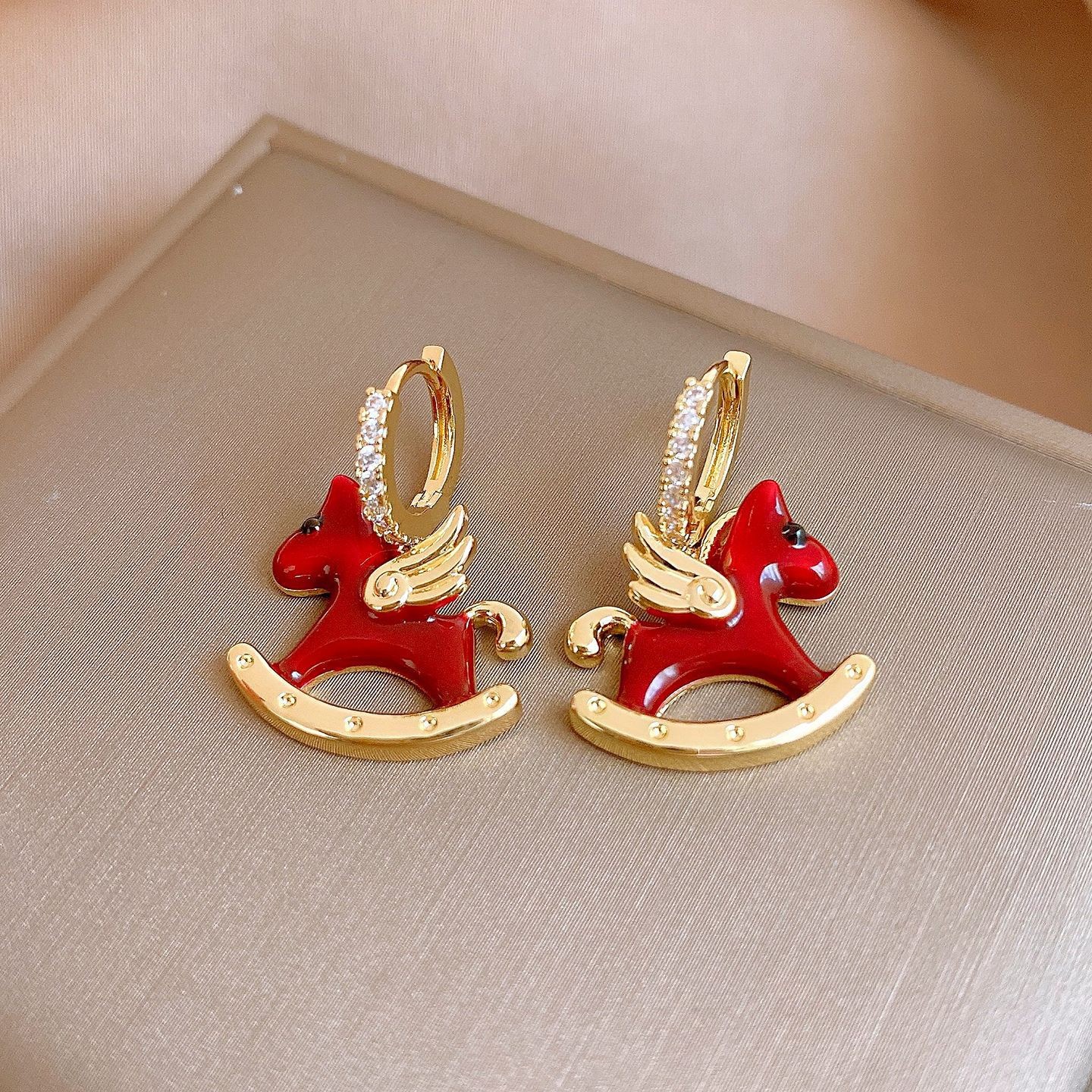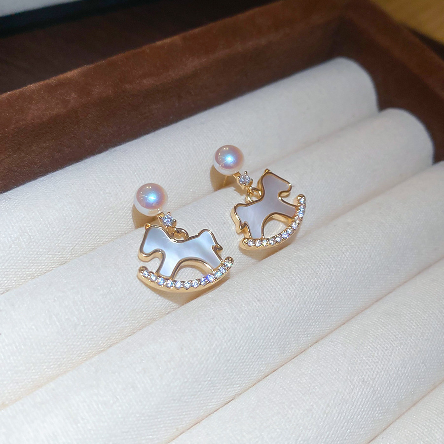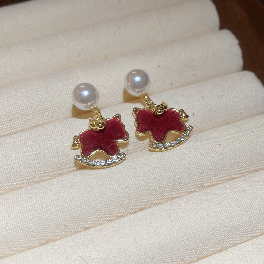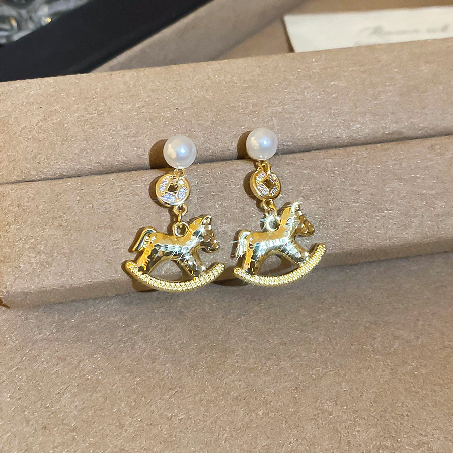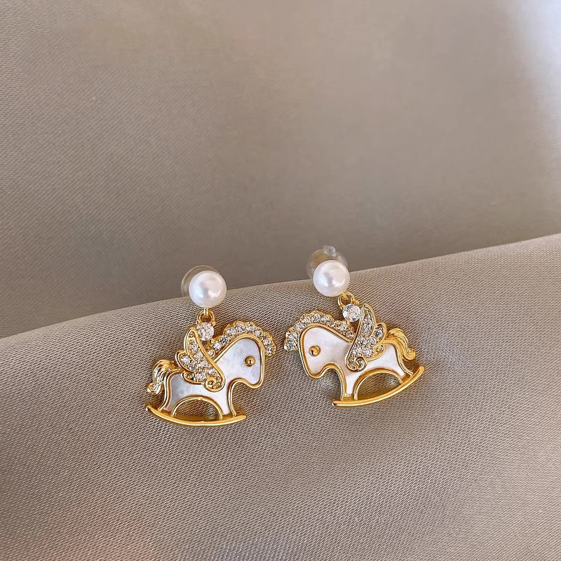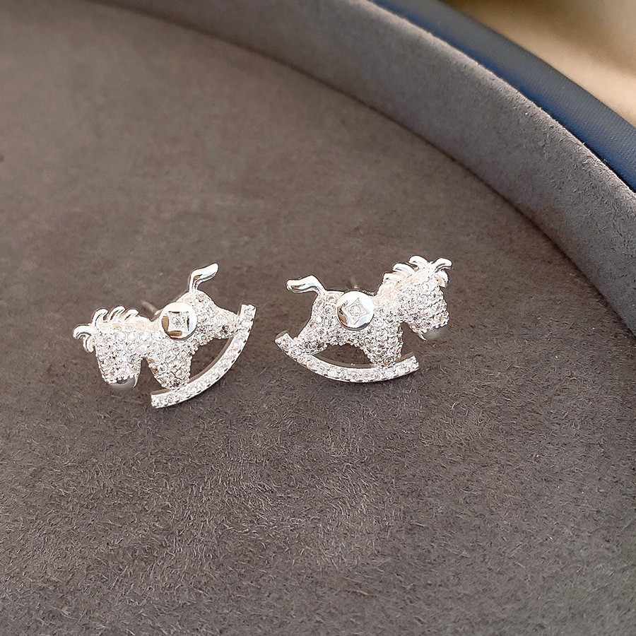 新中式复古镶钻锆石本命年小马耳环轻奢高级感耳钉时尚精致耳饰女