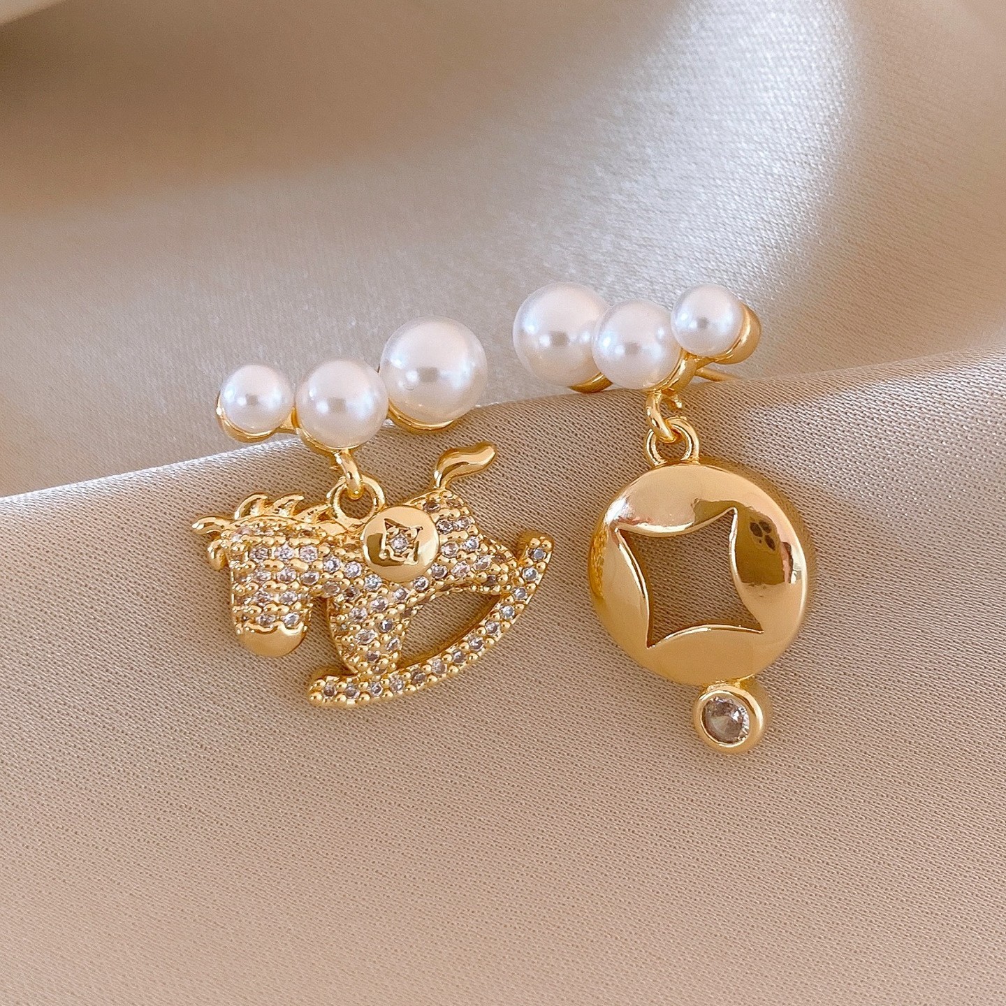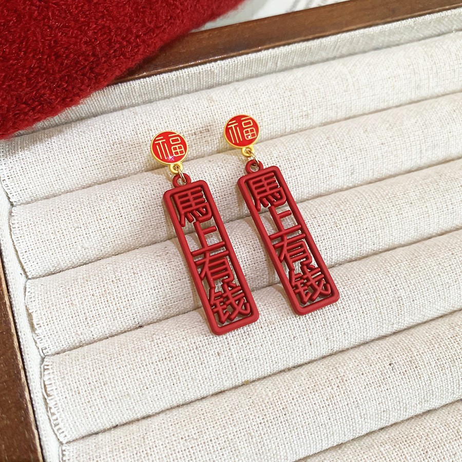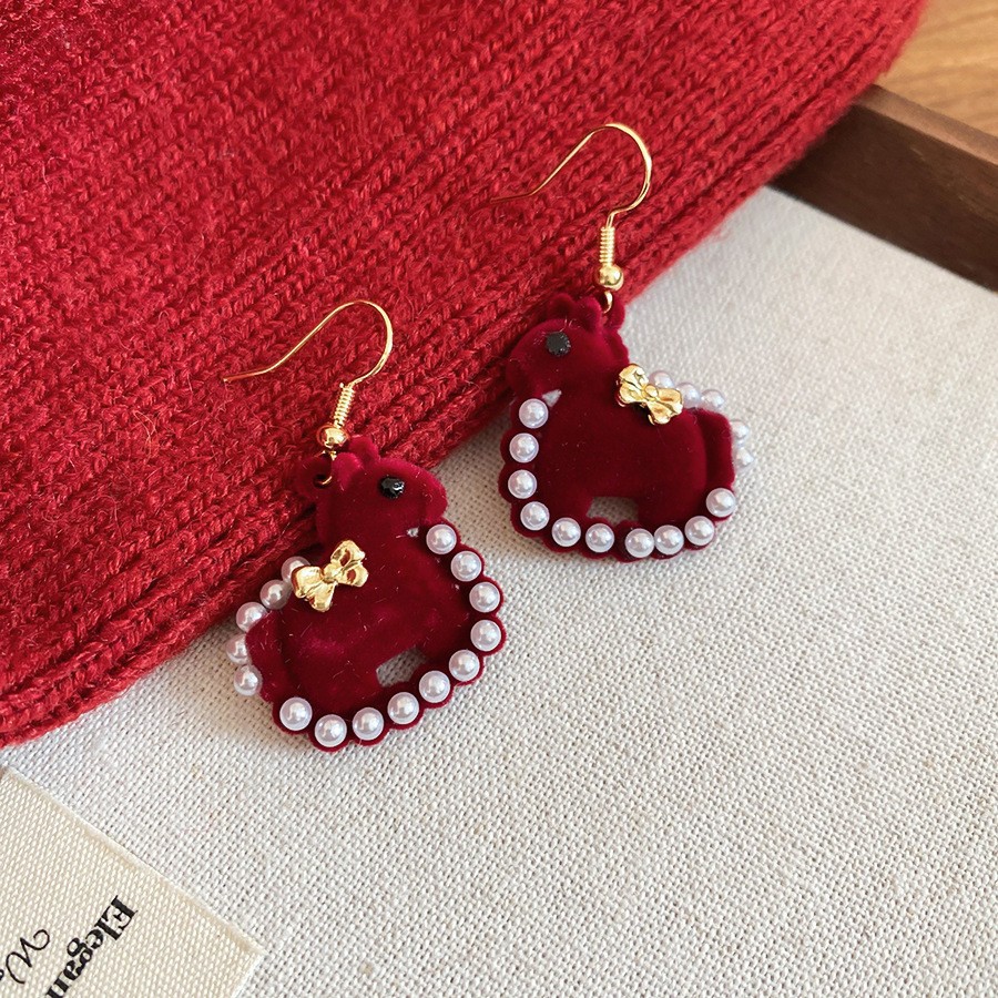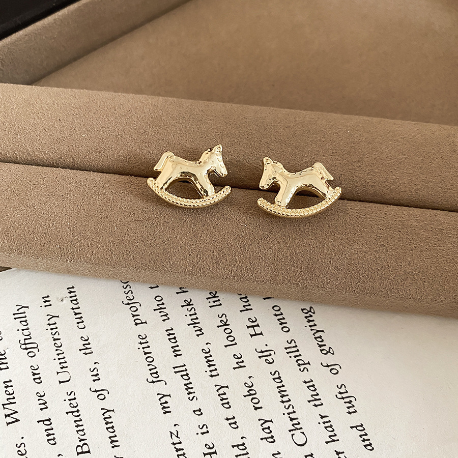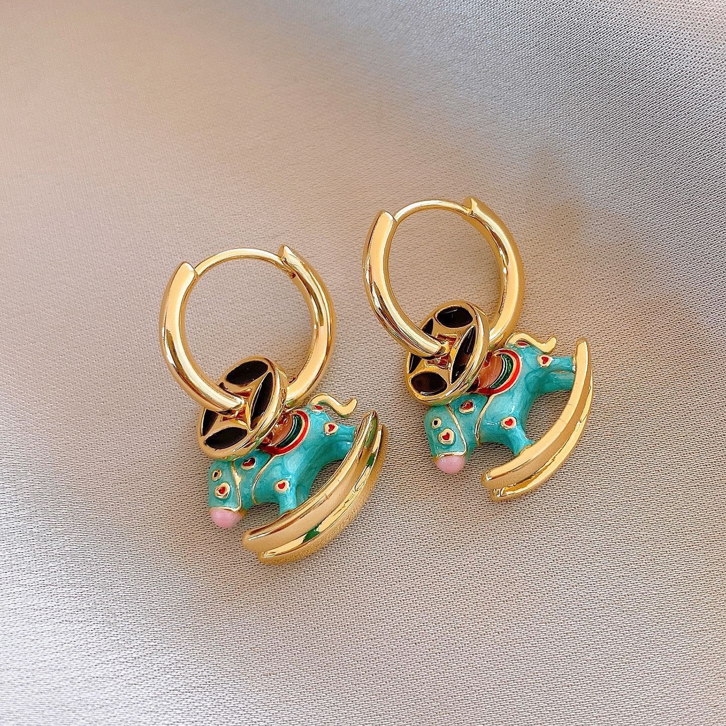 新中式复古镶钻锆石本命年小马耳环轻奢高级感耳钉时尚精致耳饰女