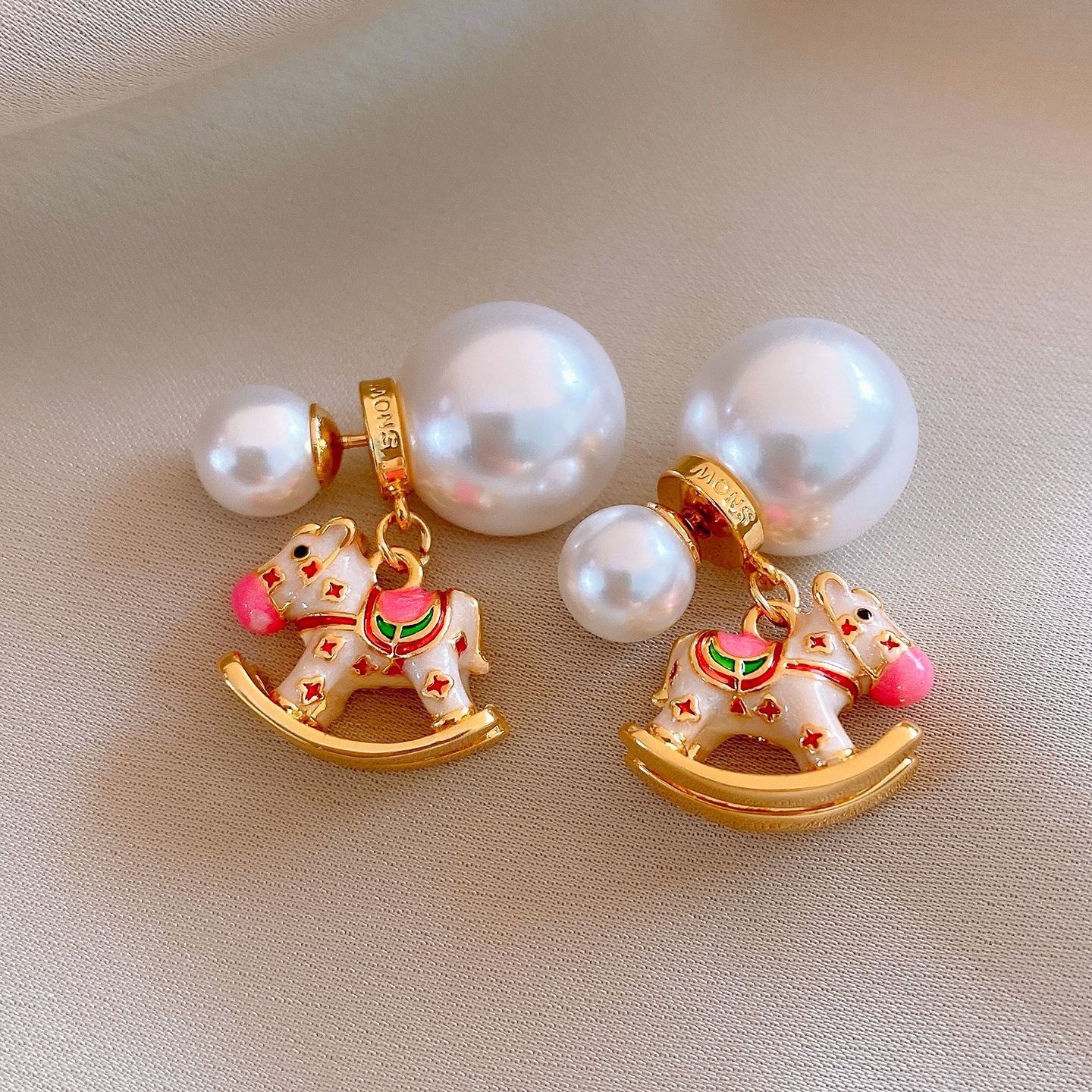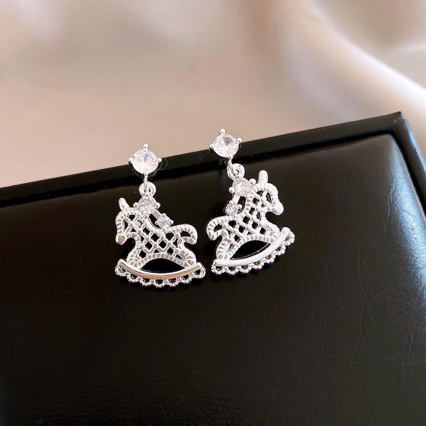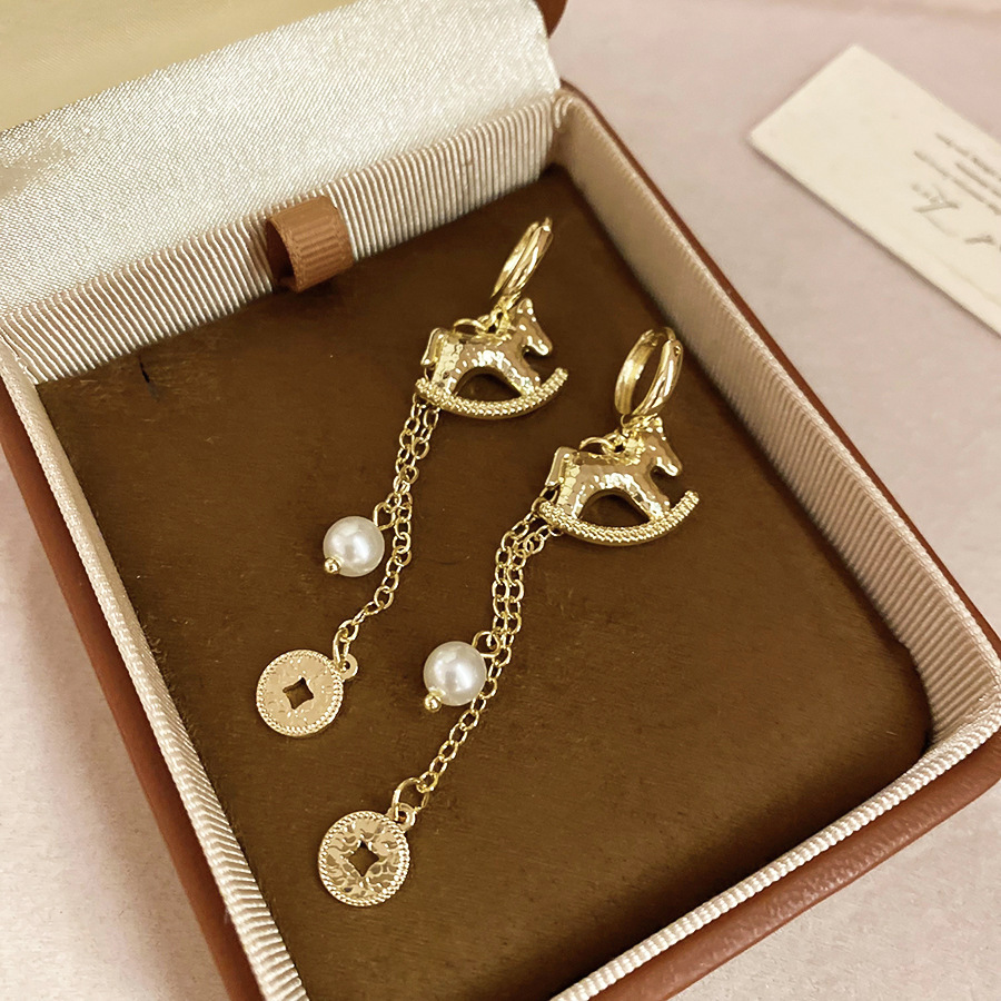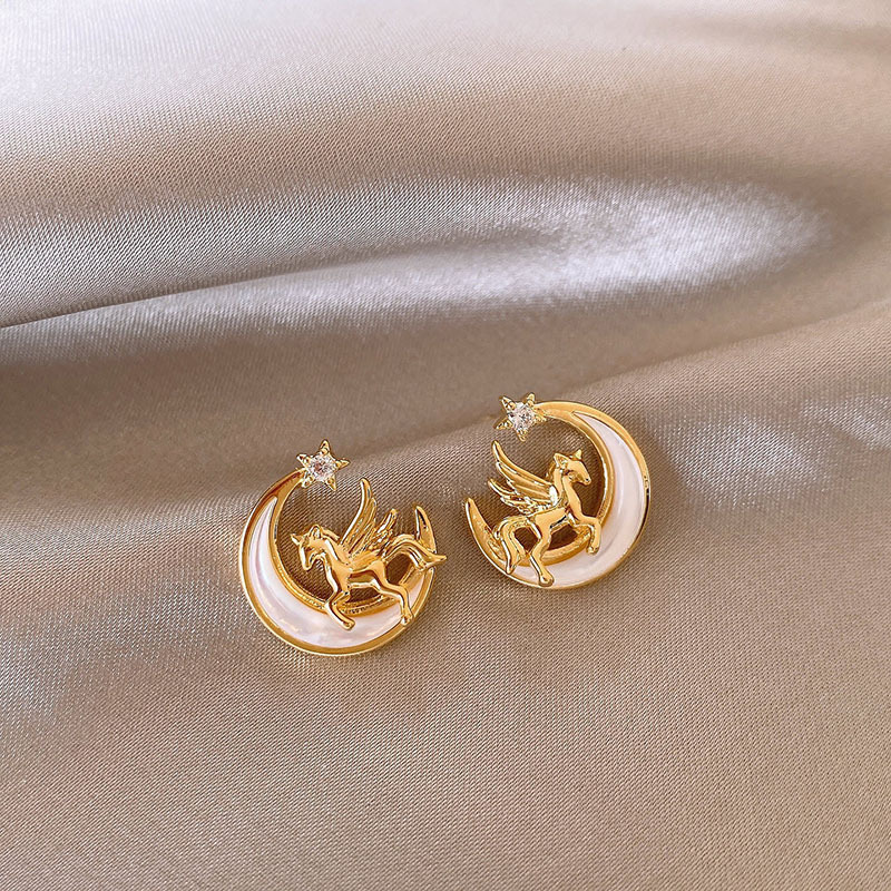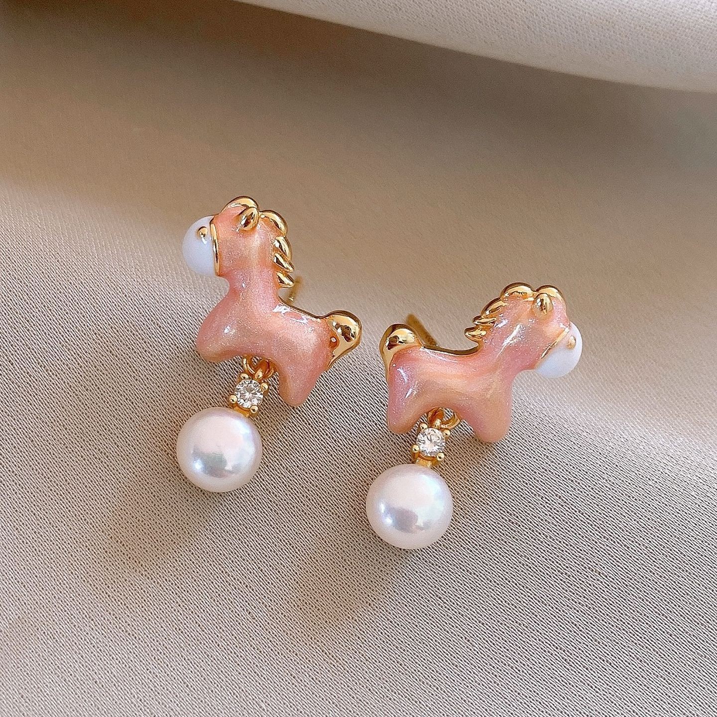 新中式复古镶钻锆石本命年小马耳环轻奢高级感耳钉时尚精致耳饰女