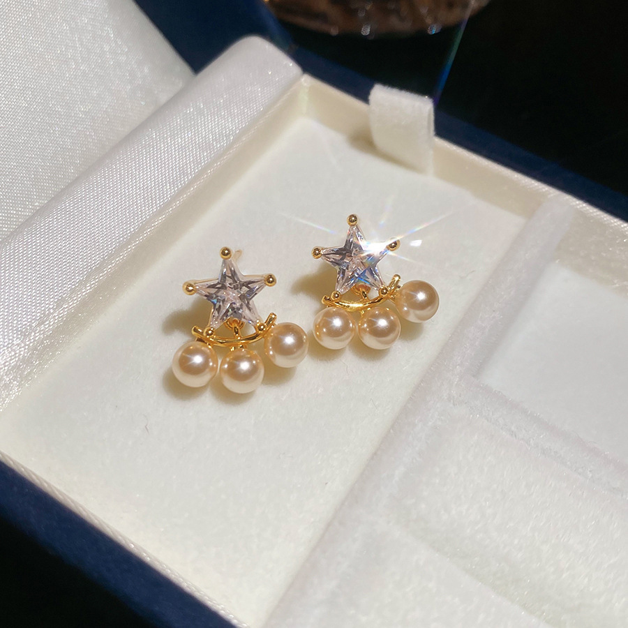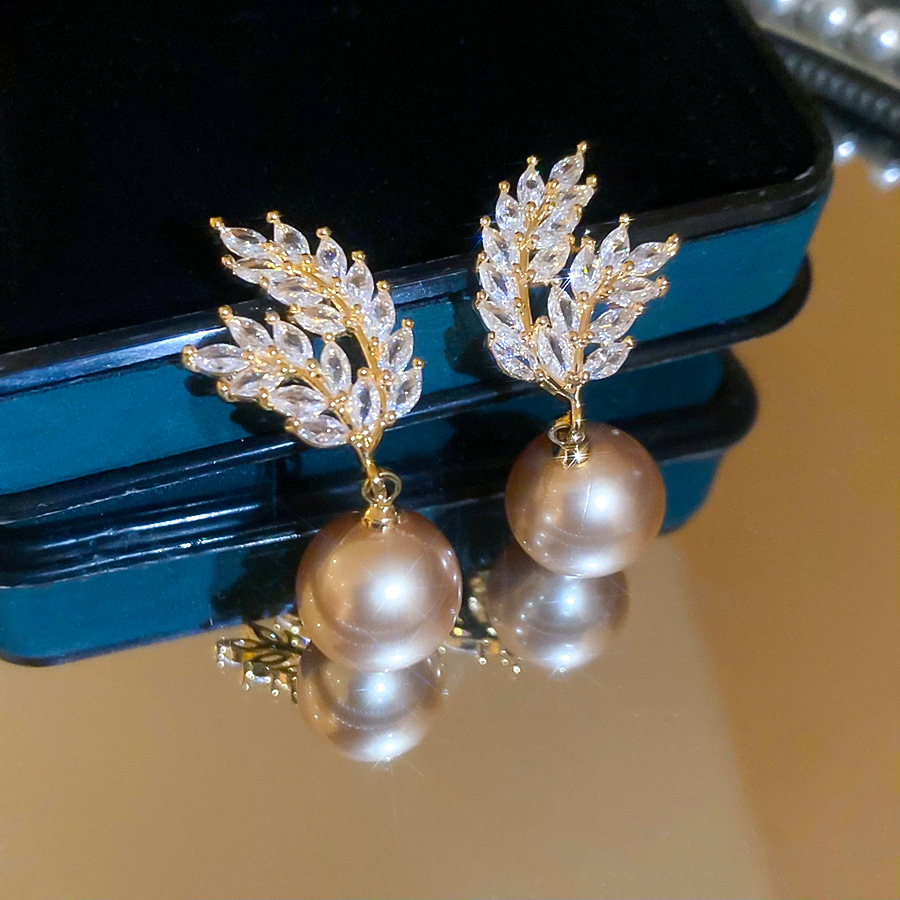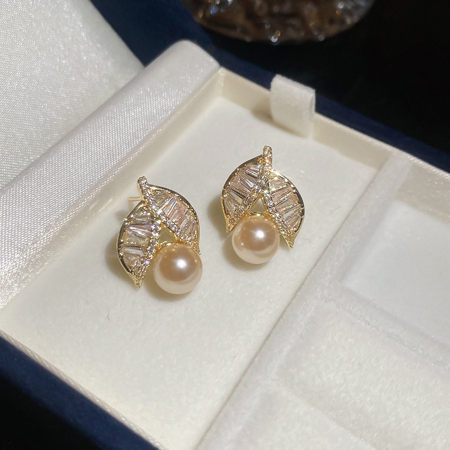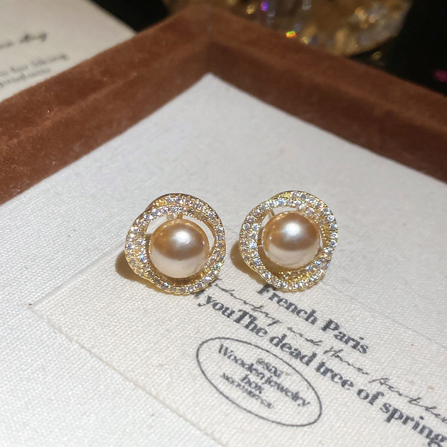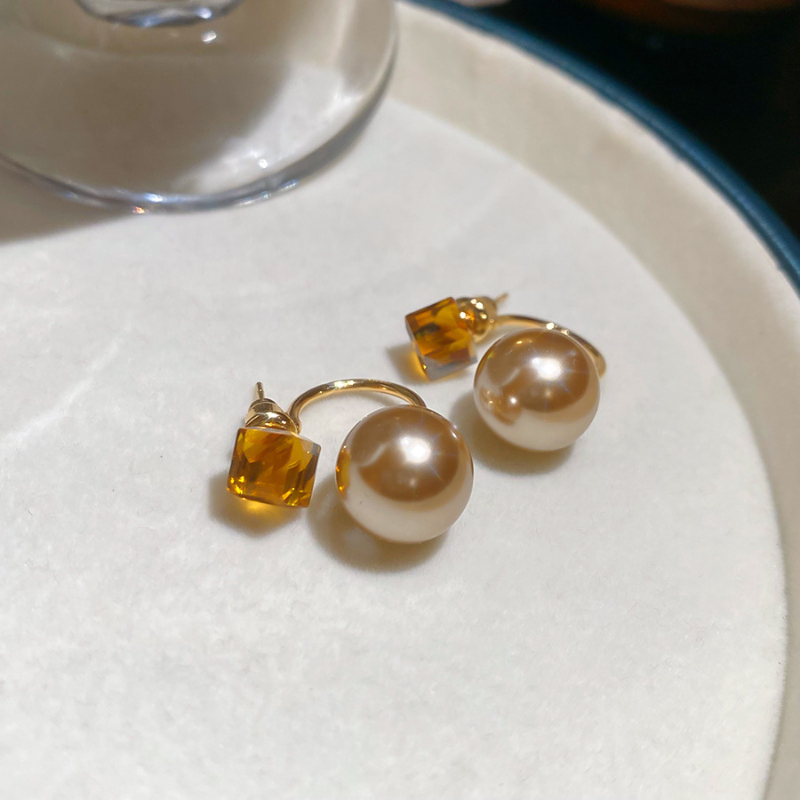 银针复古精致锆石几何珍珠耳环轻奢高级感耳钉时尚气质个性耳饰女