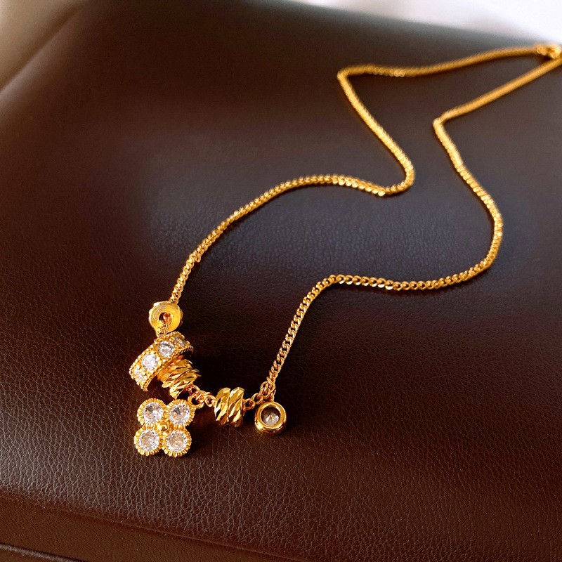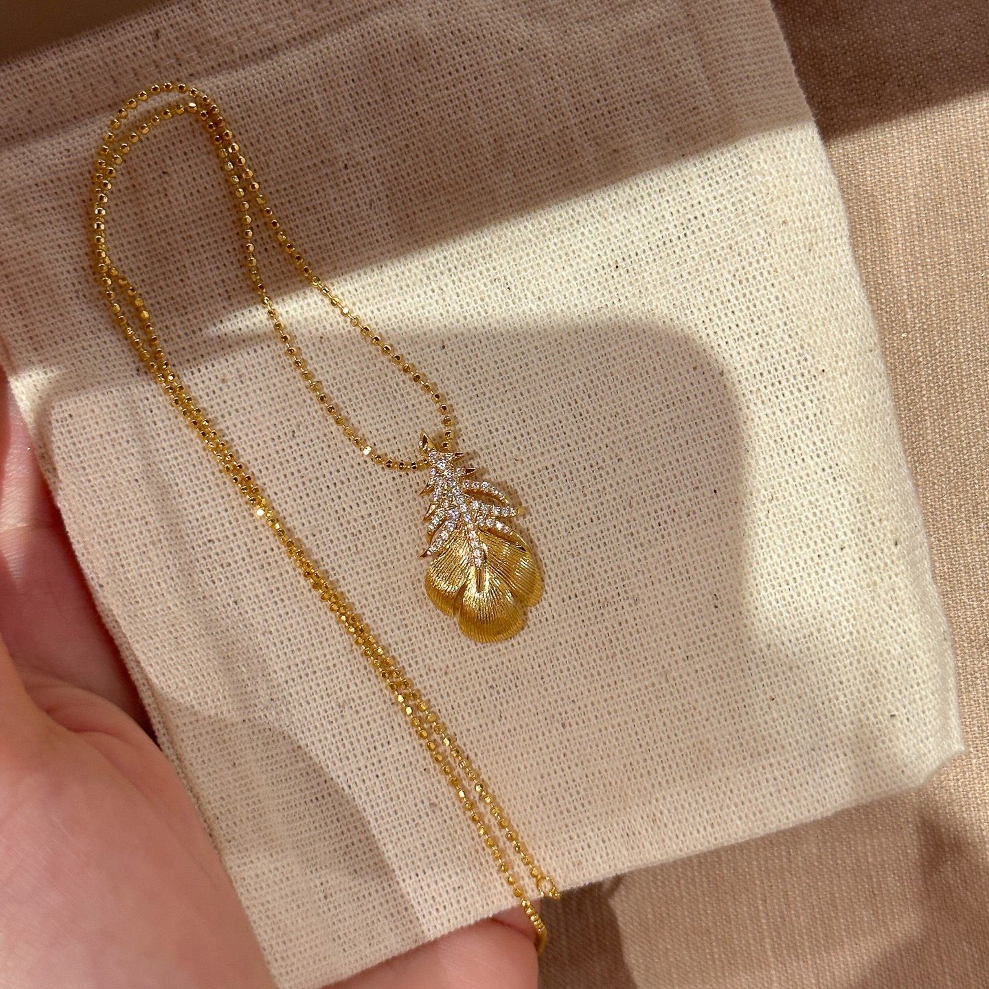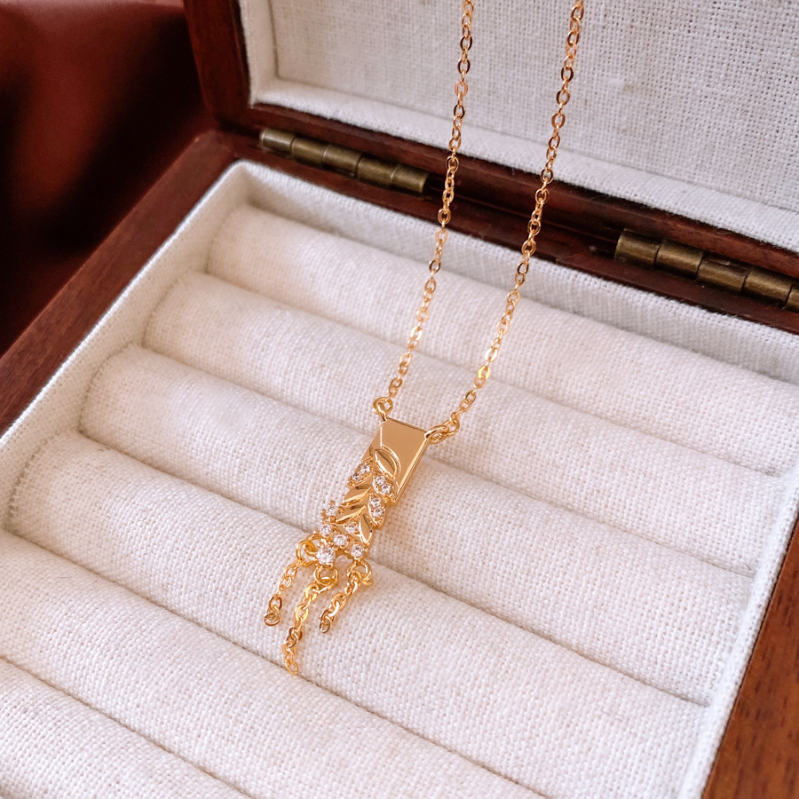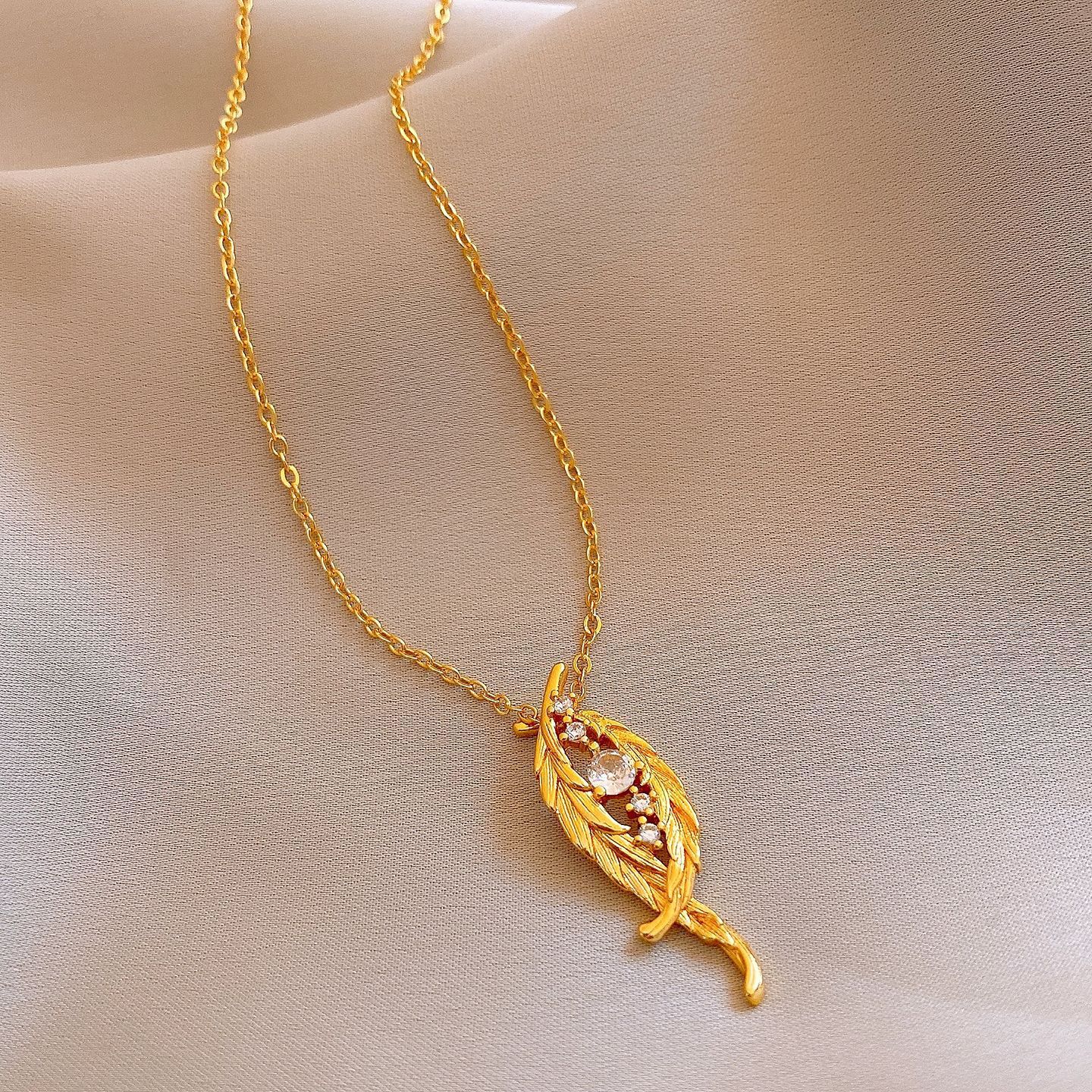 18k真金电镀羽毛锆石项链时尚气质锁骨链轻奢高级感项饰