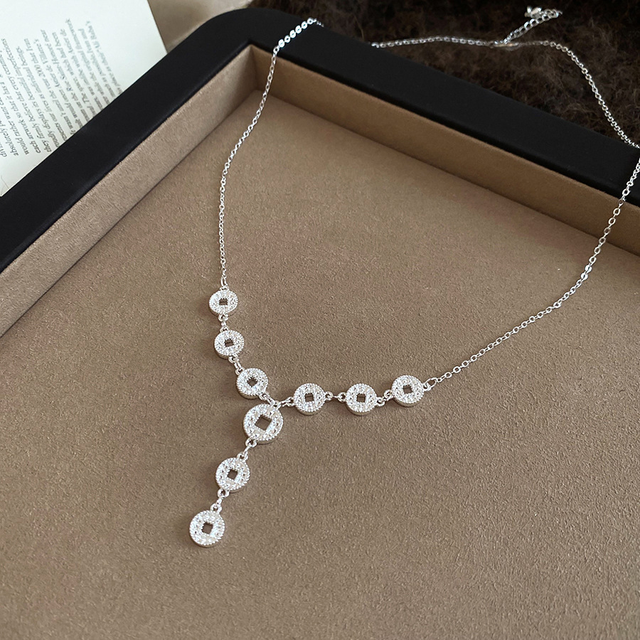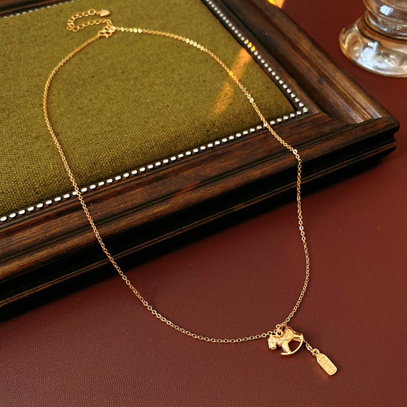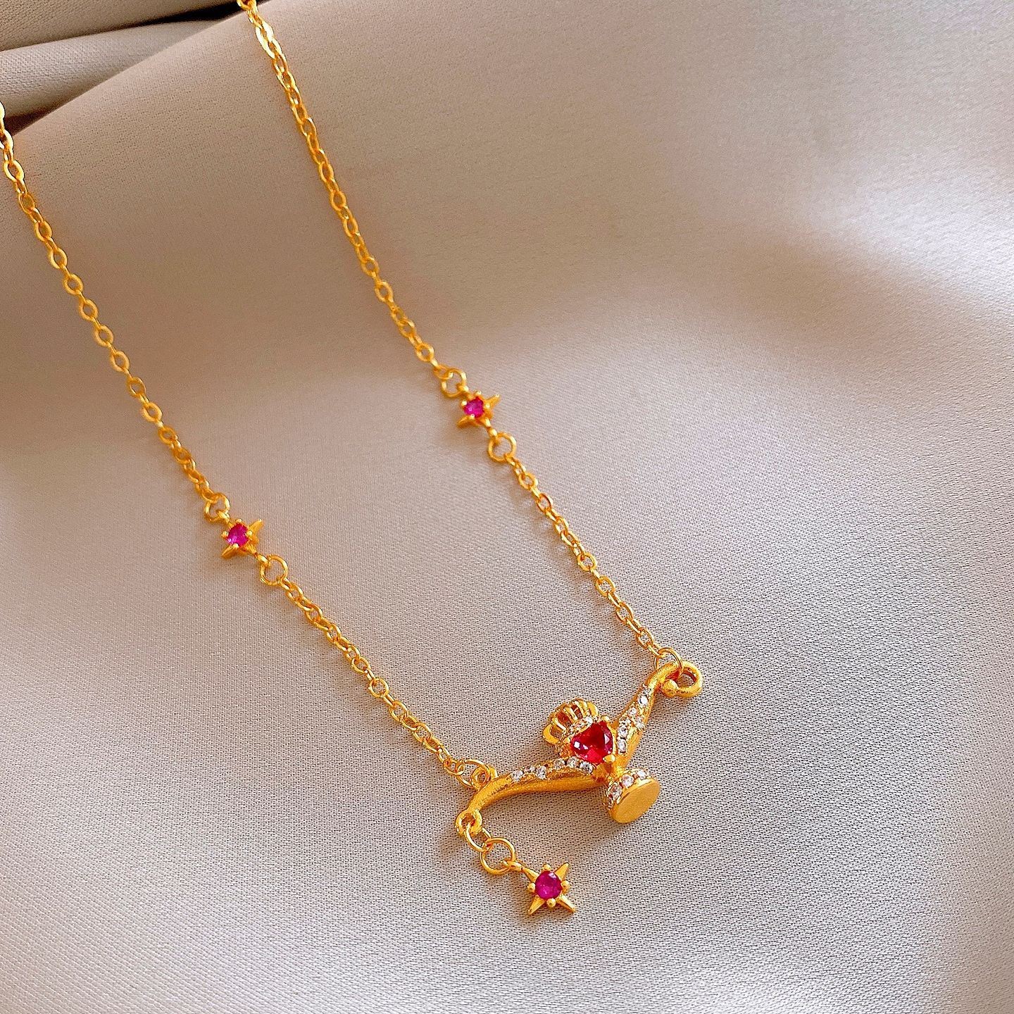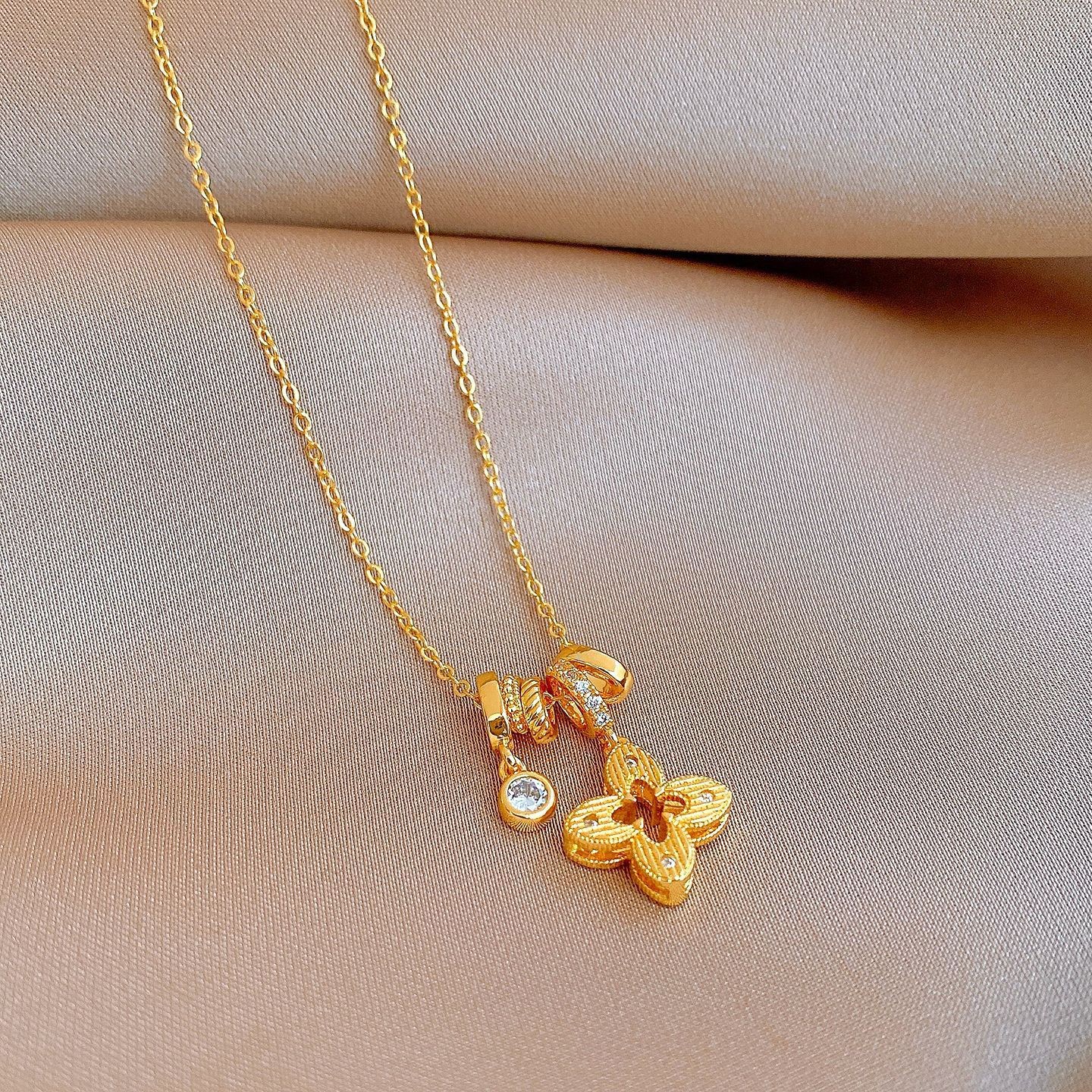 18k真金电镀羽毛锆石项链时尚气质锁骨链轻奢高级感项饰