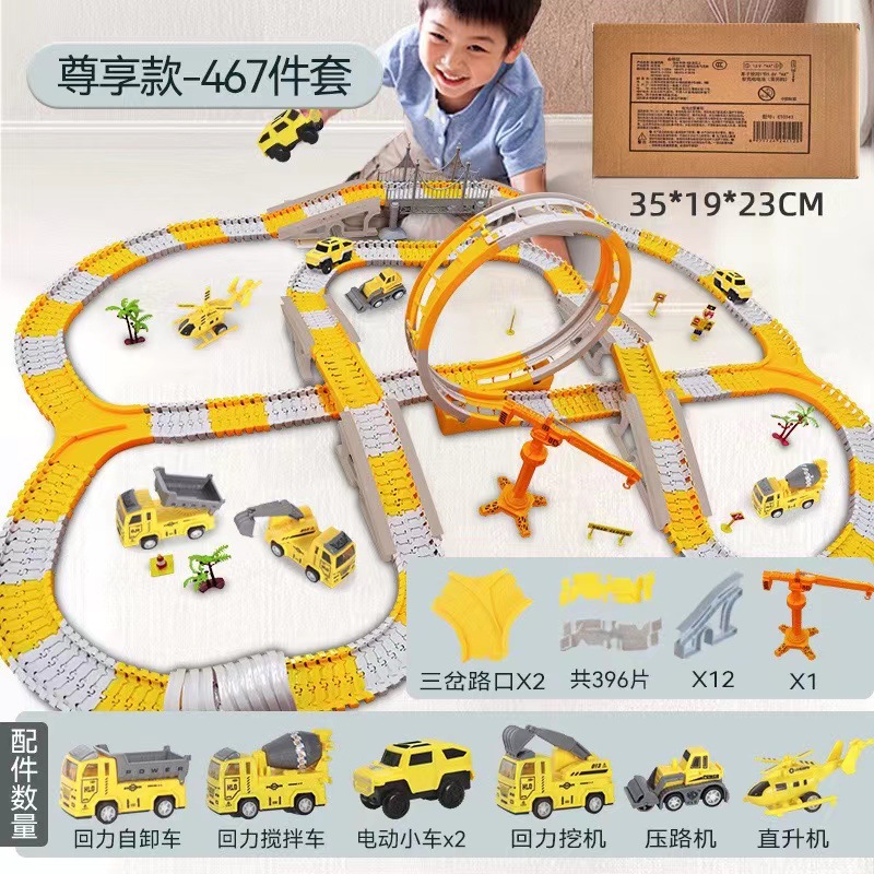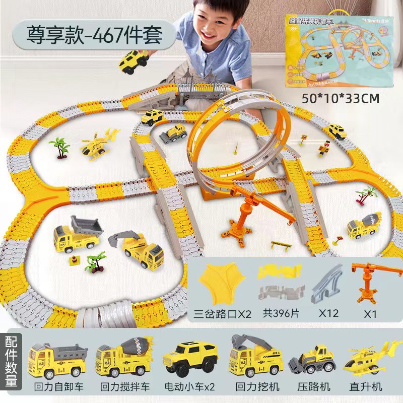 跨境儿童电动轨道车玩具电动工程车百变diy拼装轨道男孩益智玩具