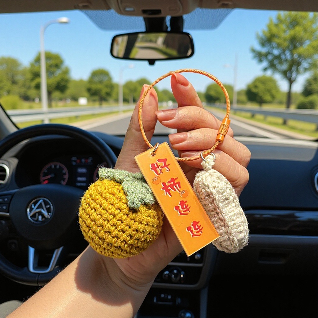 创意好柿发生毛线钩织汽车钥匙扣中国风挂件精致心想事橙情侣书包