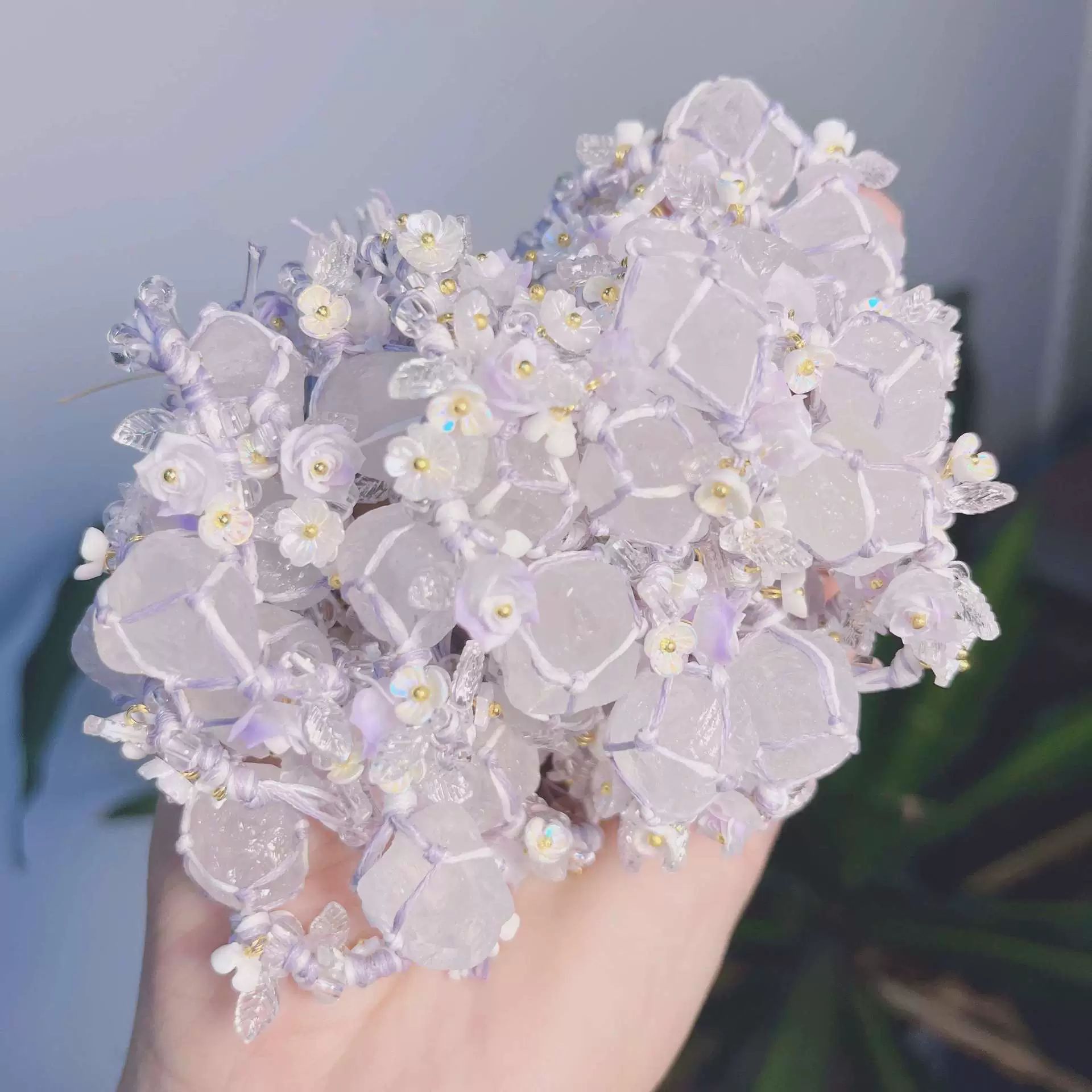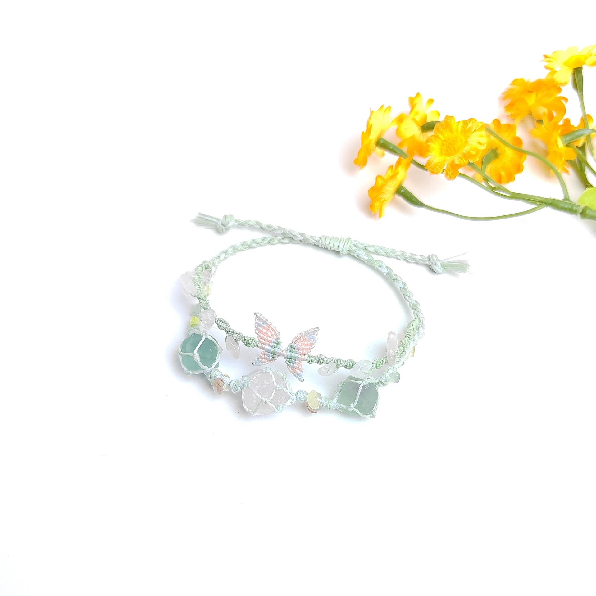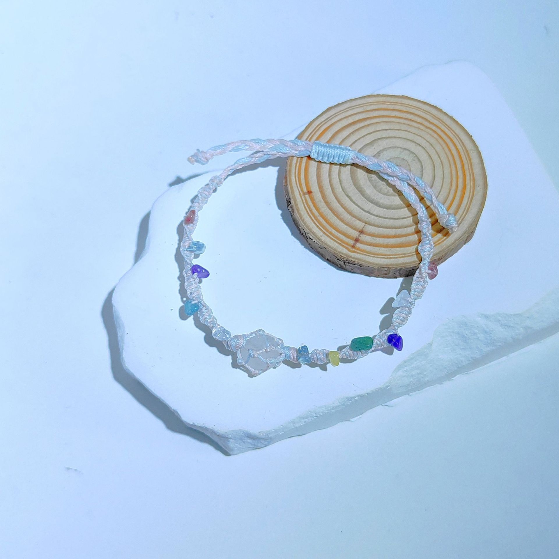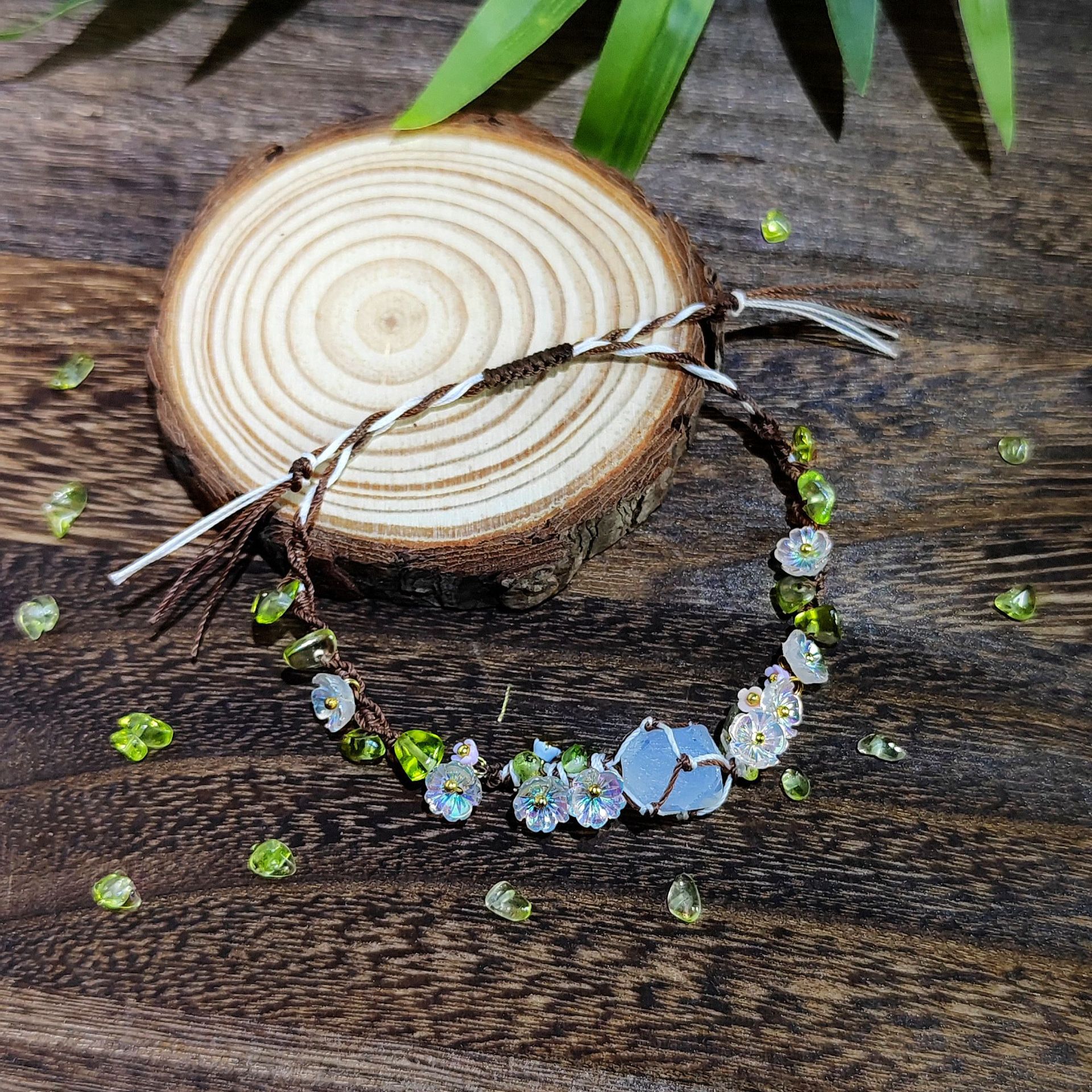 早春花环森系新款天然水晶手链手绳爆款纯手工编织网兜手链