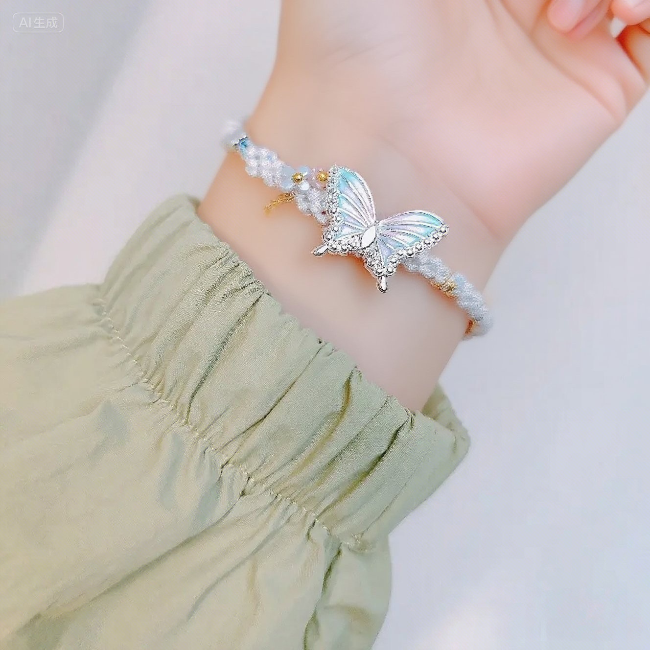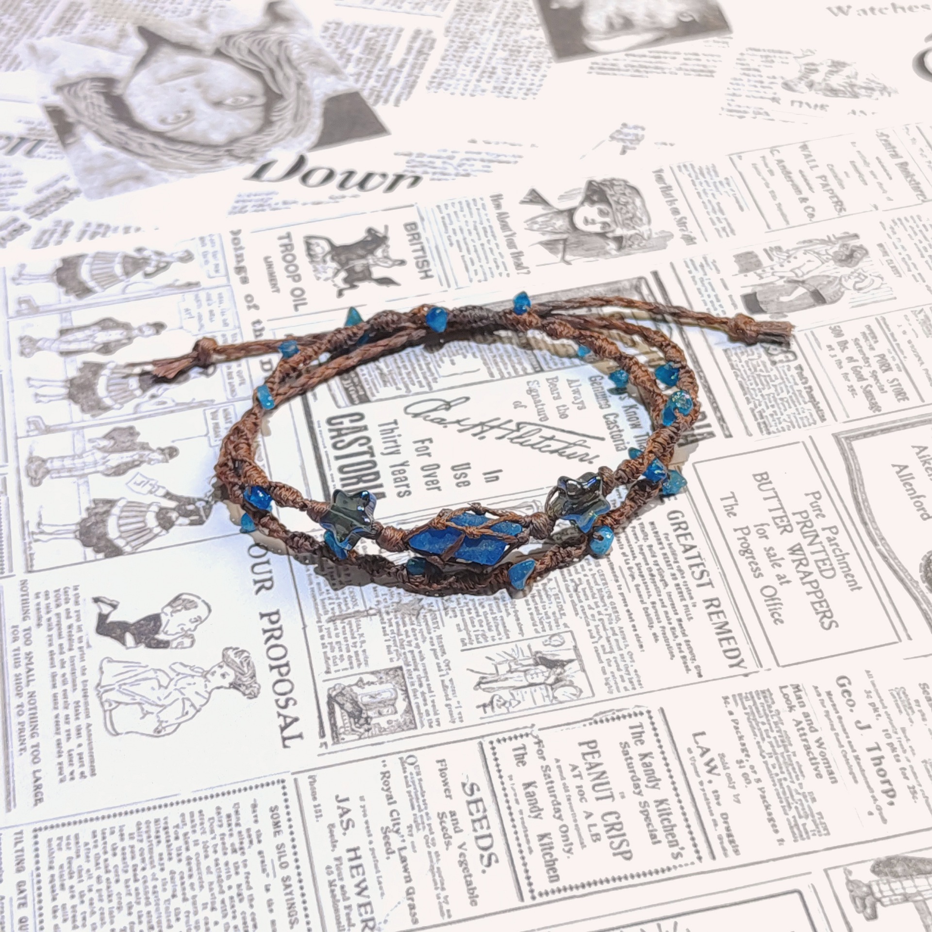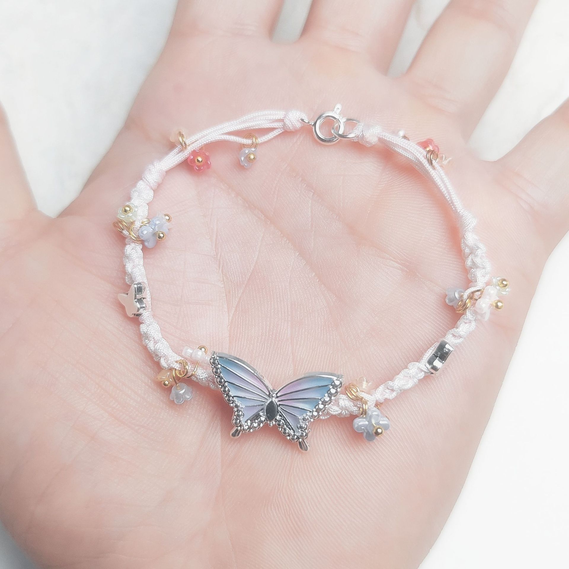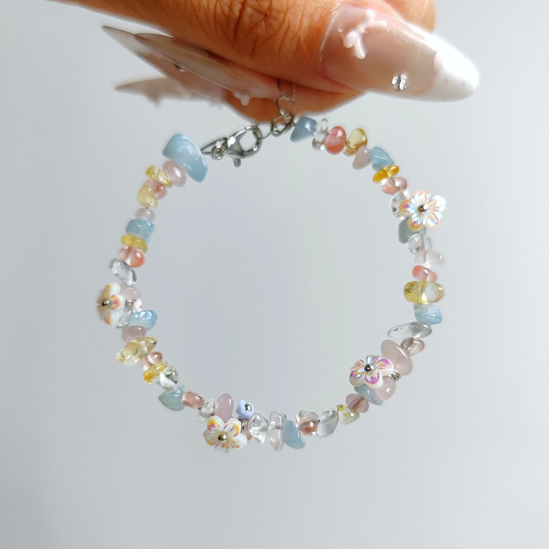 早春花环森系新款天然水晶手链手绳爆款纯手工编织网兜手链