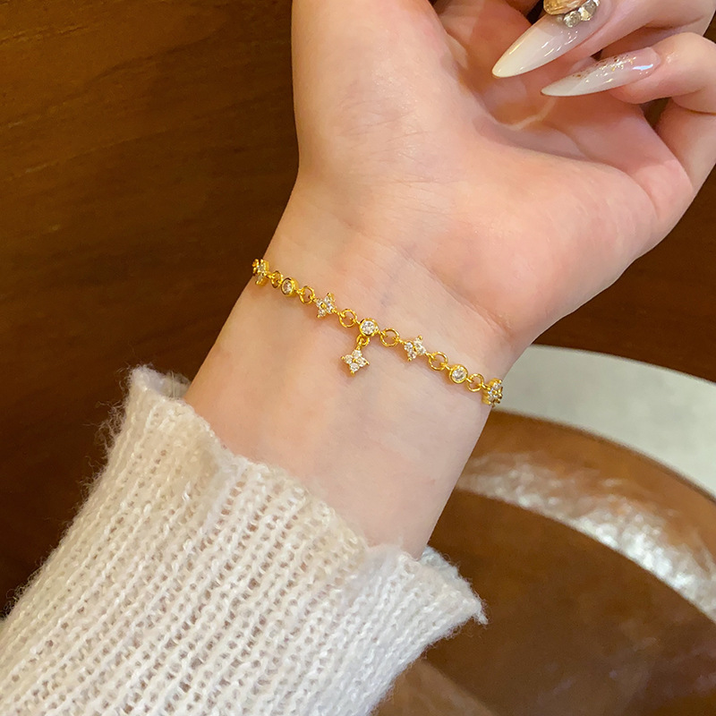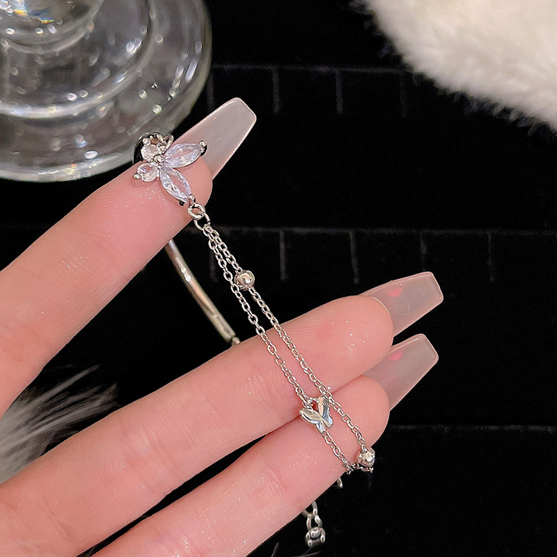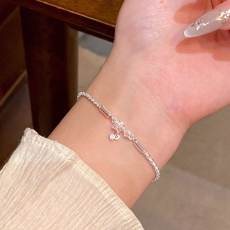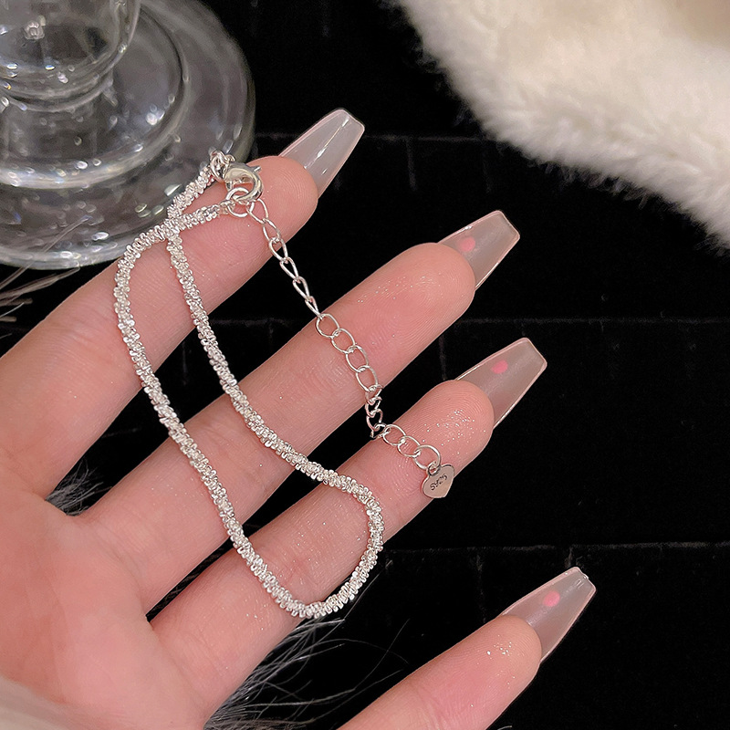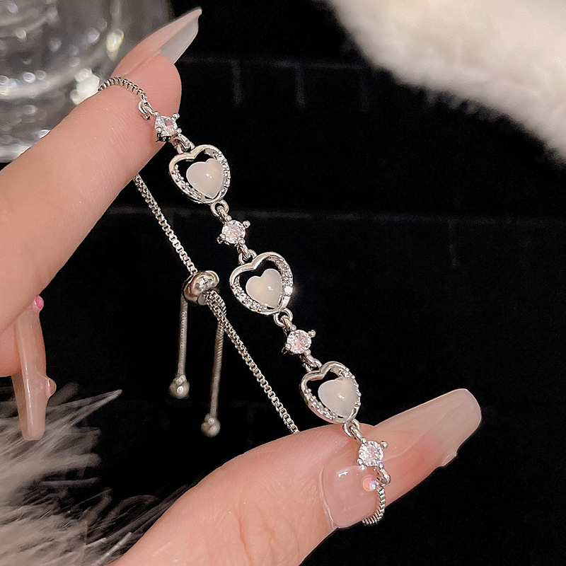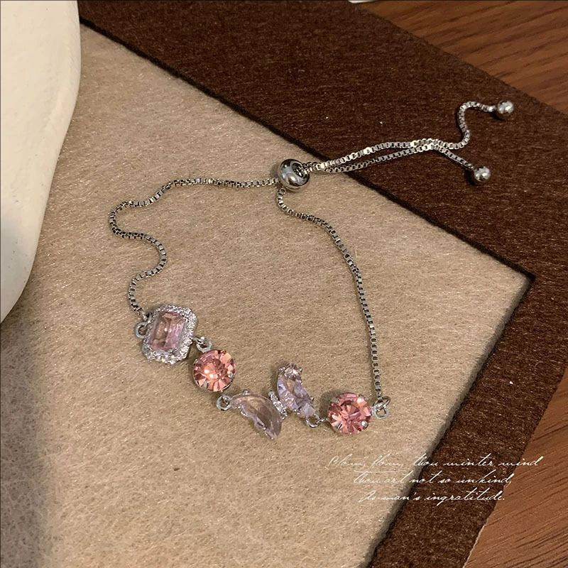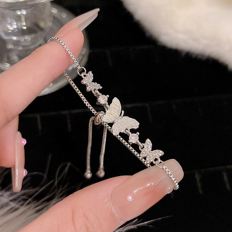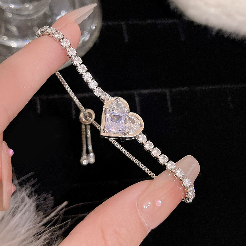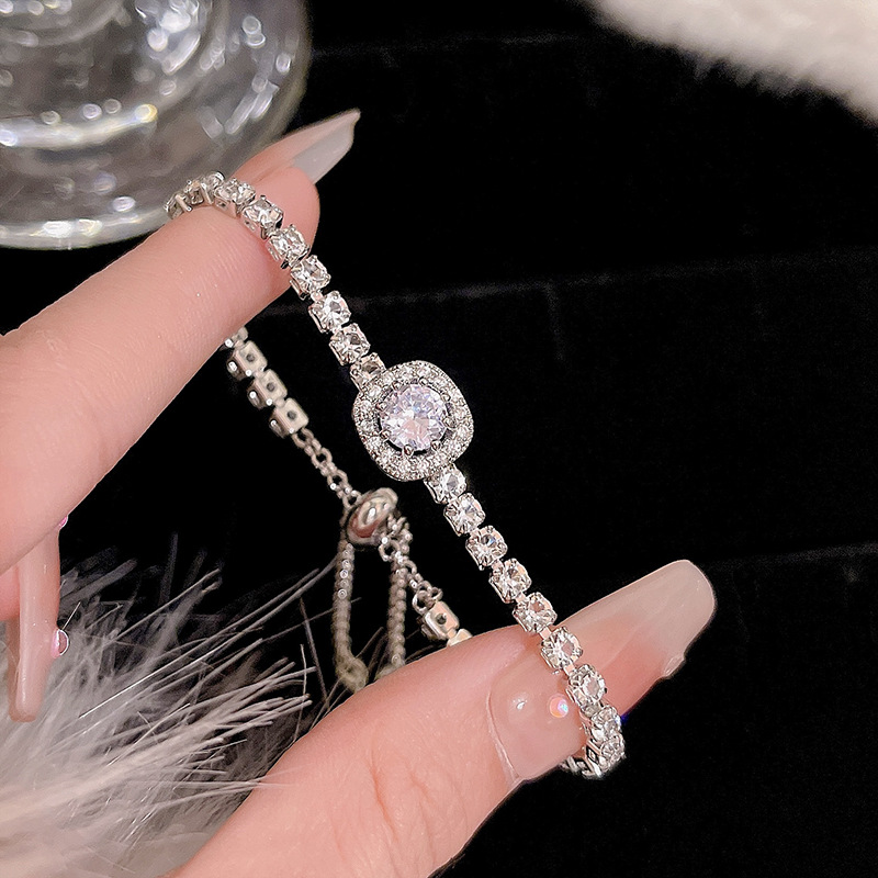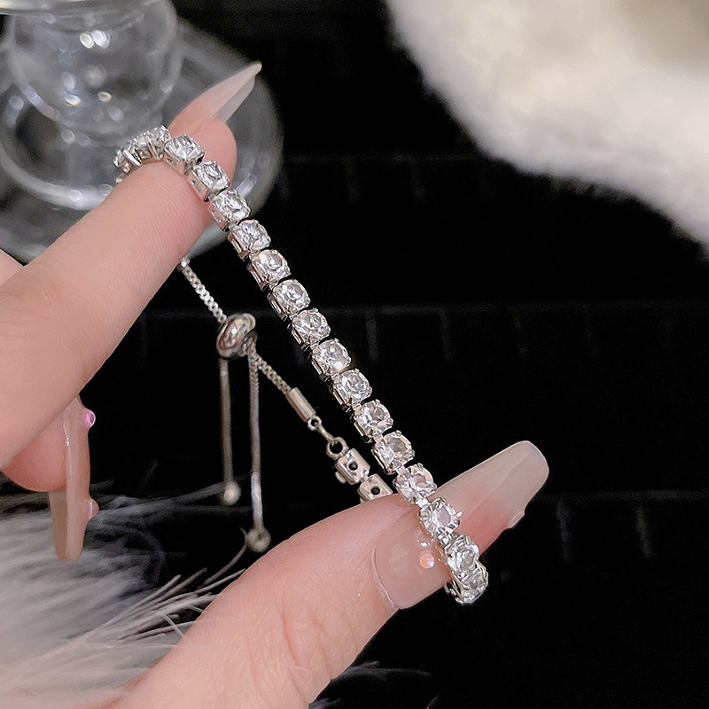 ins风银色锆石手链女轻奢小众抽拉式手串百搭高级感精致满钻手饰