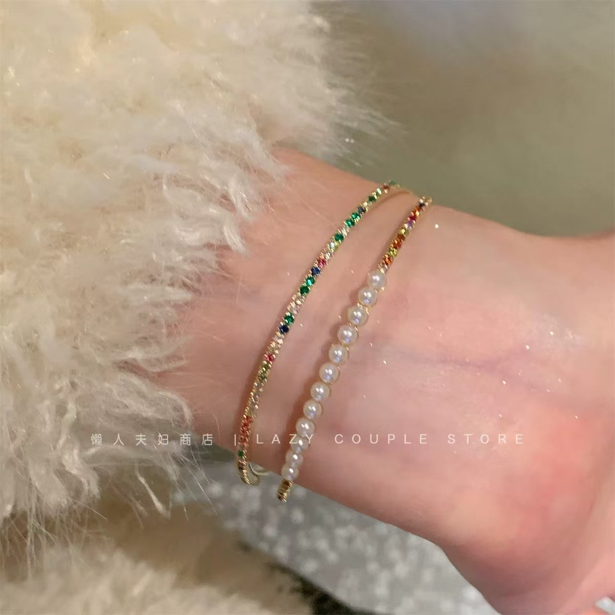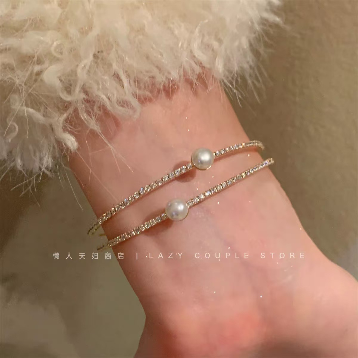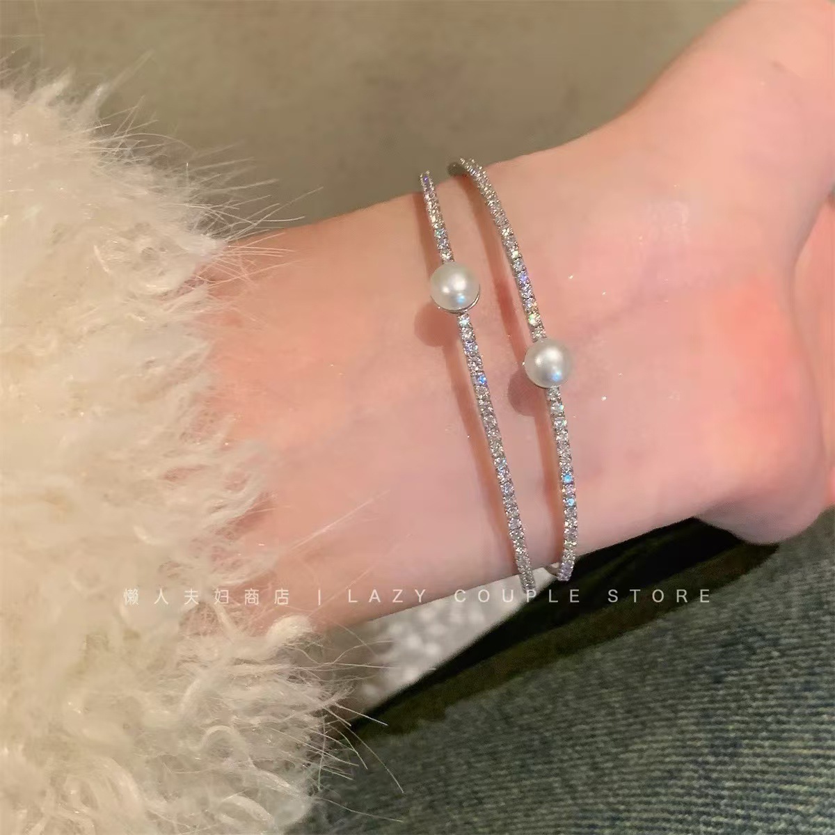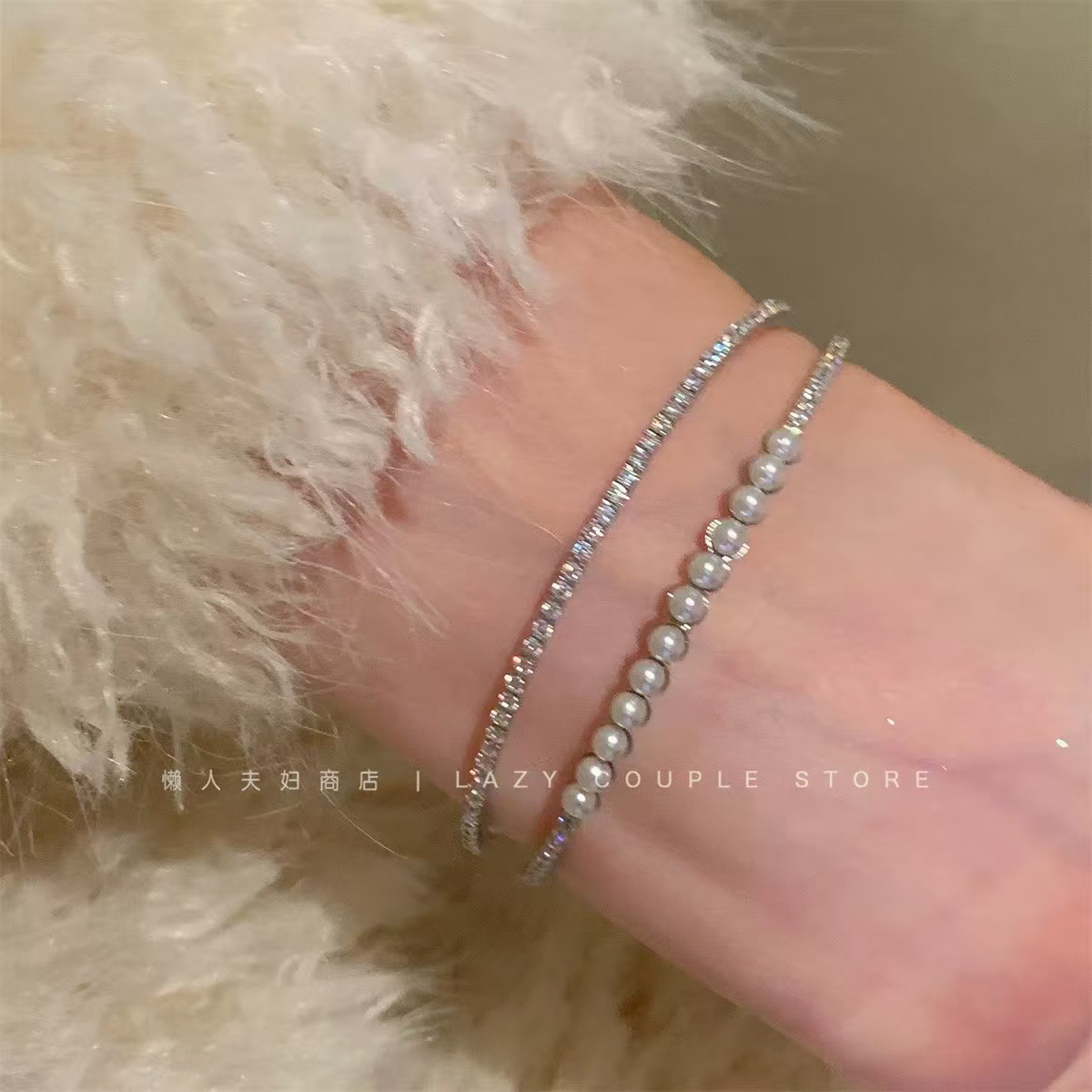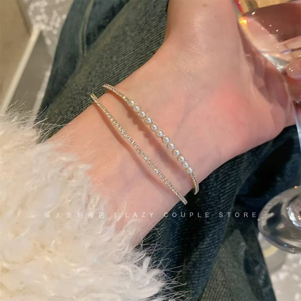 ins风银色锆石手链女轻奢小众抽拉式手串百搭高级感精致满钻手饰