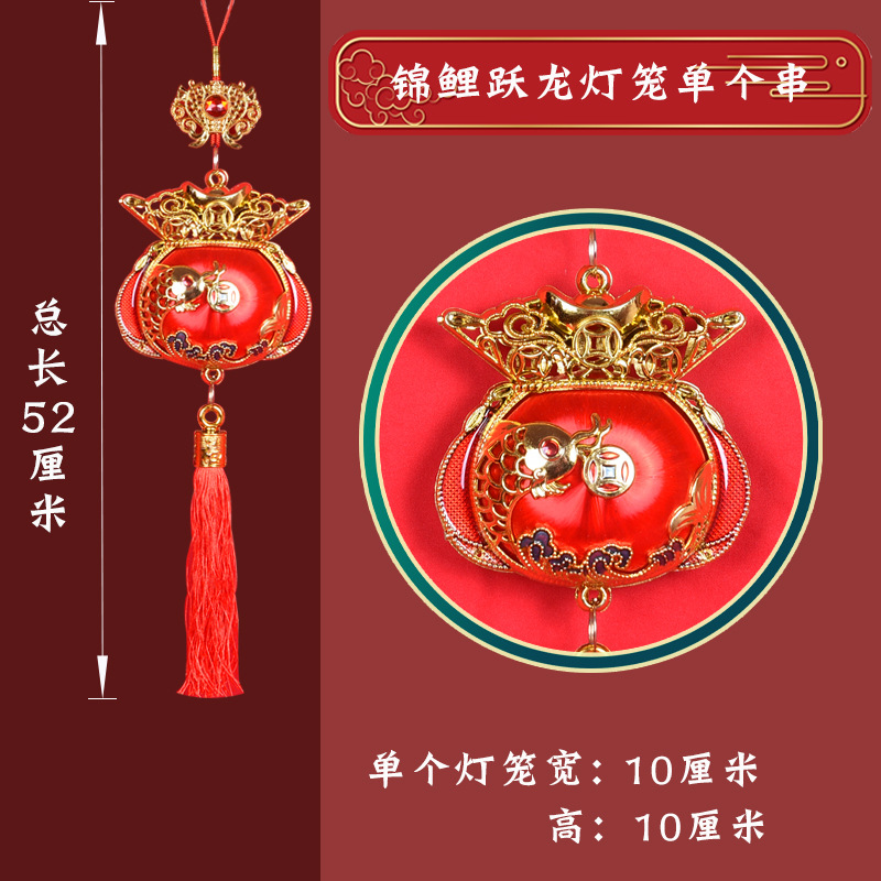 新年小灯笼挂饰批发春节用品过年小红灯笼连串年货摆摊丝光喜庆